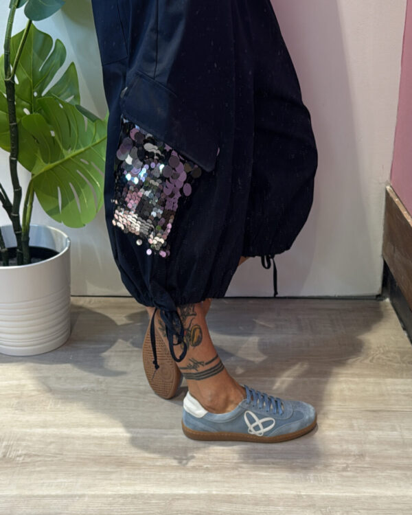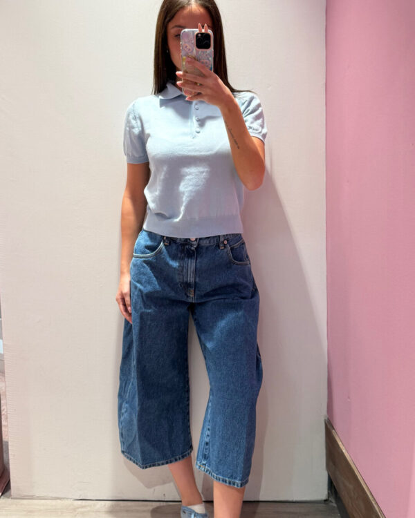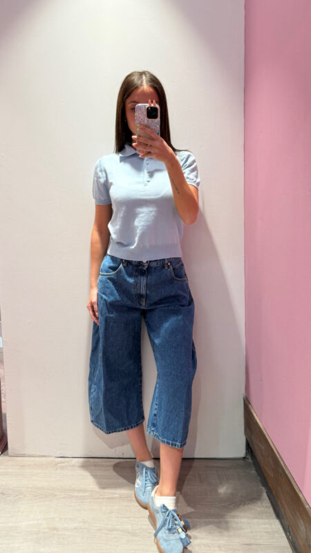 Il bermuda in denim è uno di quei capi che negli ultimi anni è tornato protagonista. Ha una vestibilità più rilassata rispetto allo short classico, ma resta femminile e facile da indossare. Il lavaggio scuro di questo modello di Vicolo lo rende ancora più versatile e adatto anche a look più curati. La polo è il dettaglio che dà struttura al look e le sneakers completano l’outfit con una nota fresca e contemporanea.
