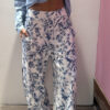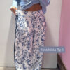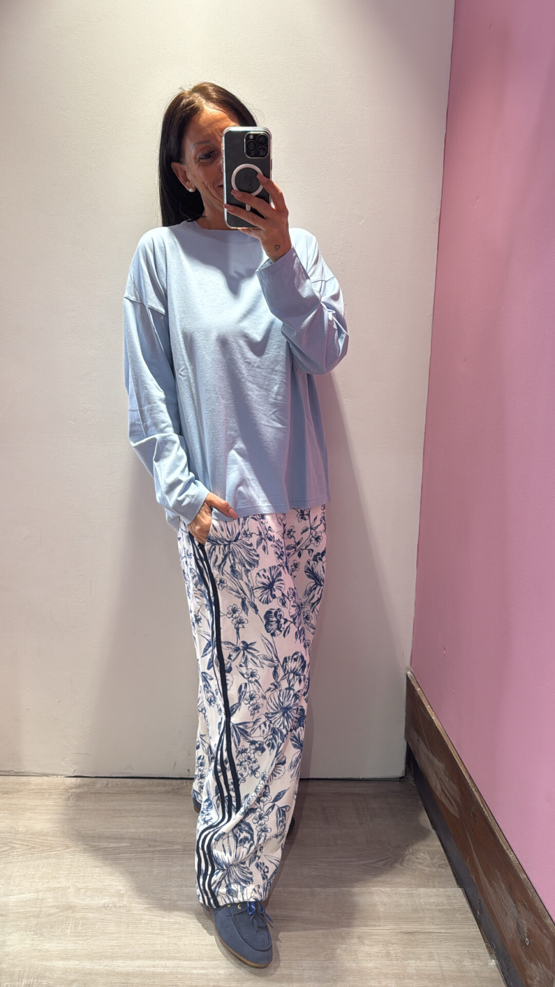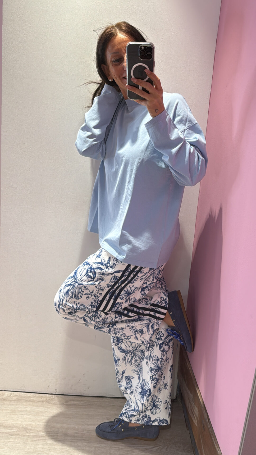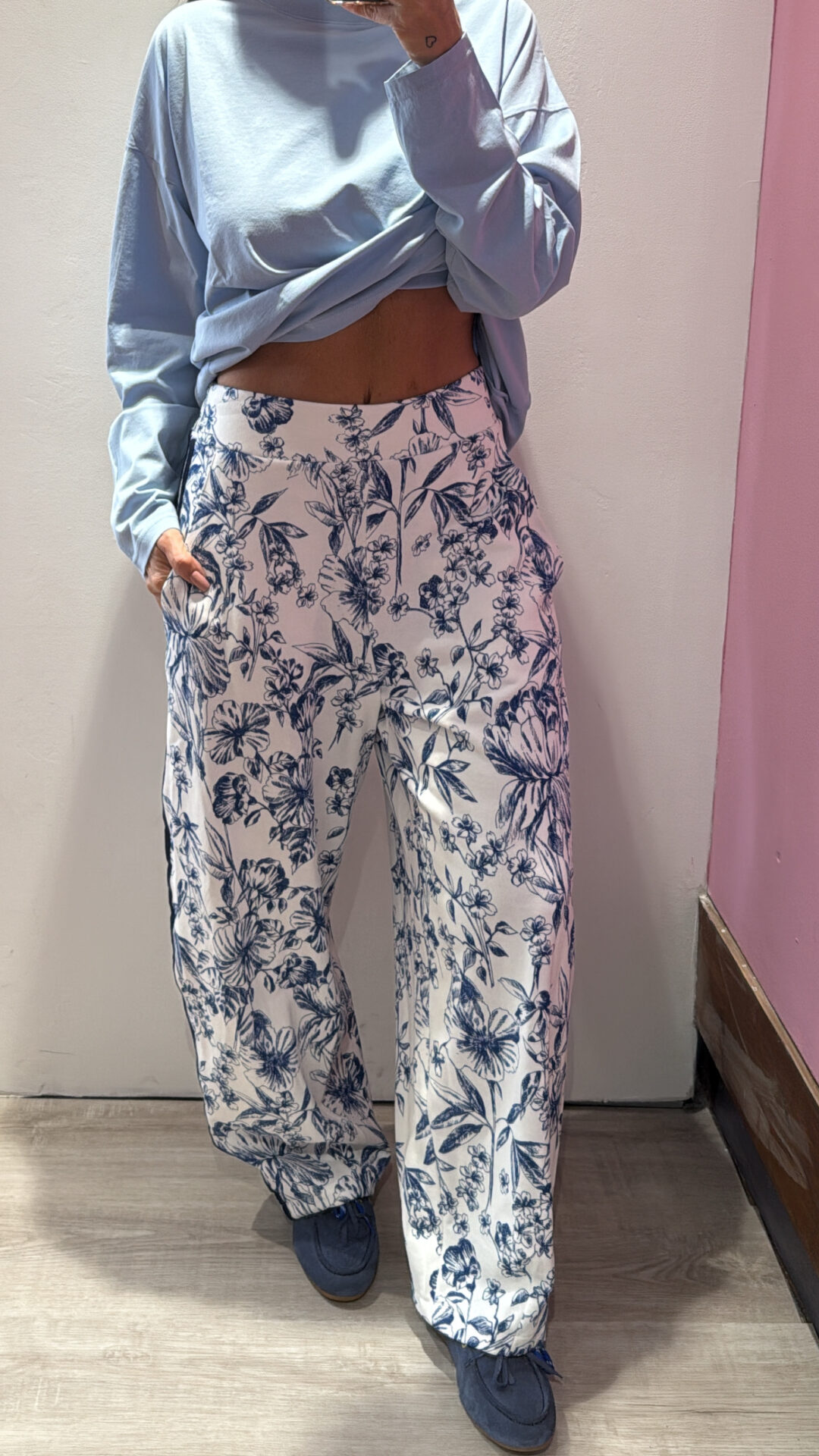 Pantalone MOTEL in cotone garzato, fantasia floreale con banda laterale, modello BARREL