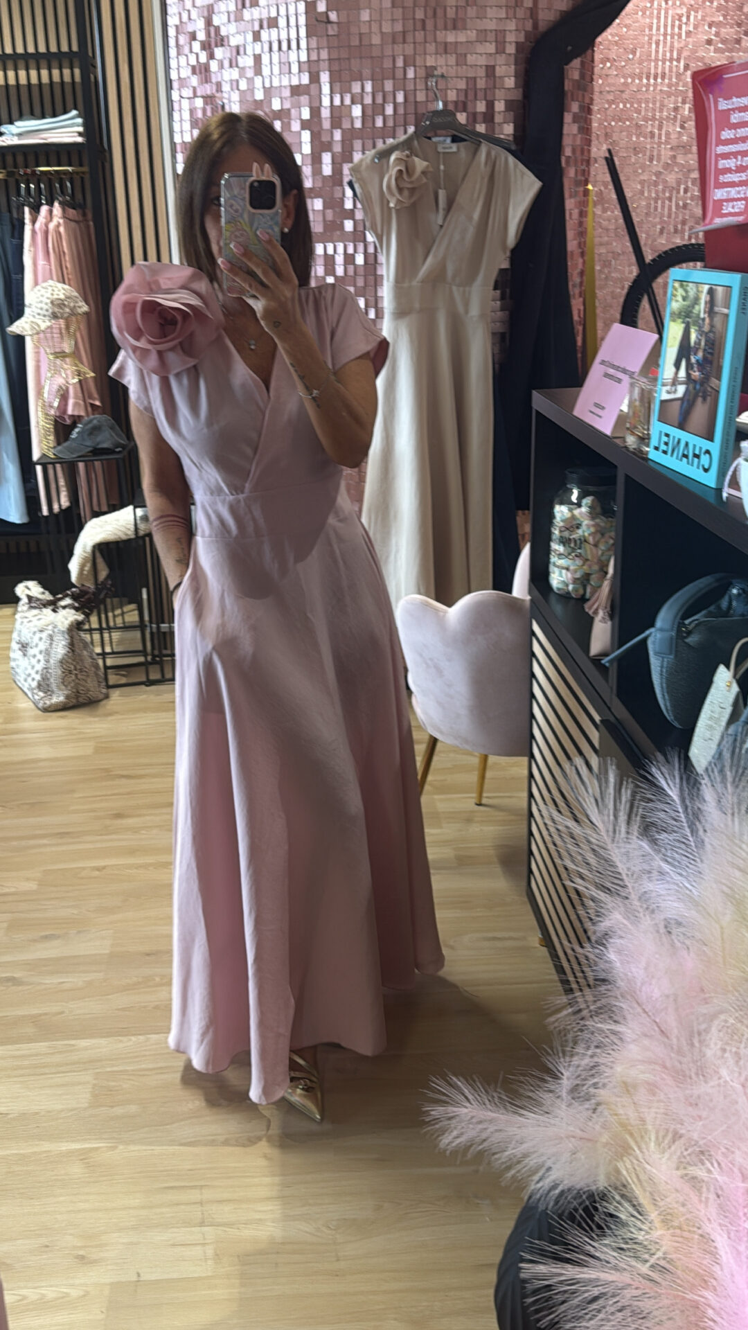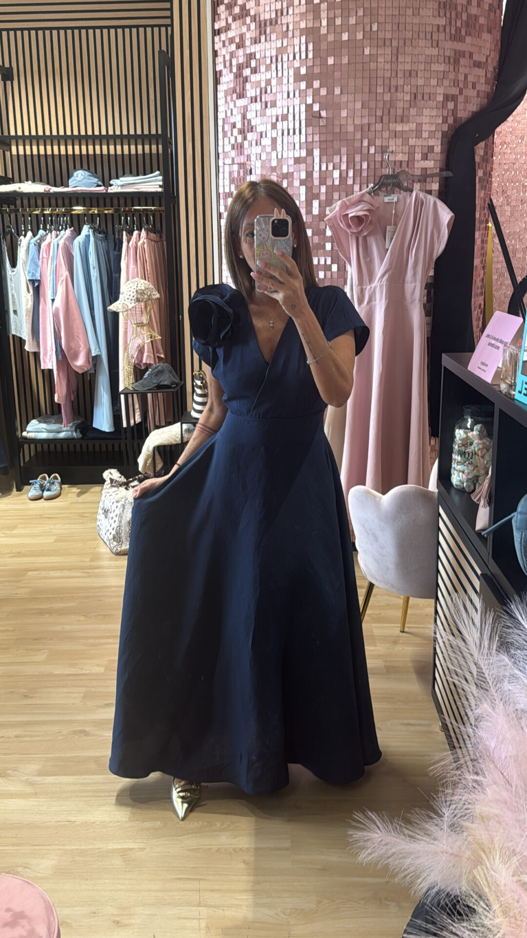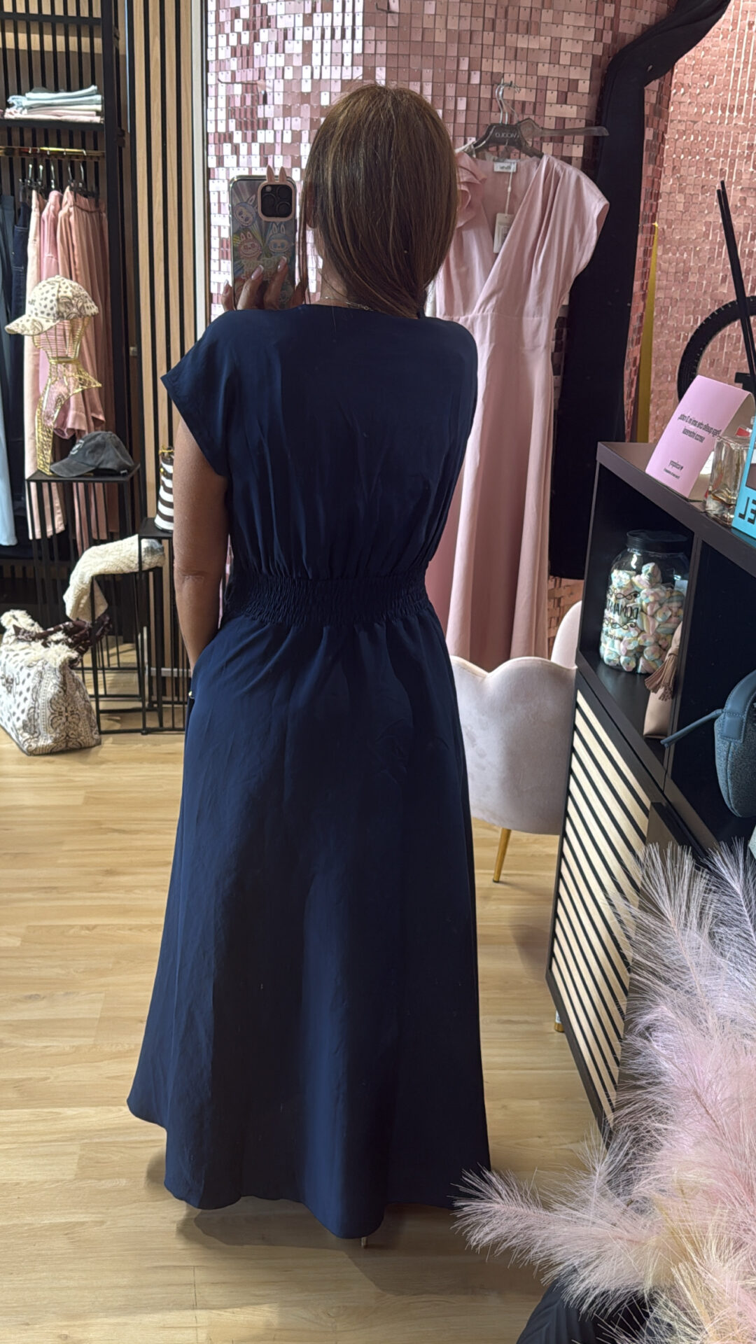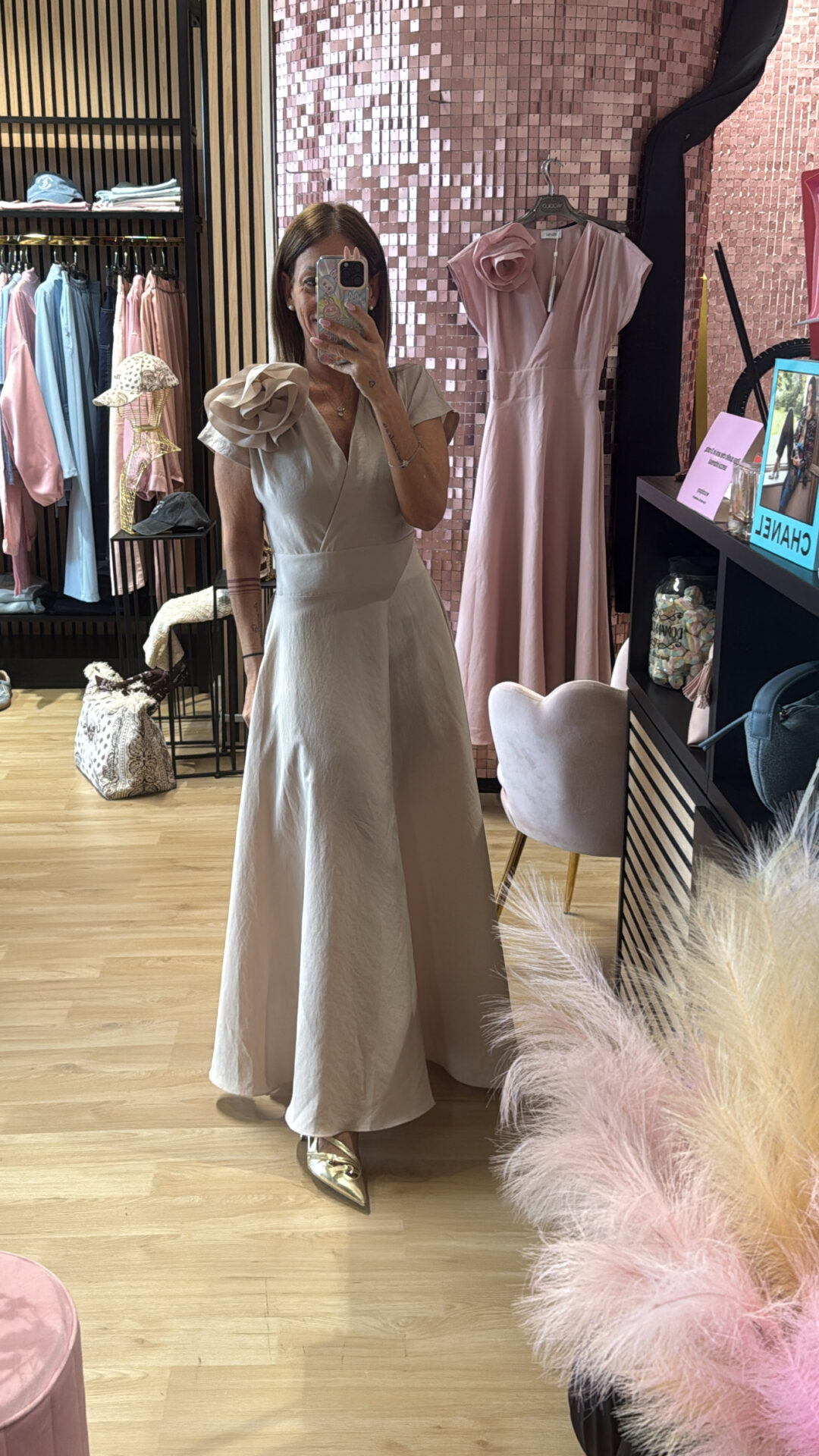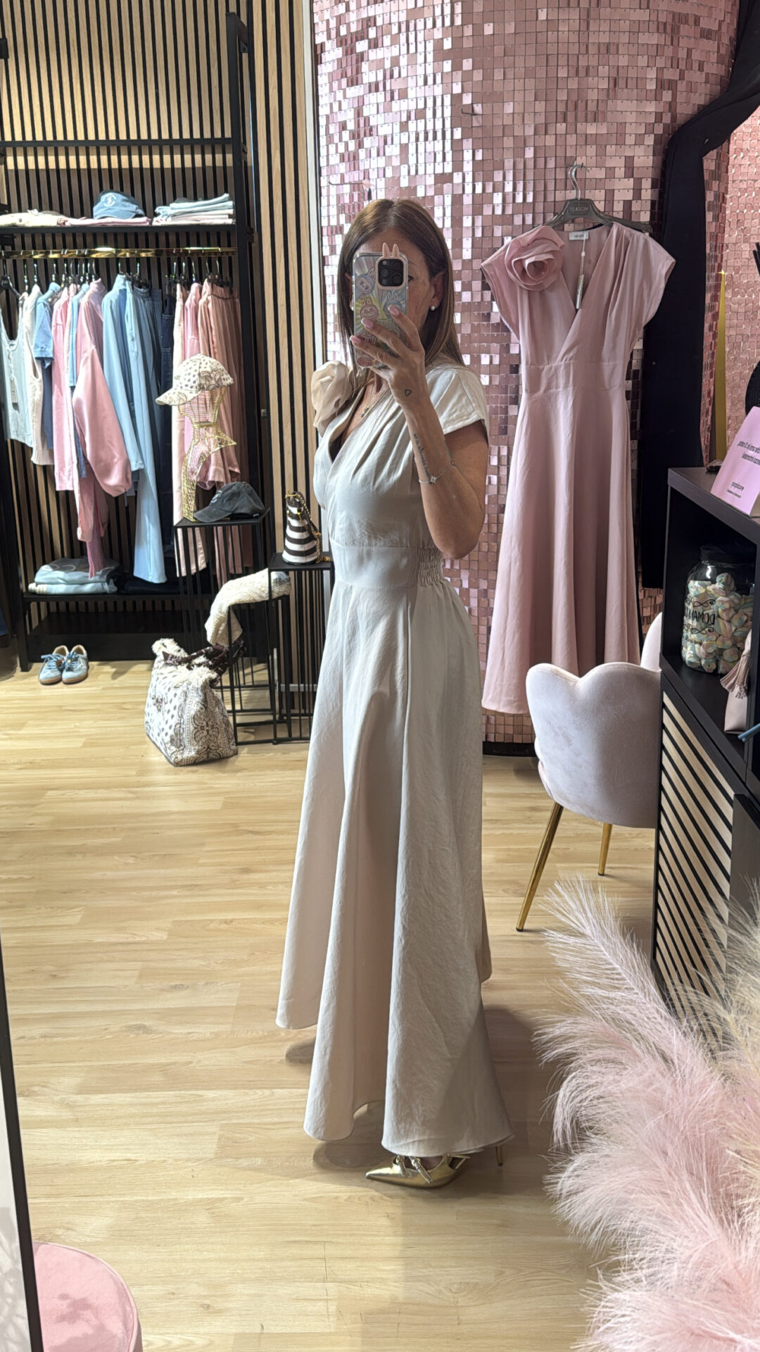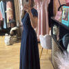Abito Lungo MOTEL a V con spilla elasticizzato sul retro, gonna a ruota