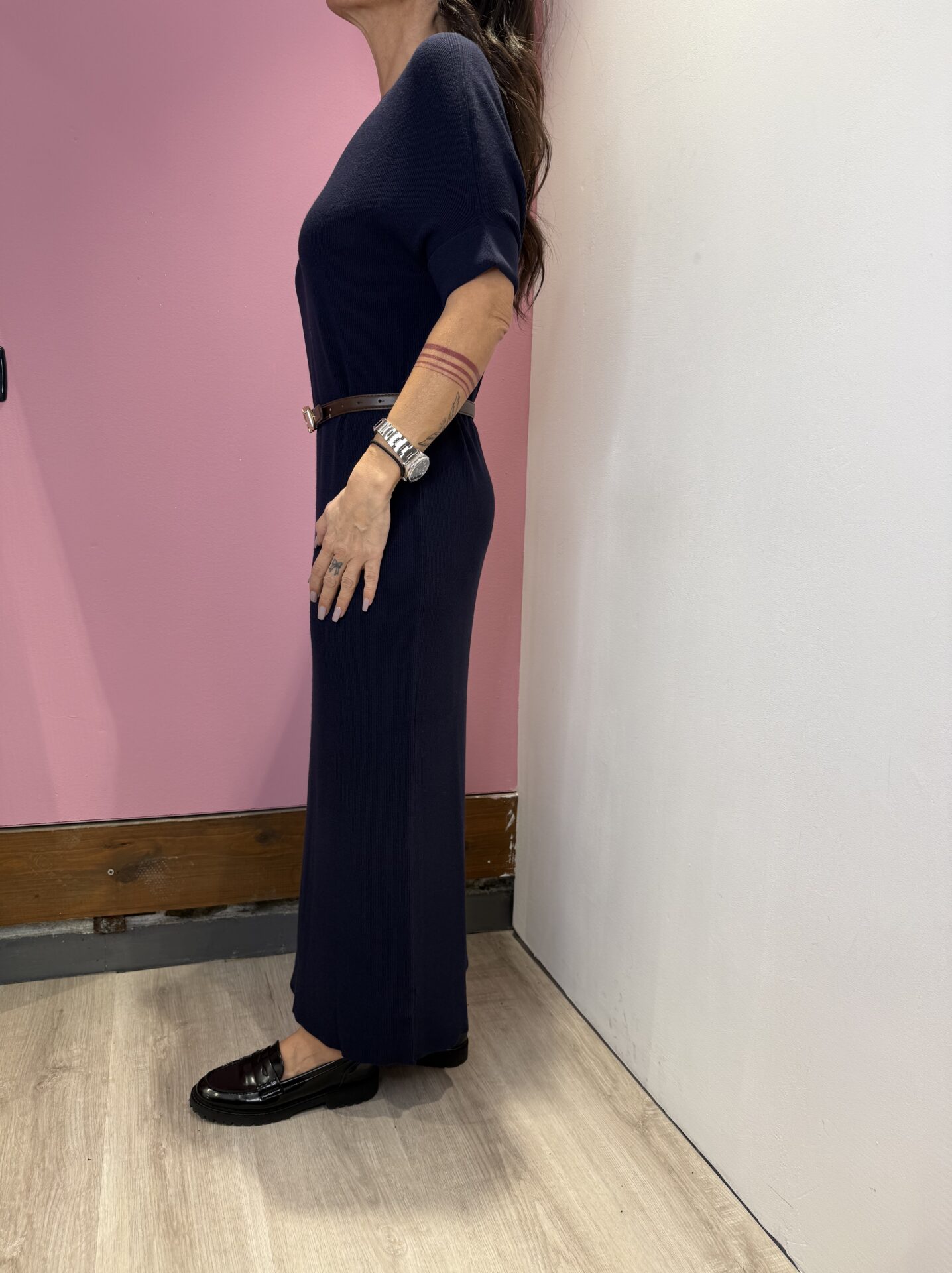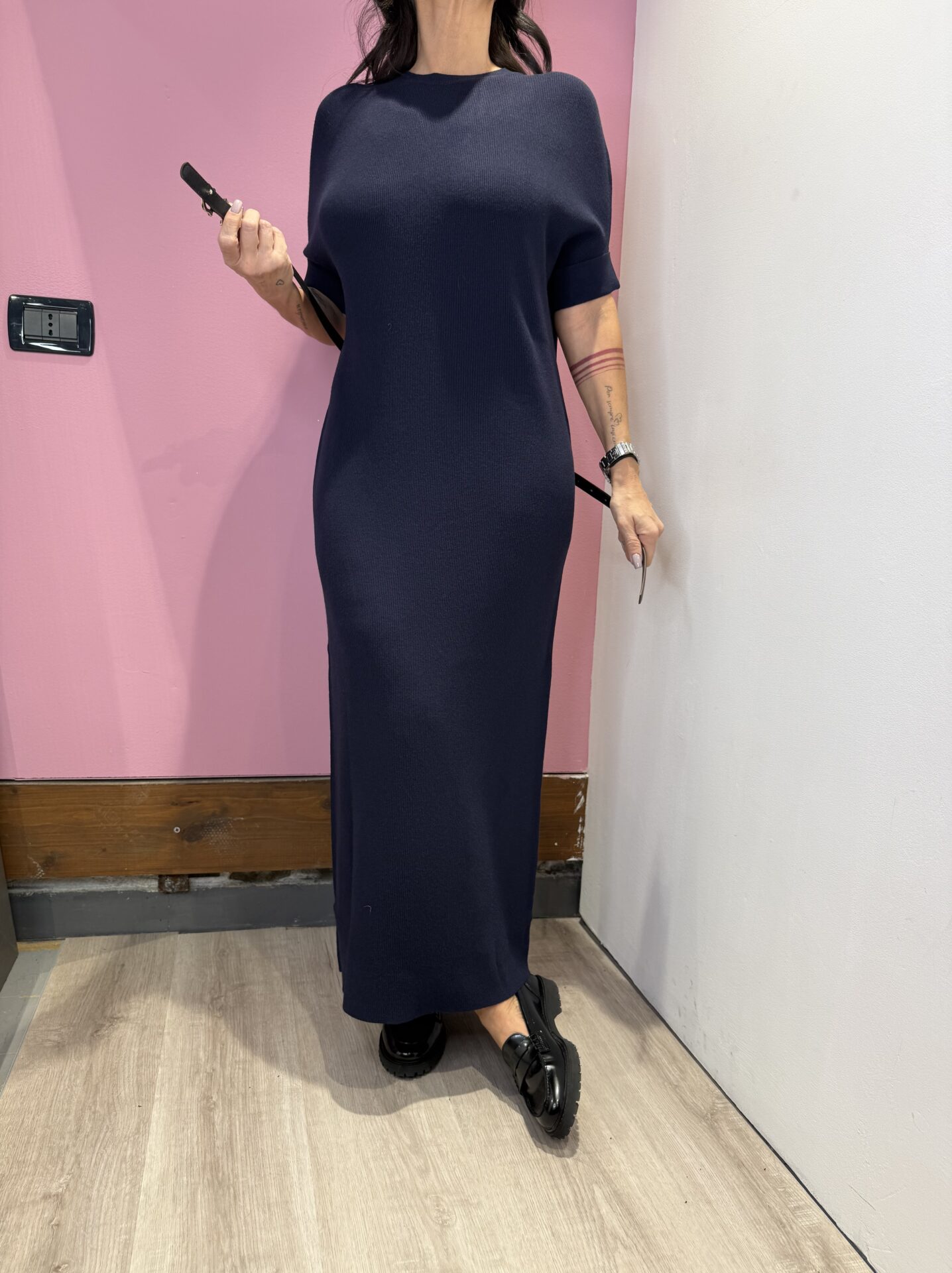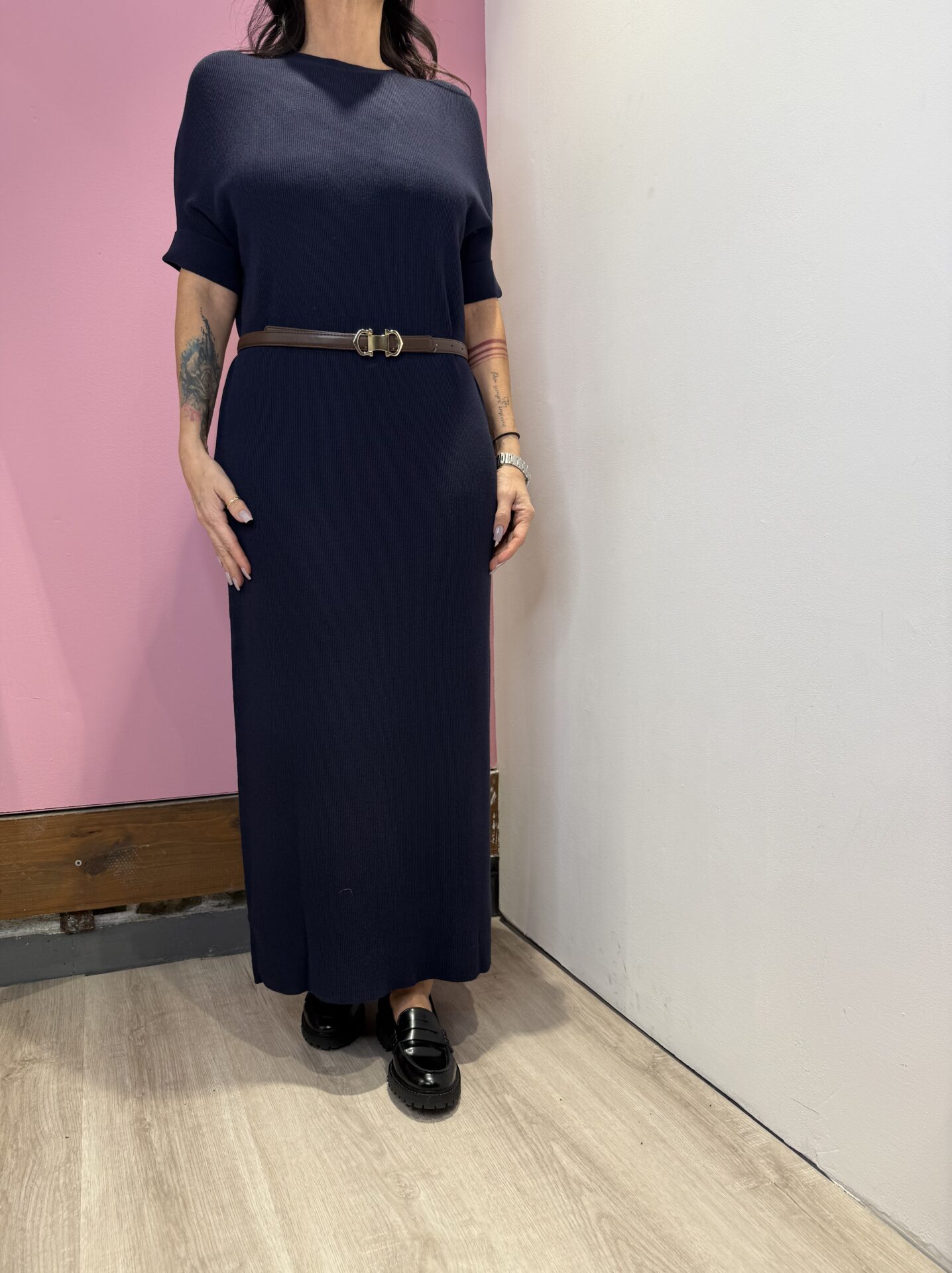 Abito Lungo VICOLO girocollo a costine , con cintura