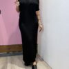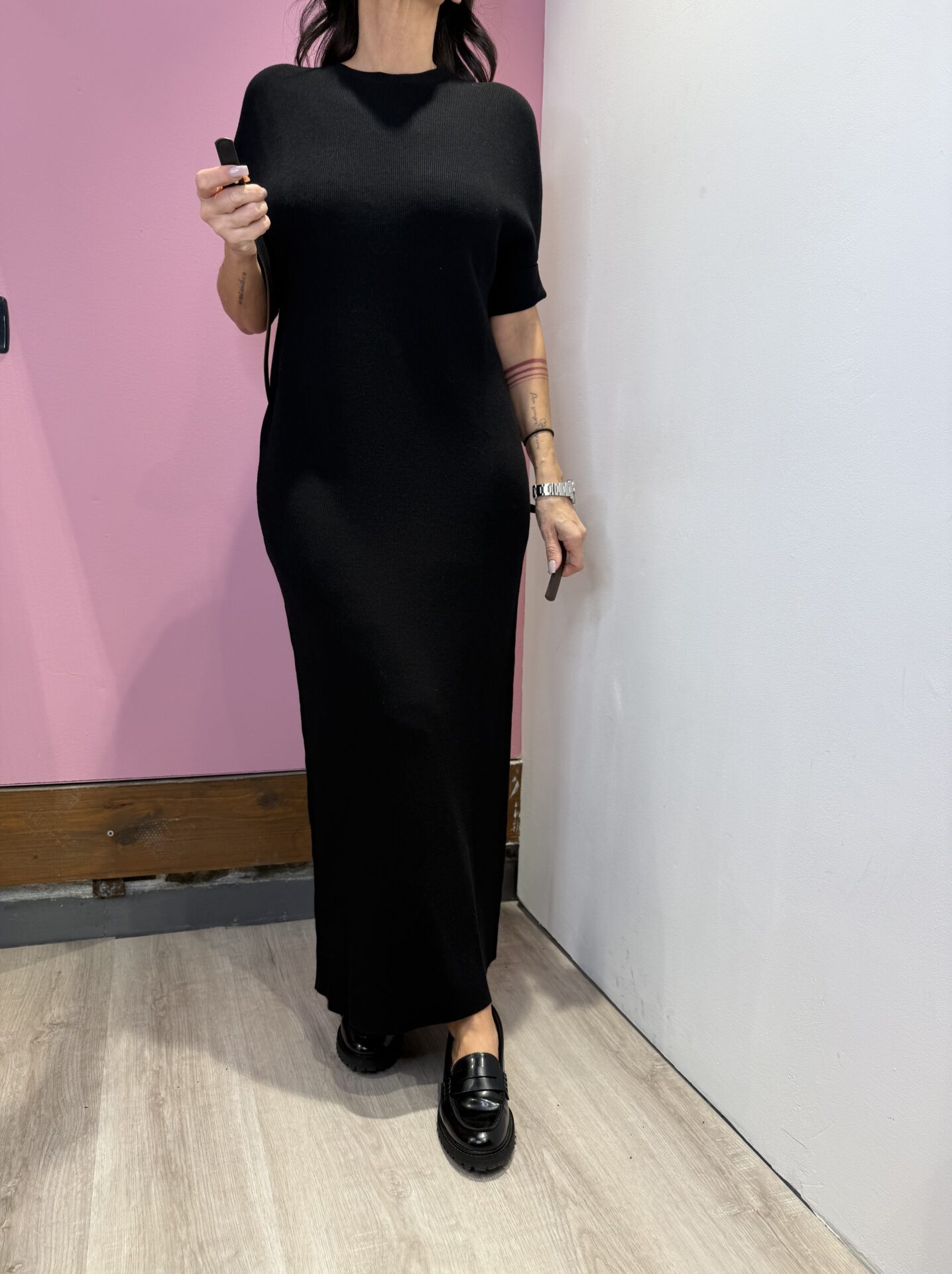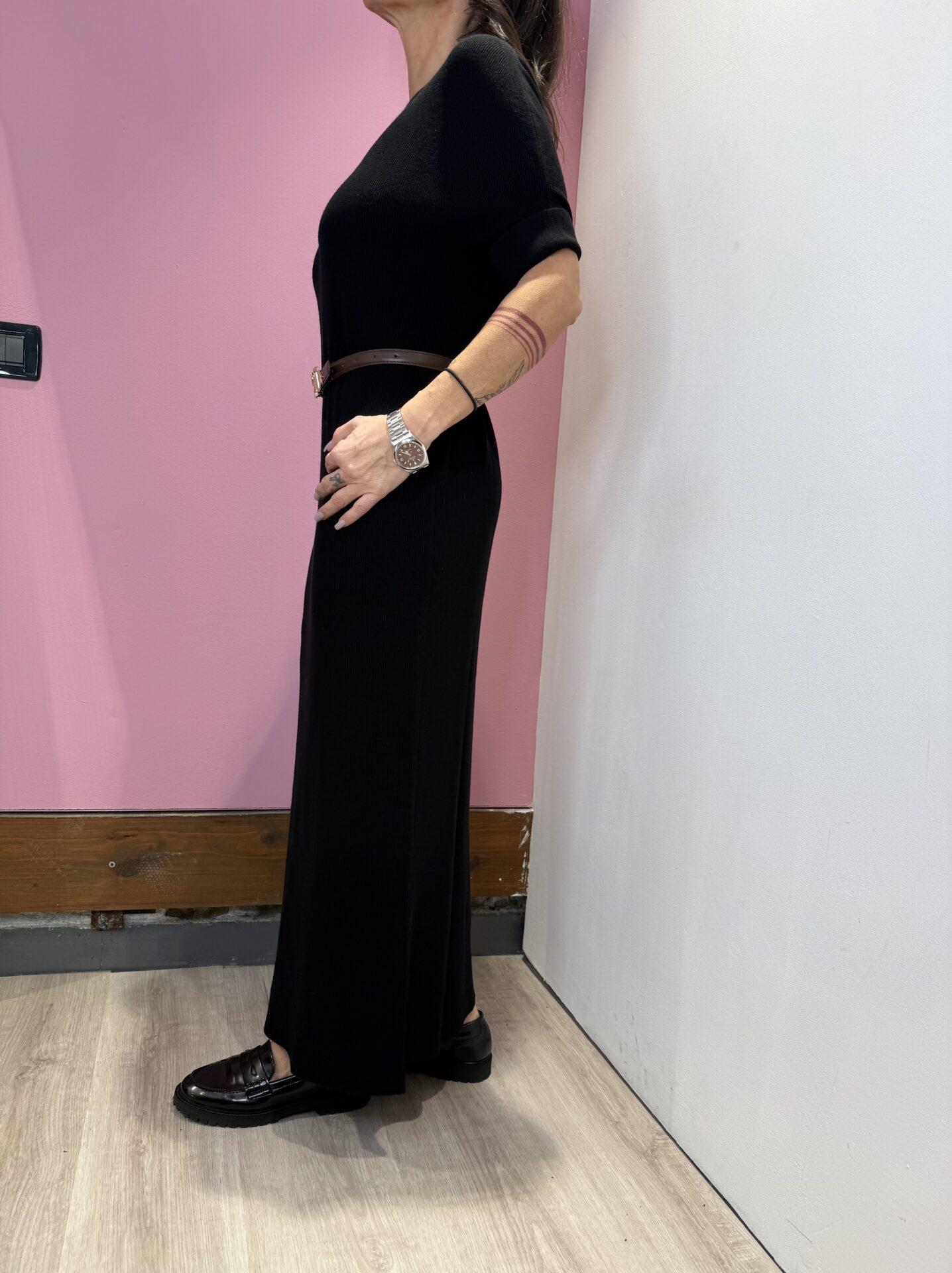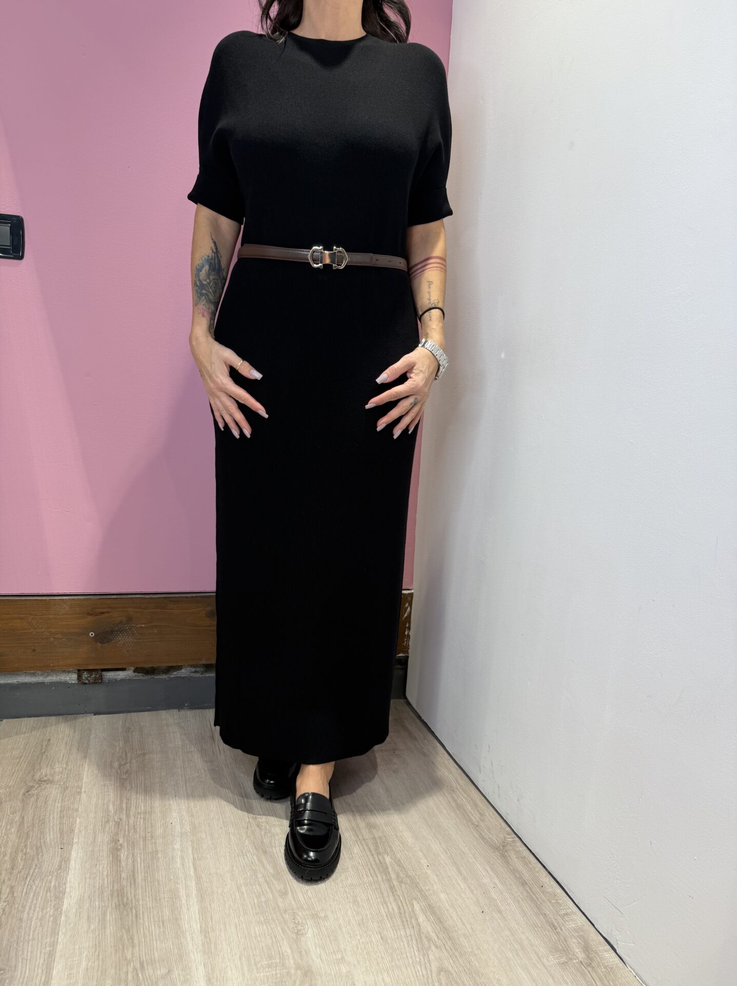 Abito Lungo VICOLO girocollo a costine con risvolto sulla manica , con cintura