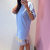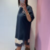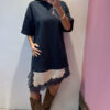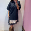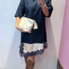 Abito MOTEL girocollo in cotone garzato con bordo asimmetrico in raso & pozzo