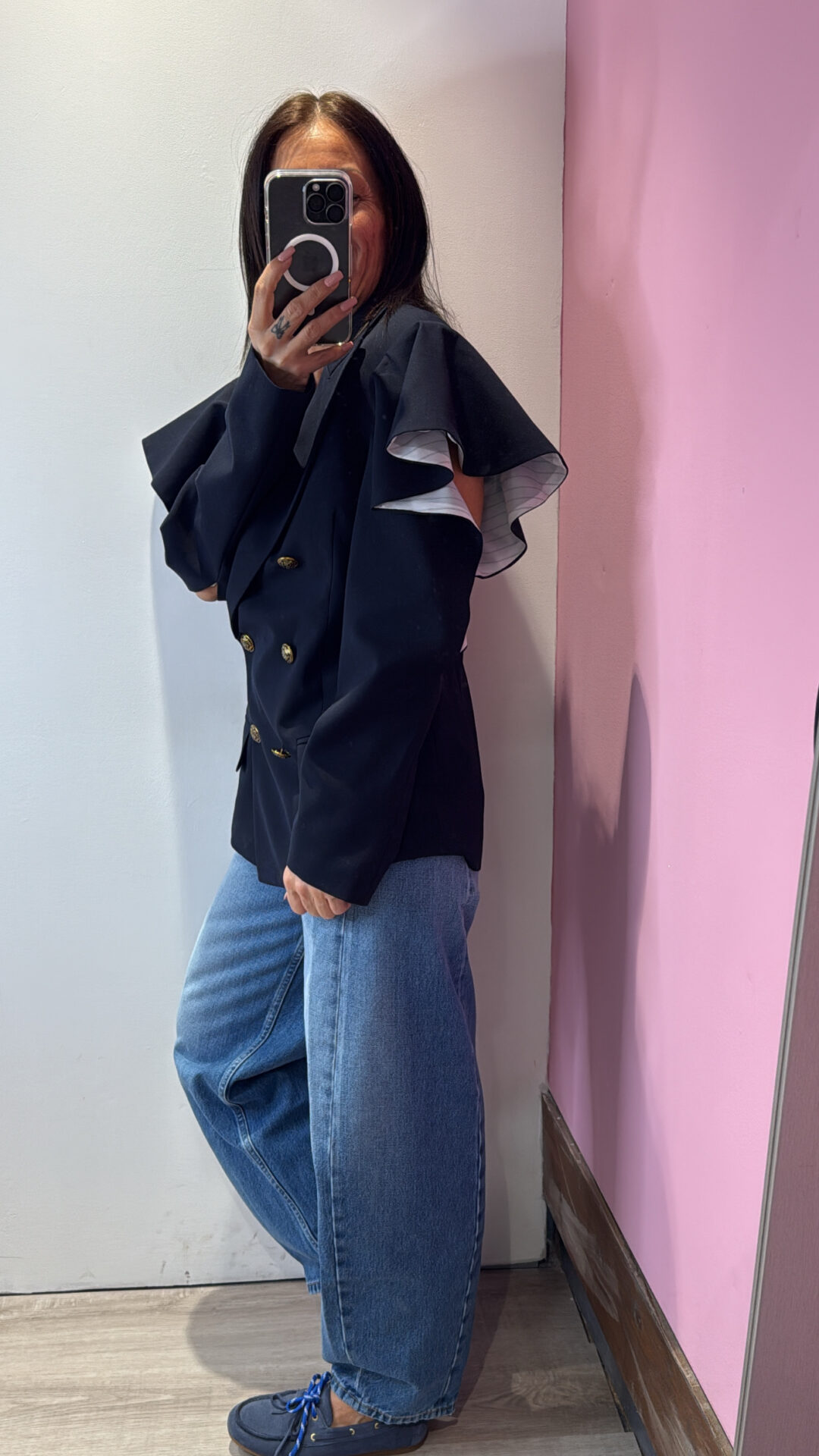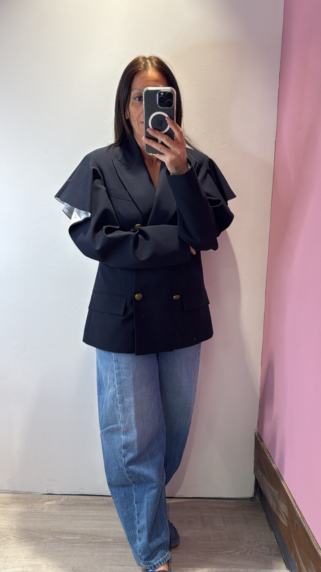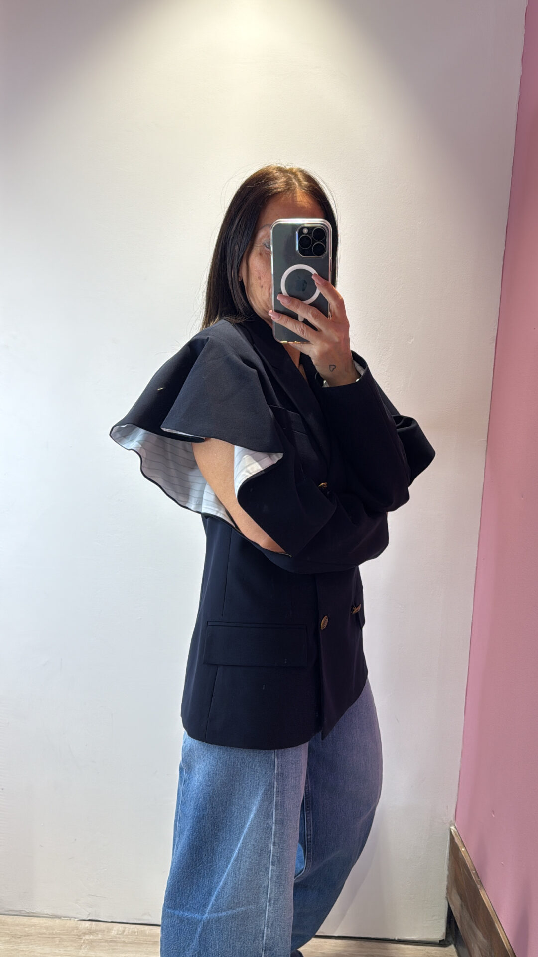 Giaccia VICOLO a doppio petto con collo a rever , con manica CUT OUT sul gomito & rouches