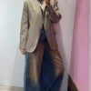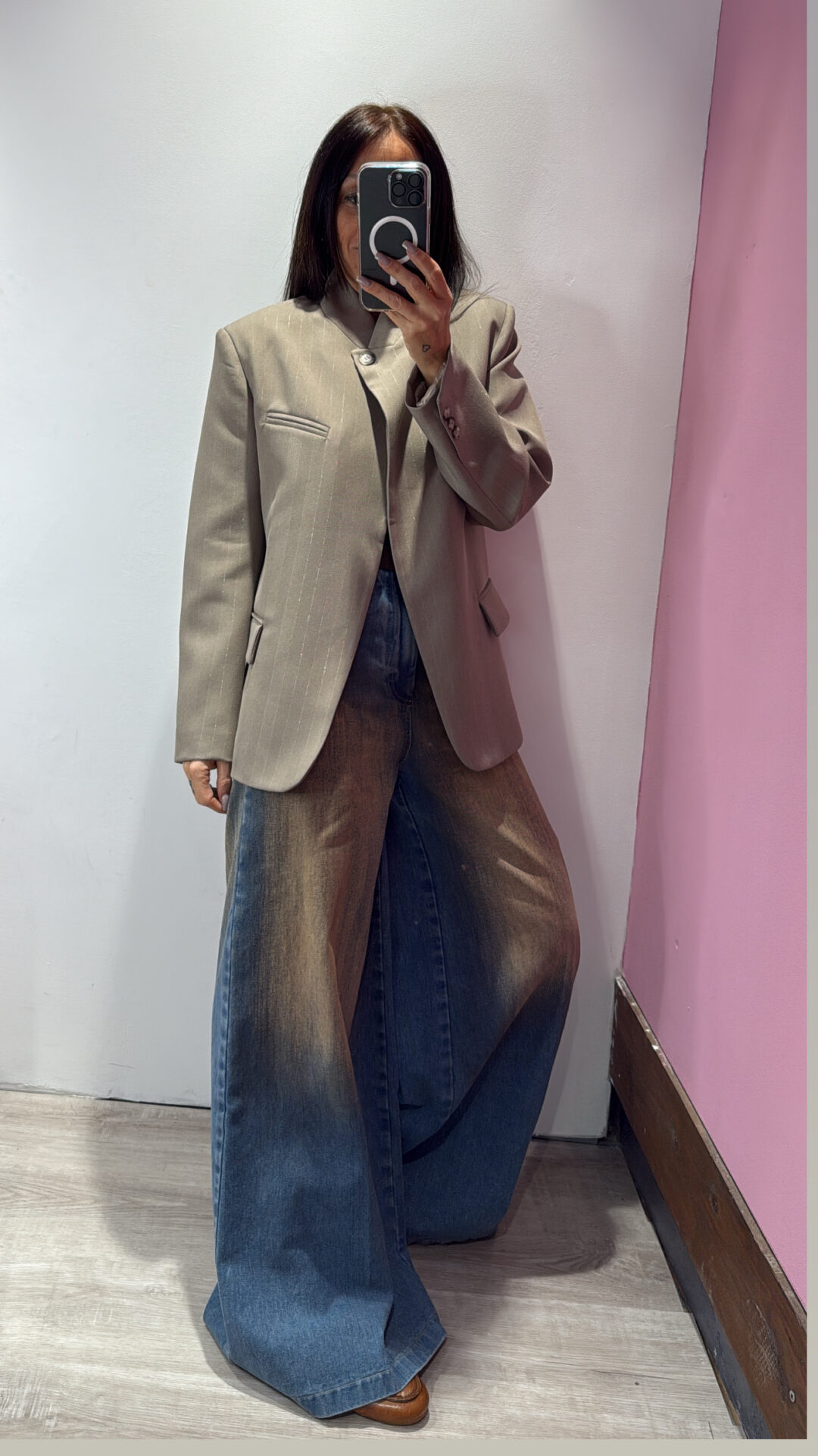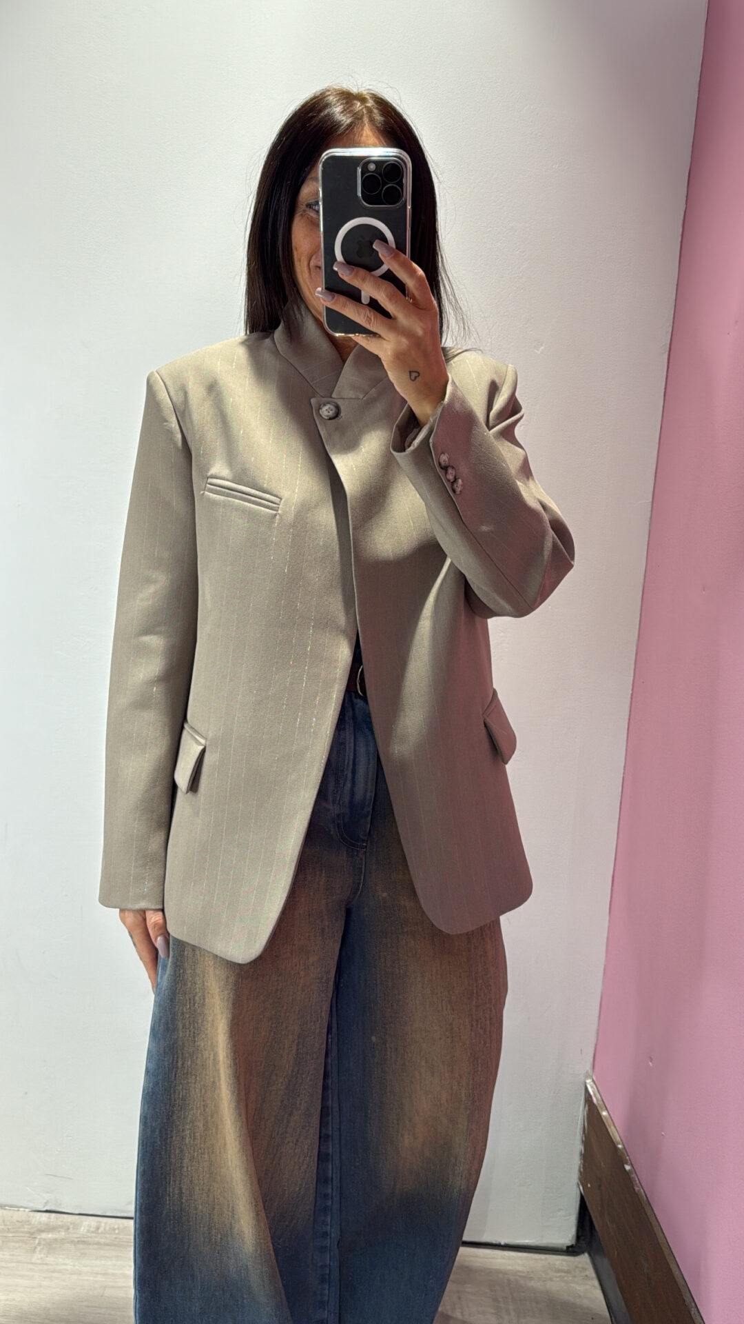 Blazer VICOLO gessato a collo alto, maniche lunghe con spacco frontale