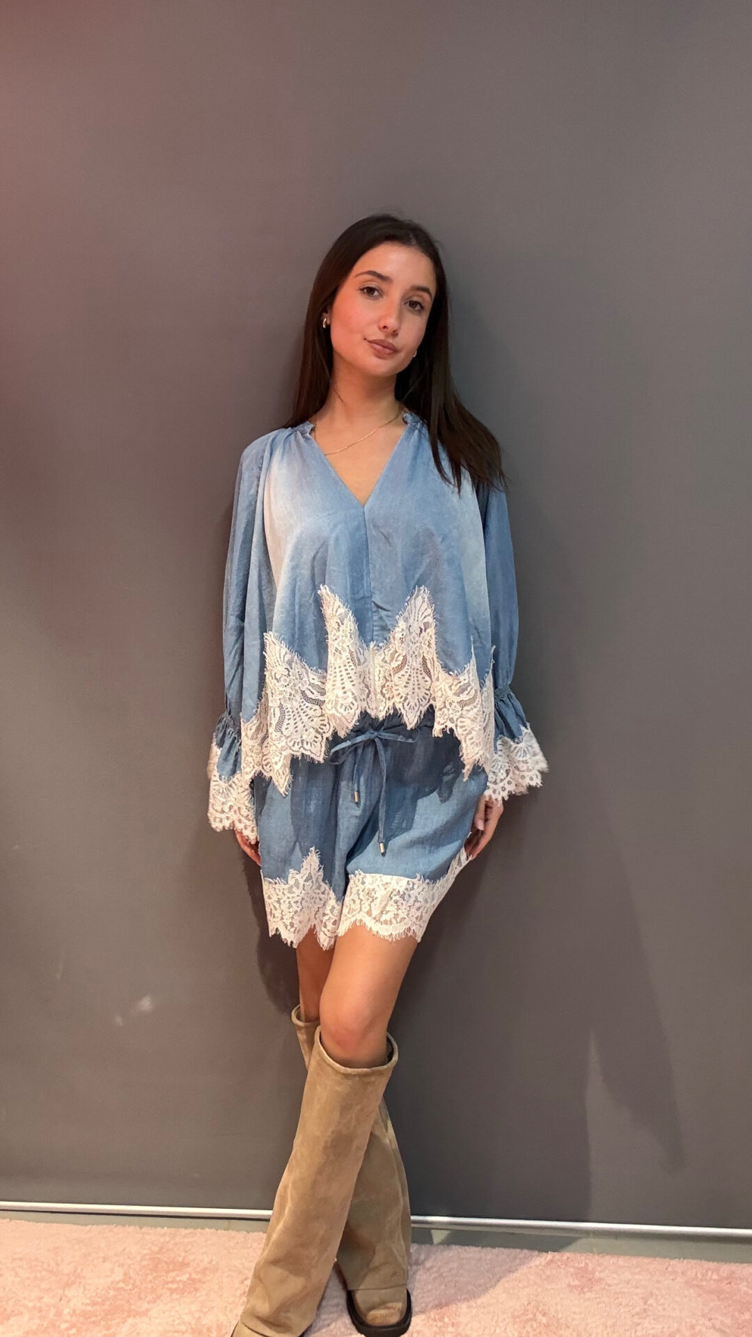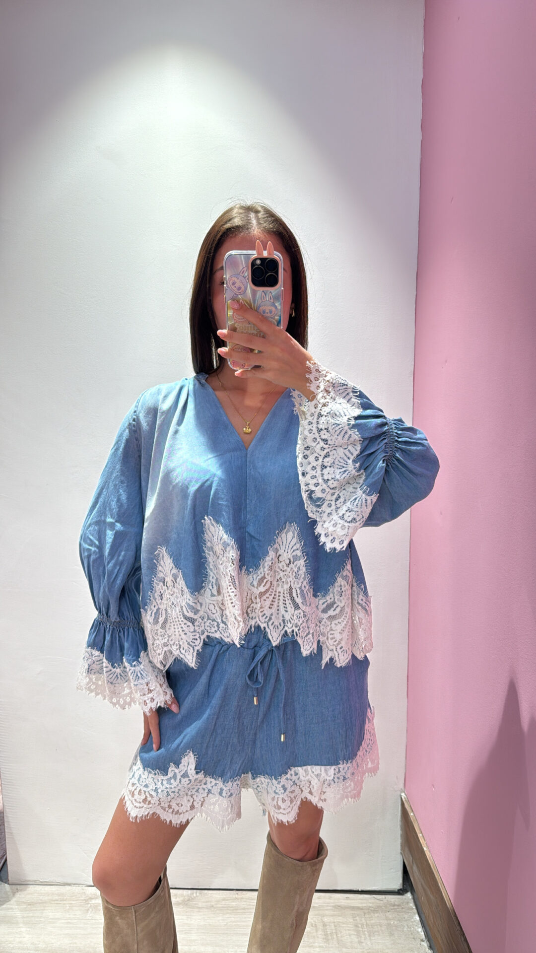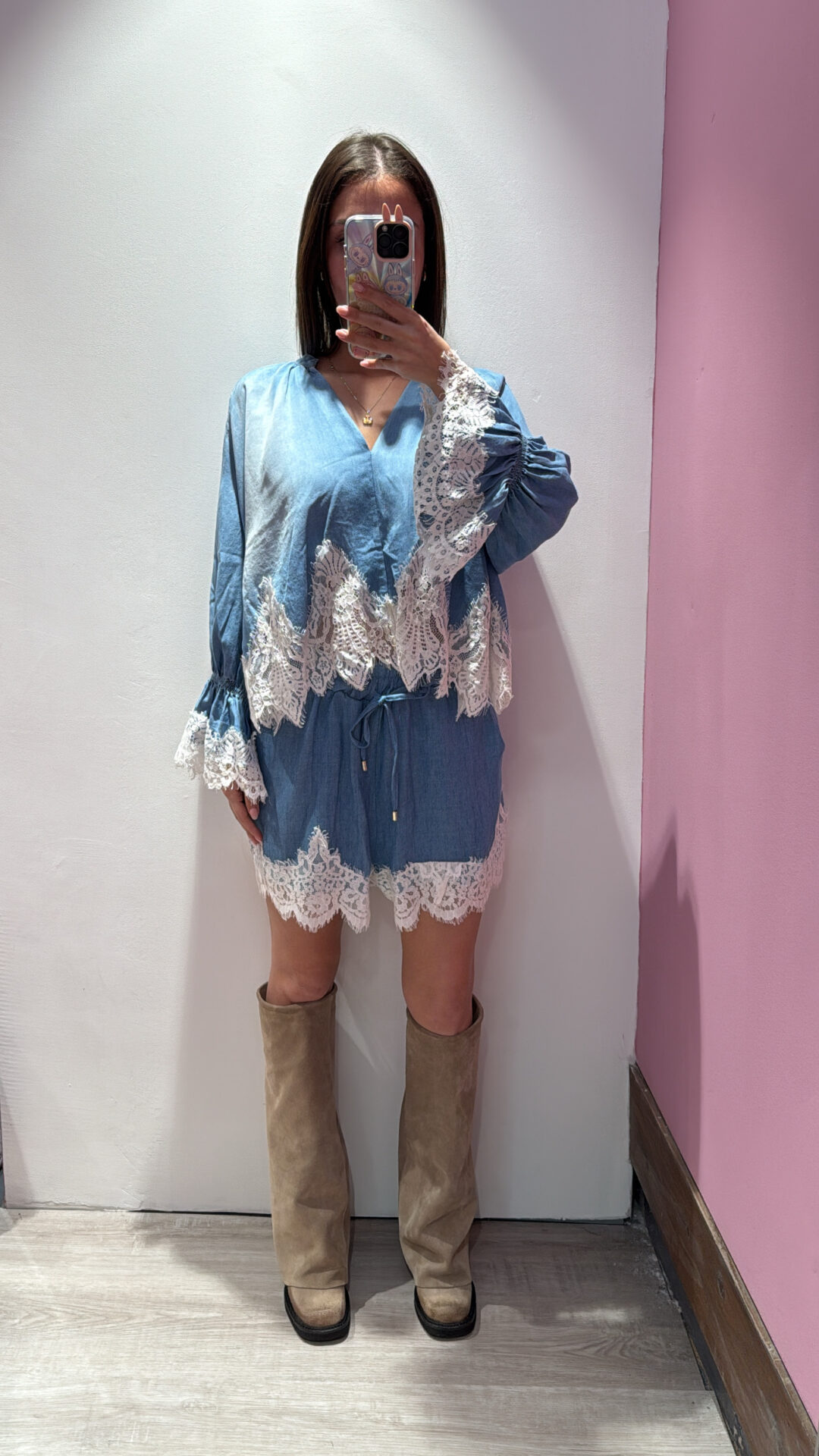 Blusa / Camicia MOTEL effetto denim con dettagli in pizzo