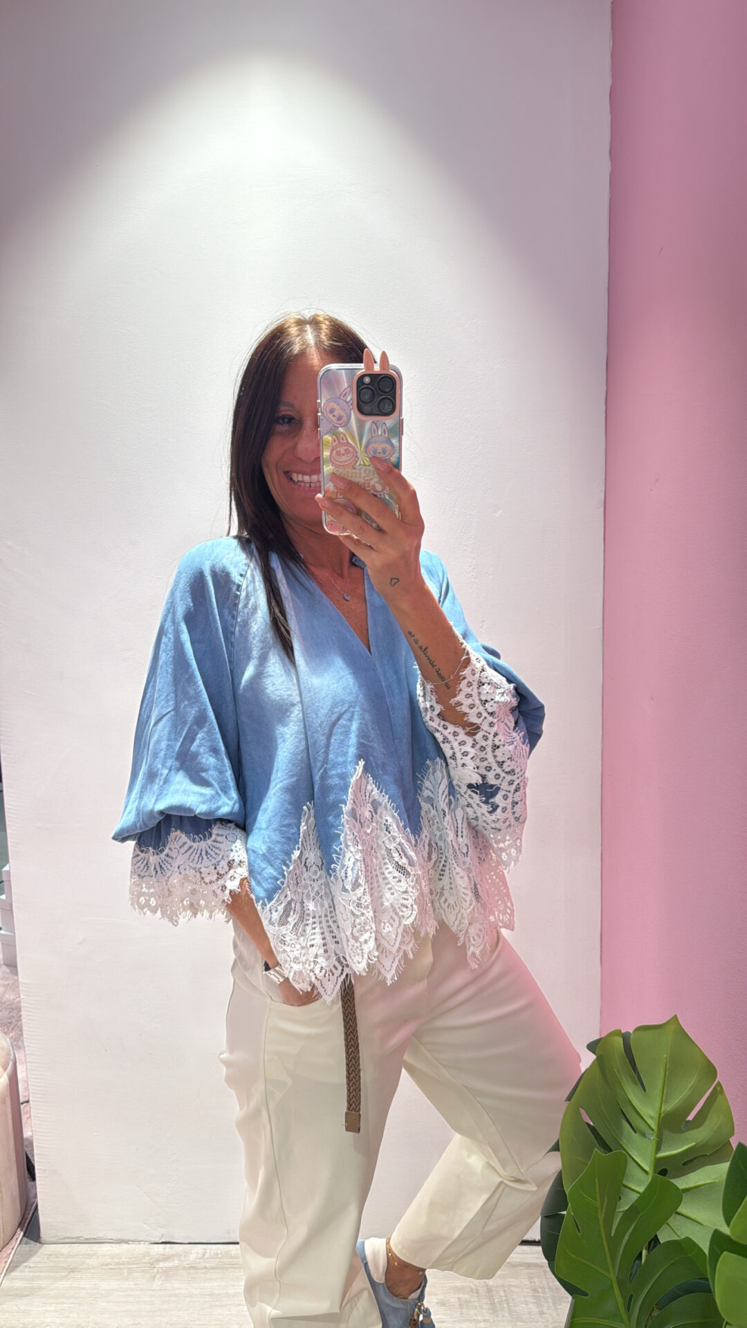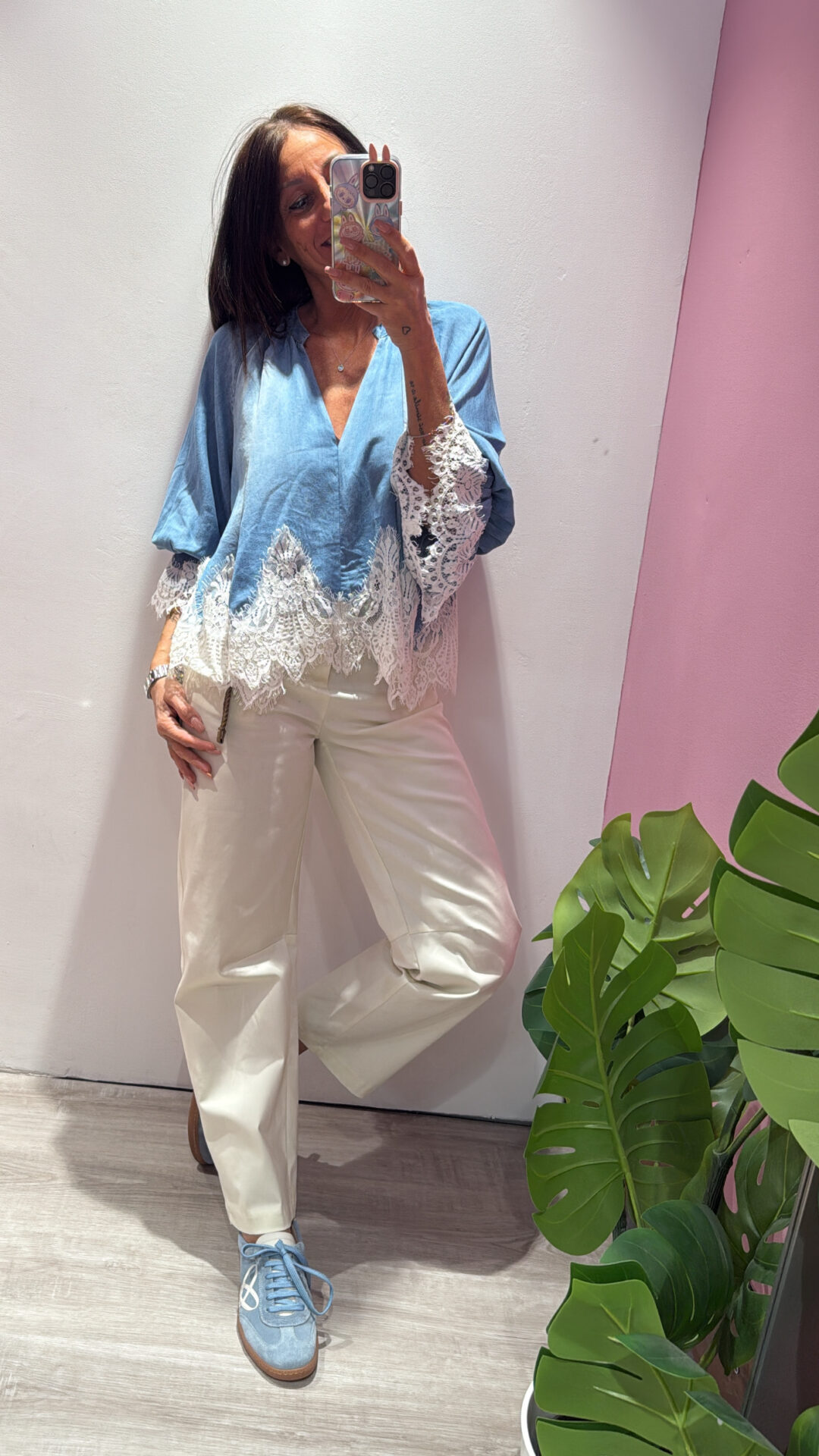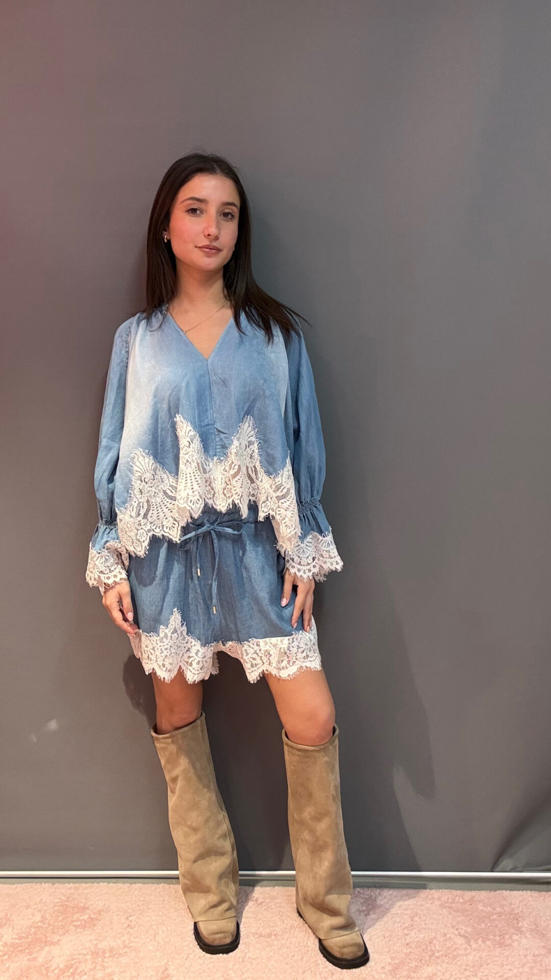 Blusa / Camicia MOTEL effetto denim con dettagli in pizzo