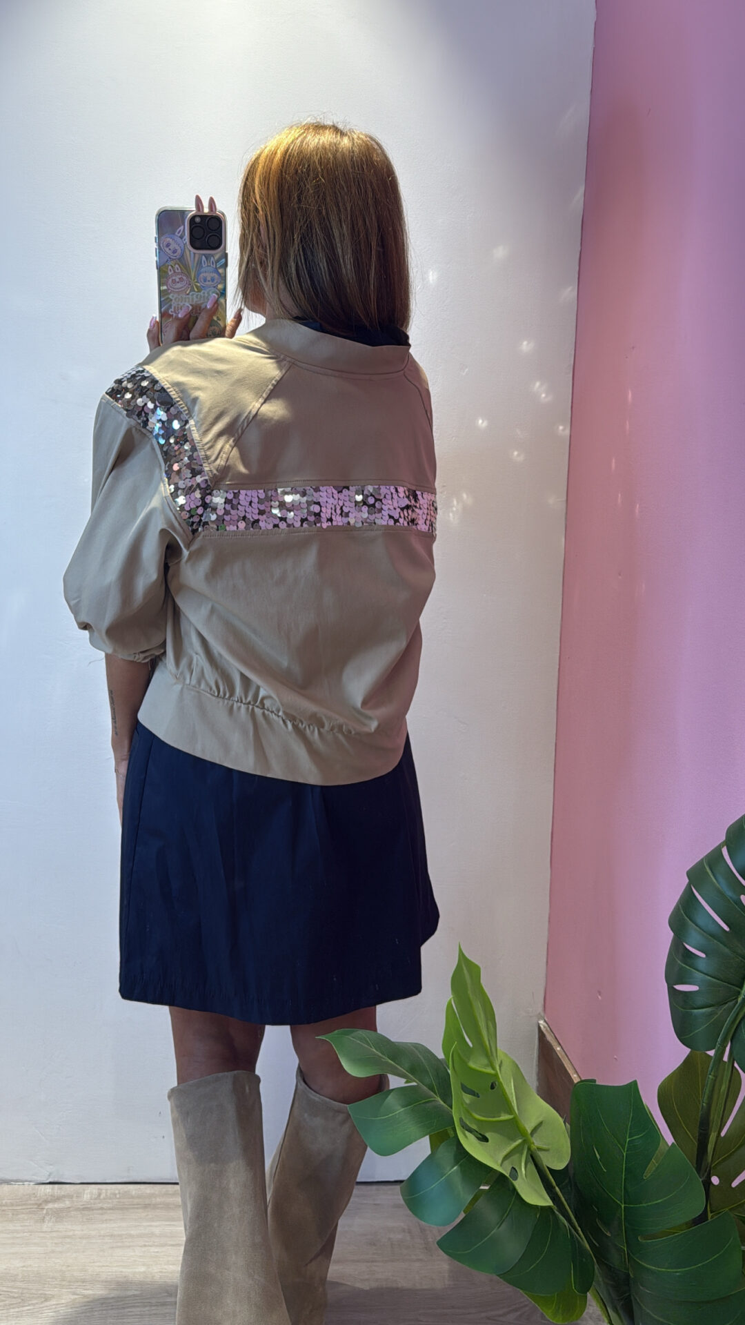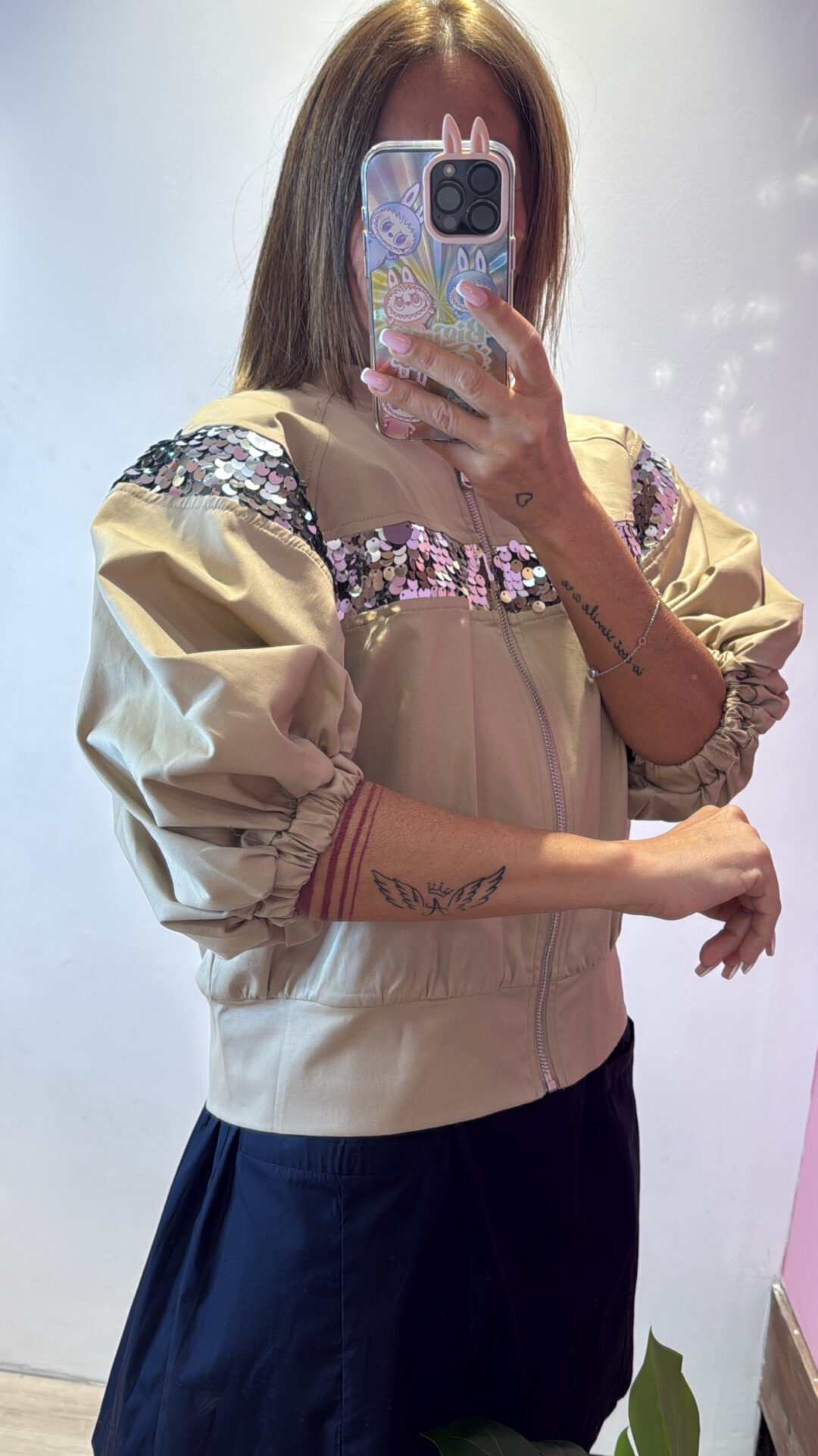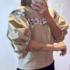 Bomber Crop MOTEL con fascia di paillettes, maniche a palloncini elasticizzate sul bordo