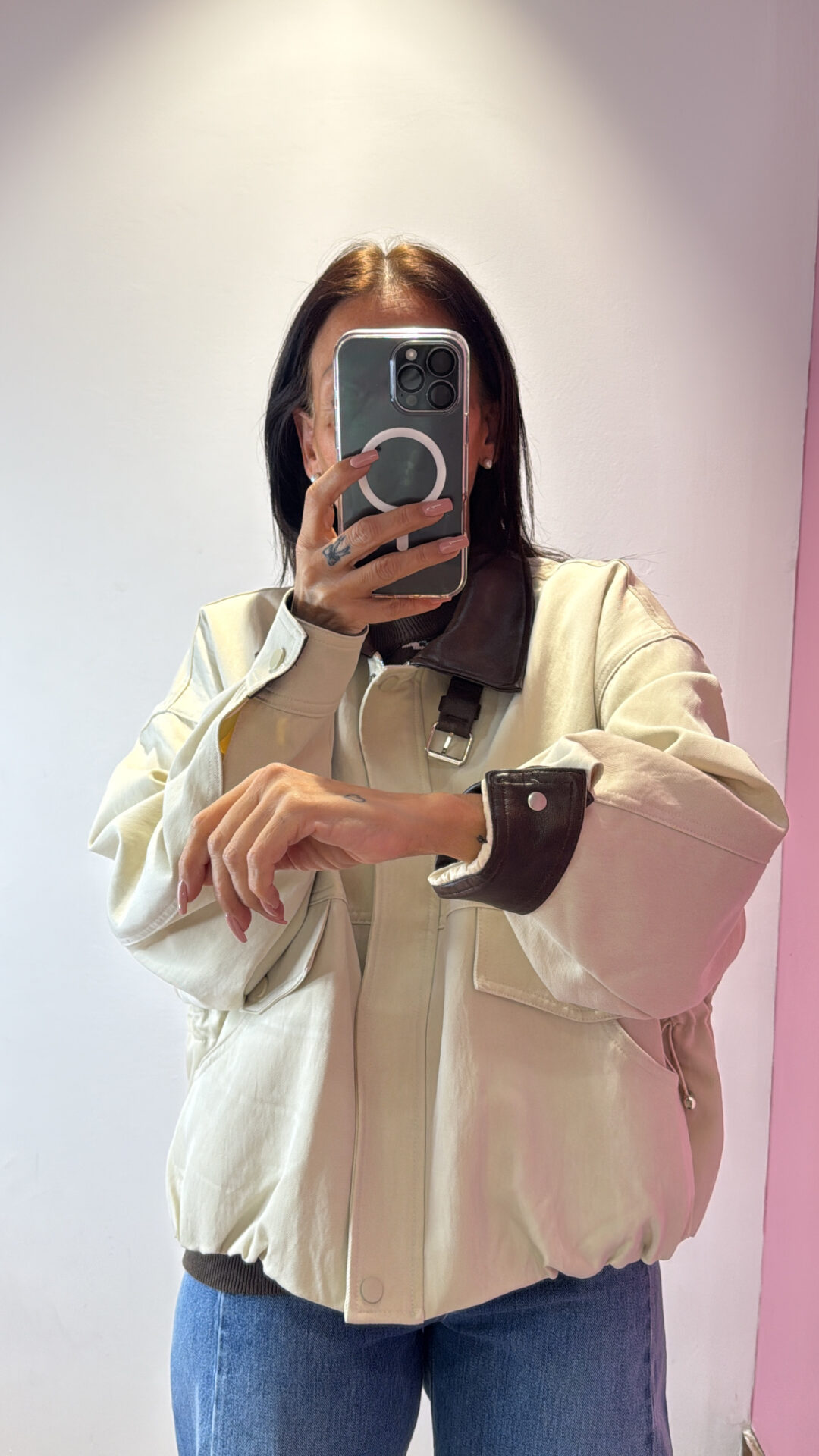 Chiusura frontale con zip & bottoni in tinta