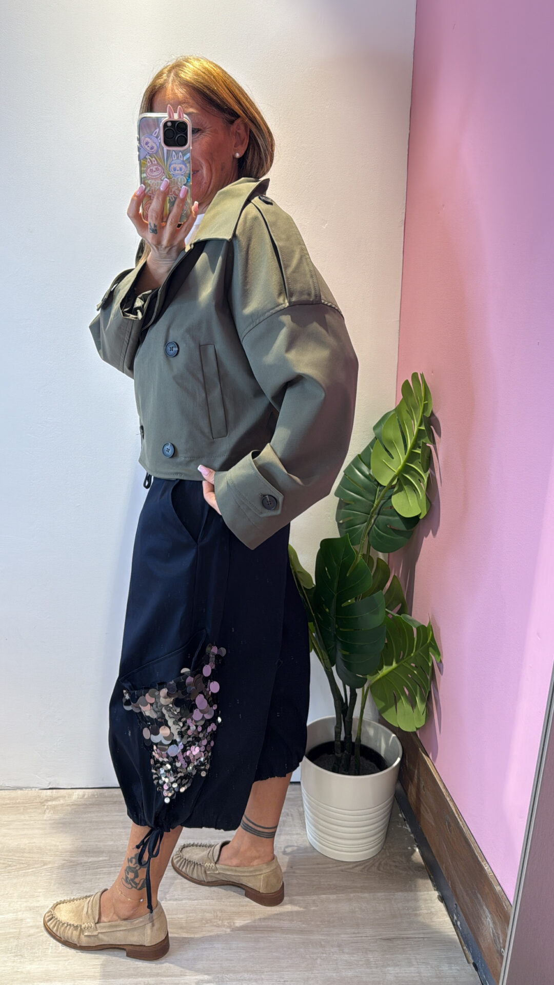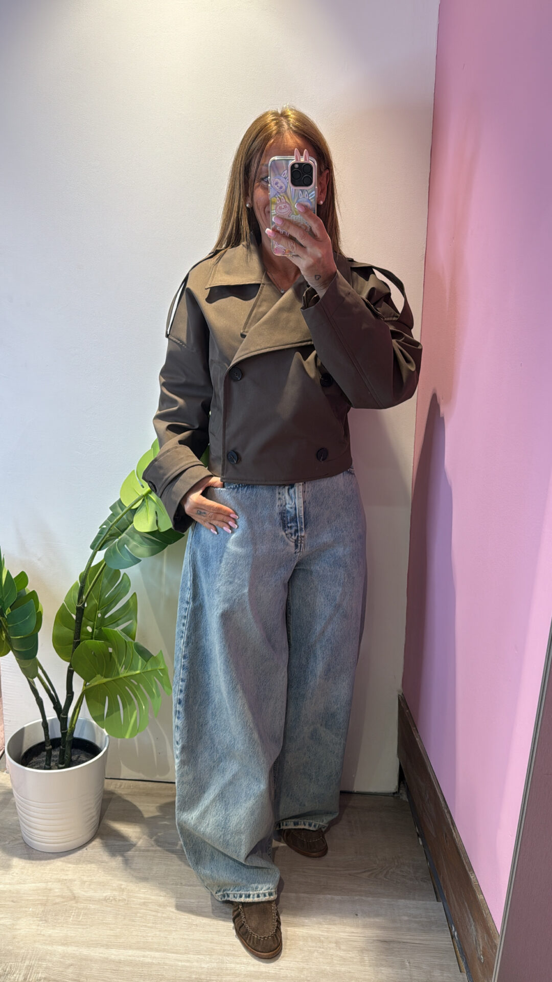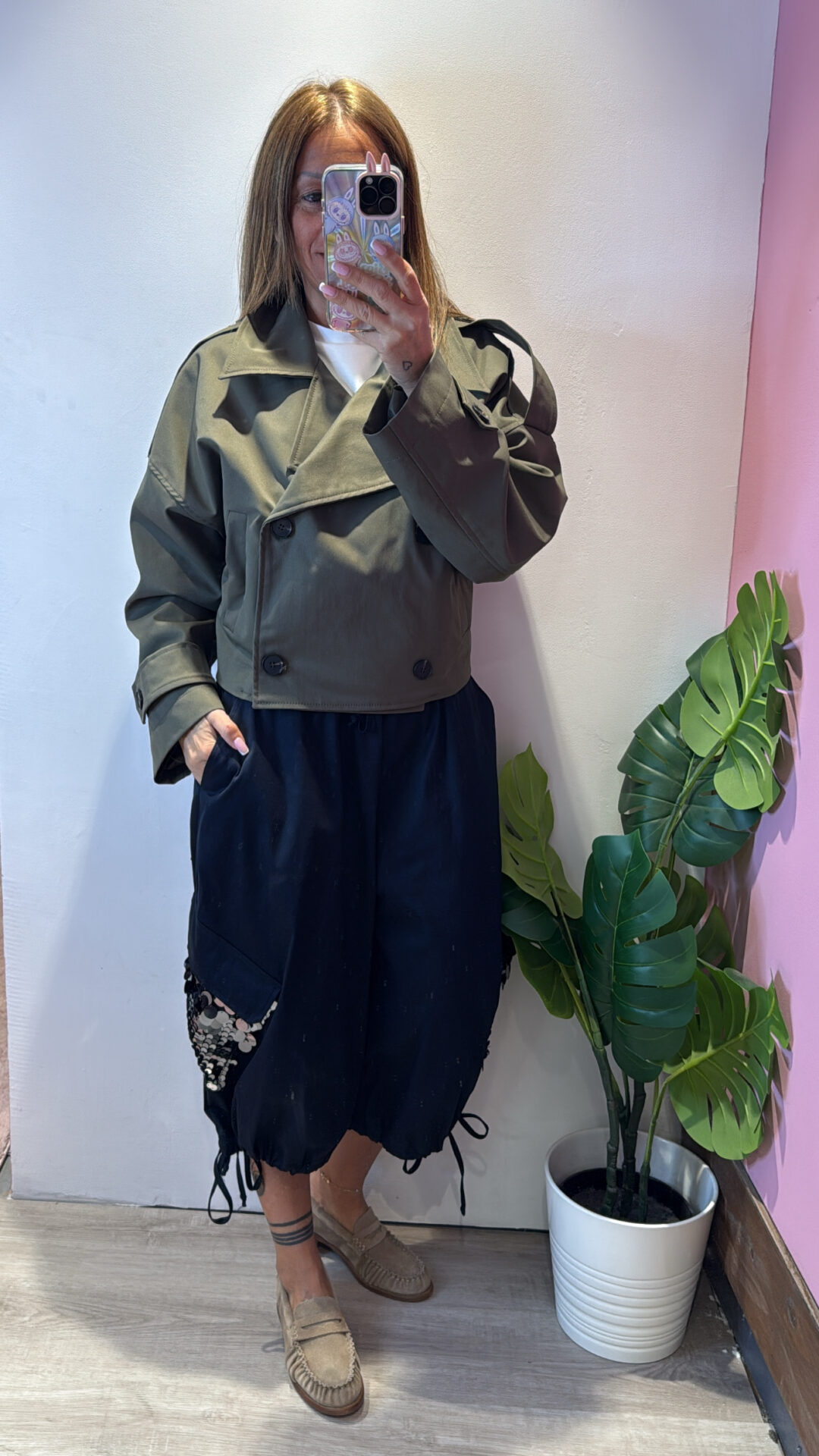 Bomber VICOLO con collo a rever , doppio petto . Particolare la scritta sul retro ” FIND YOUR CALM ”