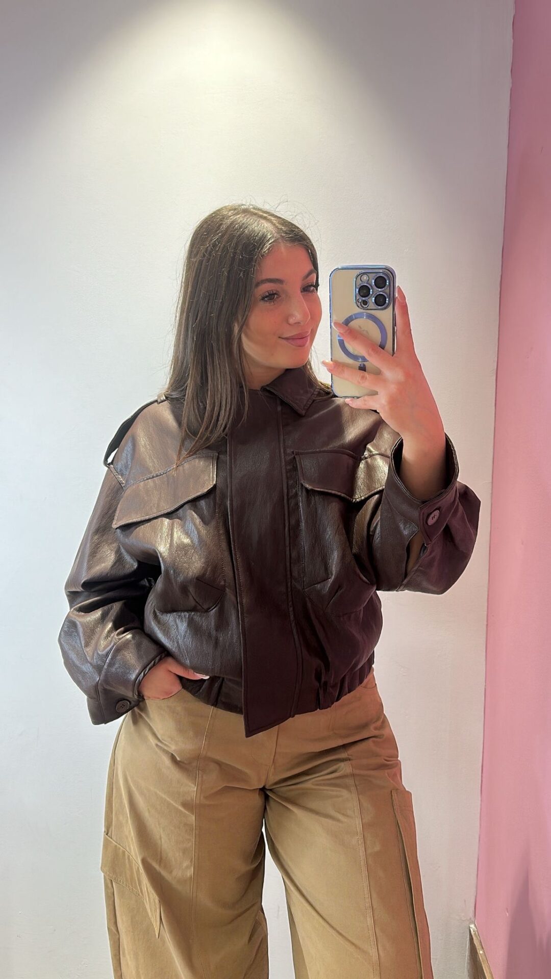 Bomber VICOLO in ecopelle morbidissima con tasconi frontali (finti)