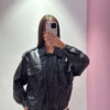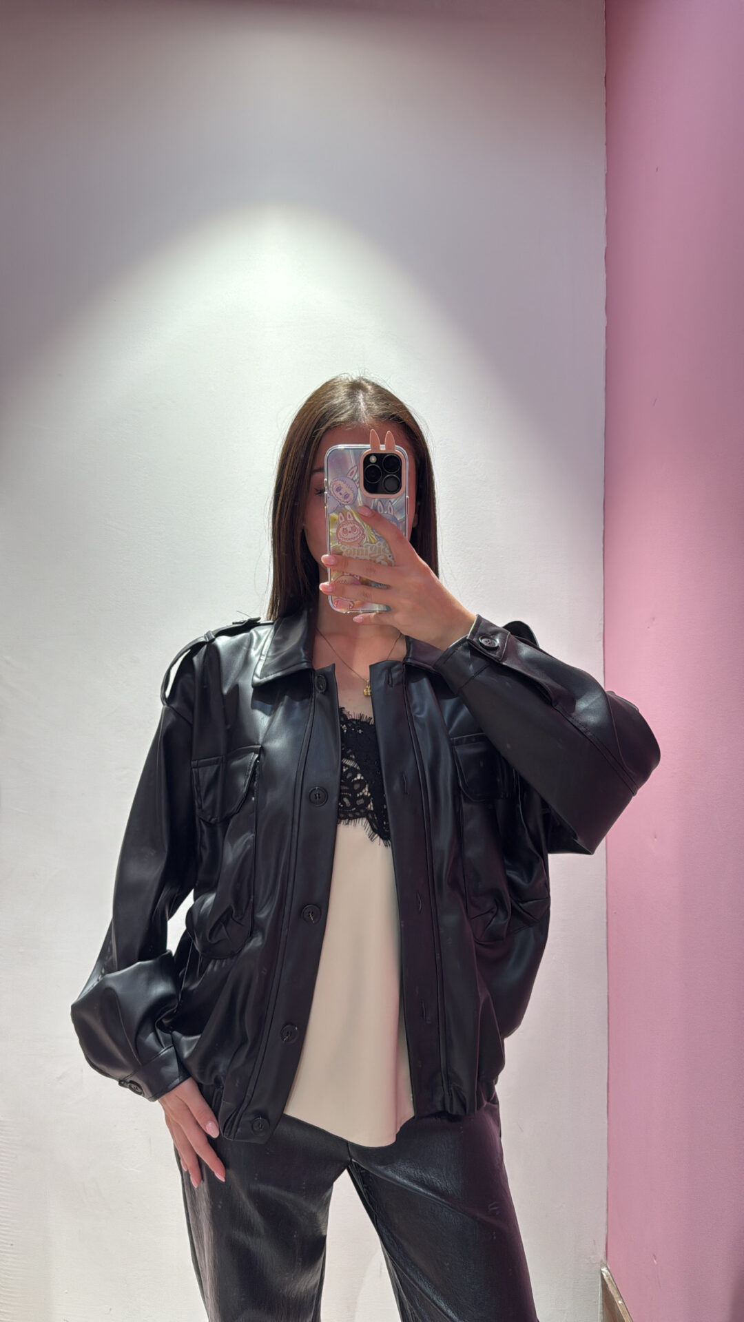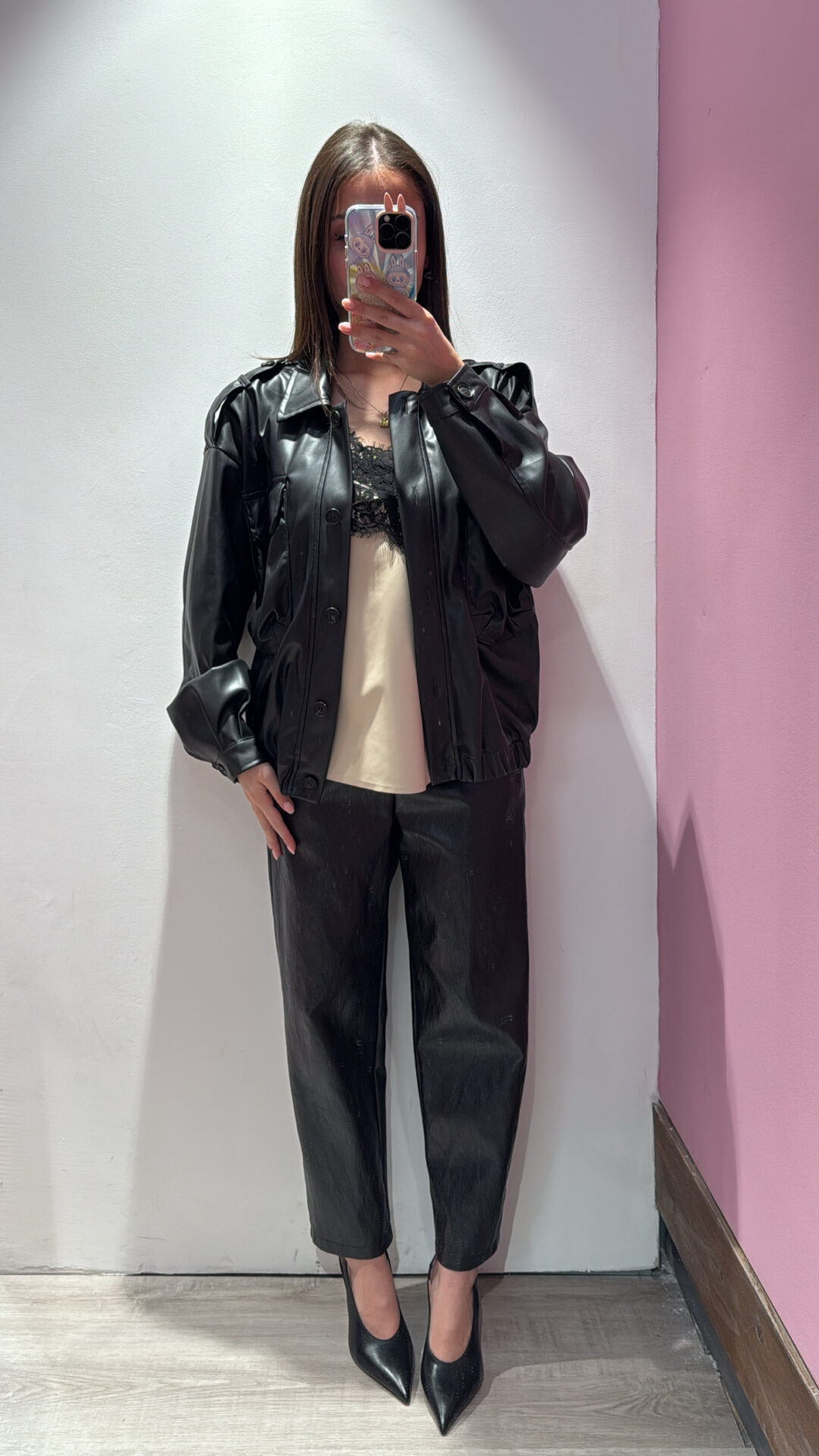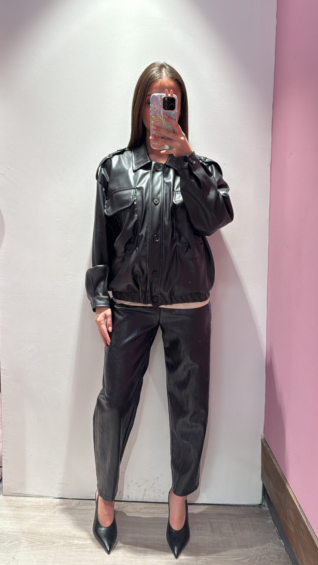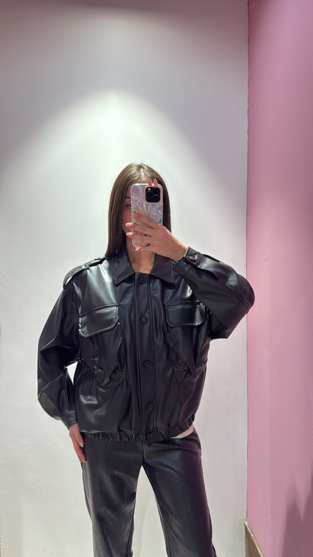 Bomber VICOLO con collo a rever in ecopelle morbidissima con tasconi frontali (finte)