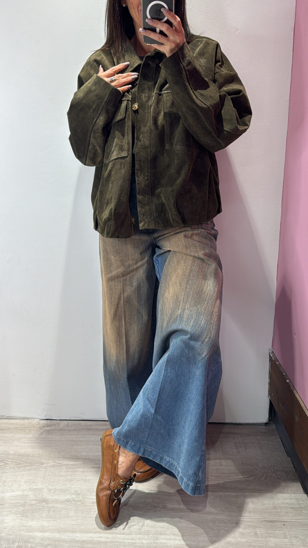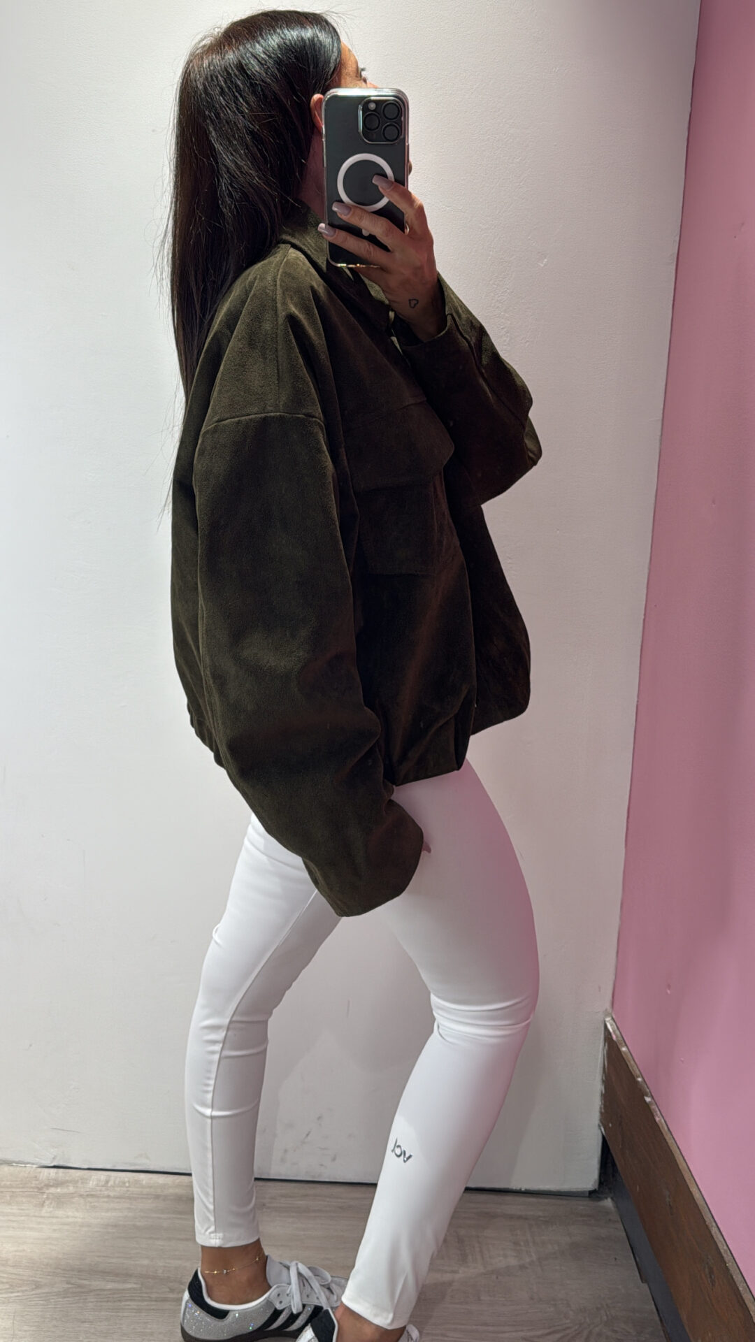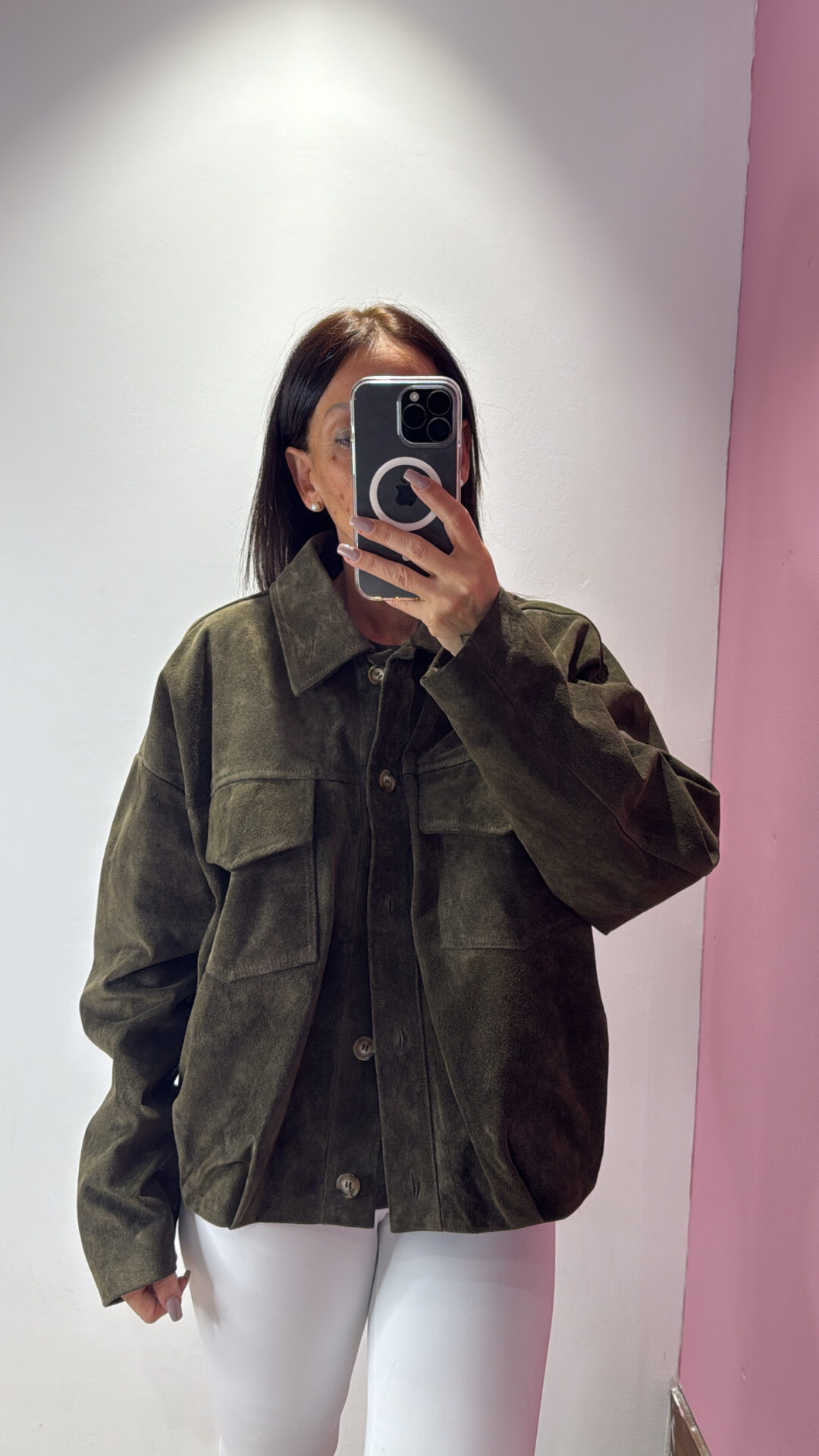 Giacca bomber VICOLO corta scamosciata in pelle, con colletto e maniche lunghe