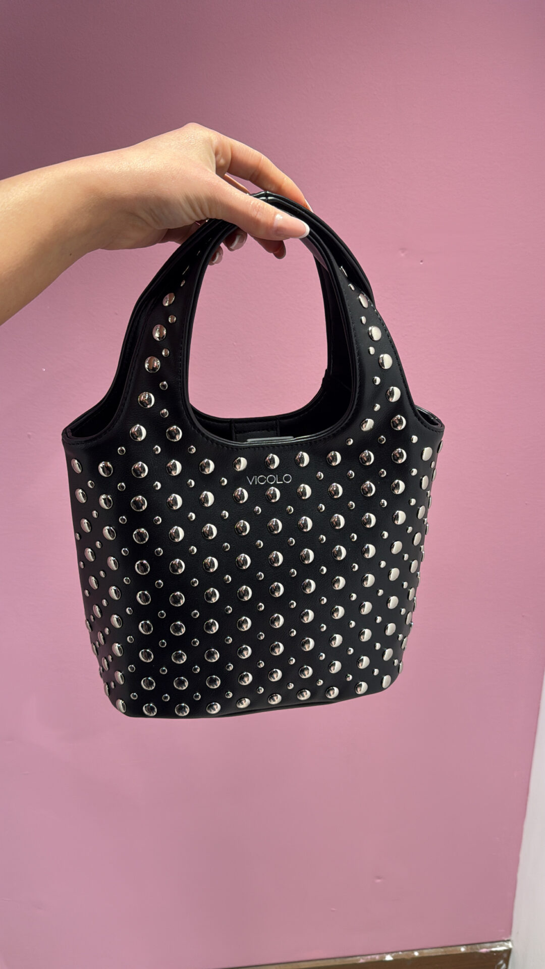 Borsa VICOLO mod. BUCKY a secchiello in ecopelle con borchie