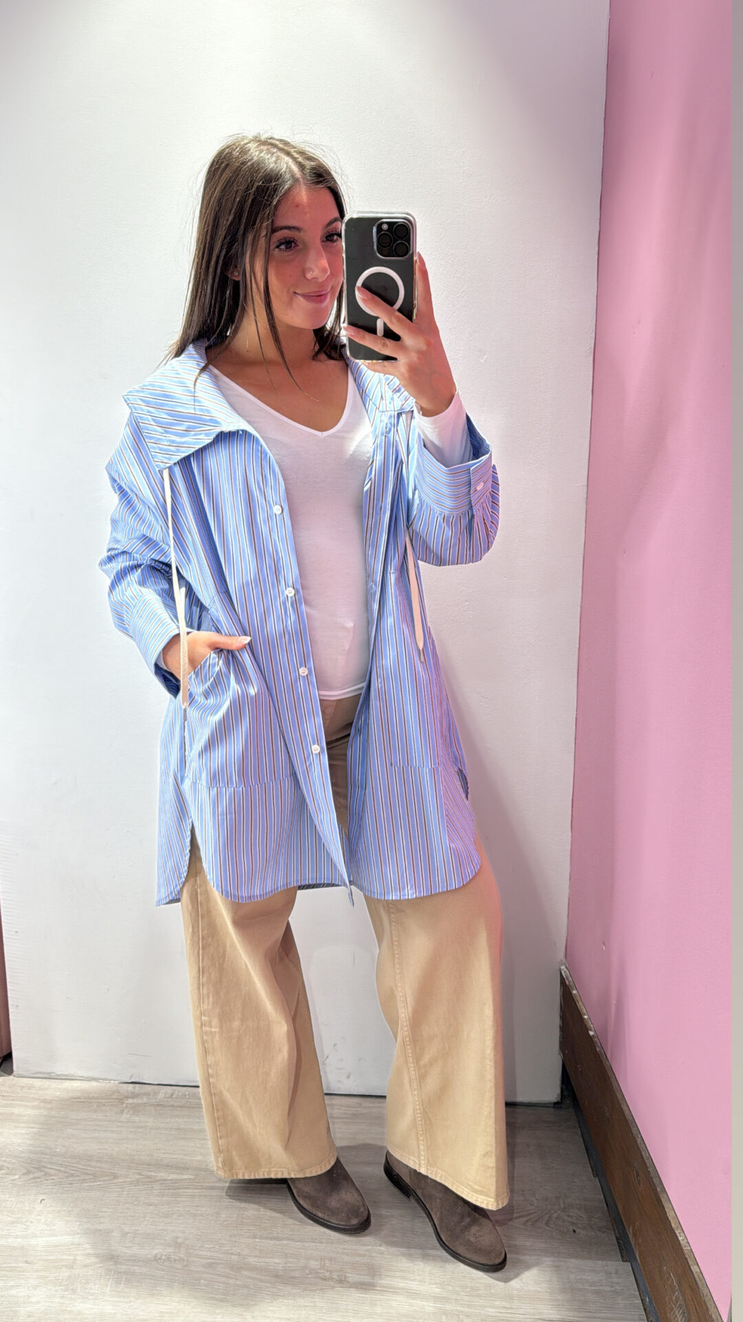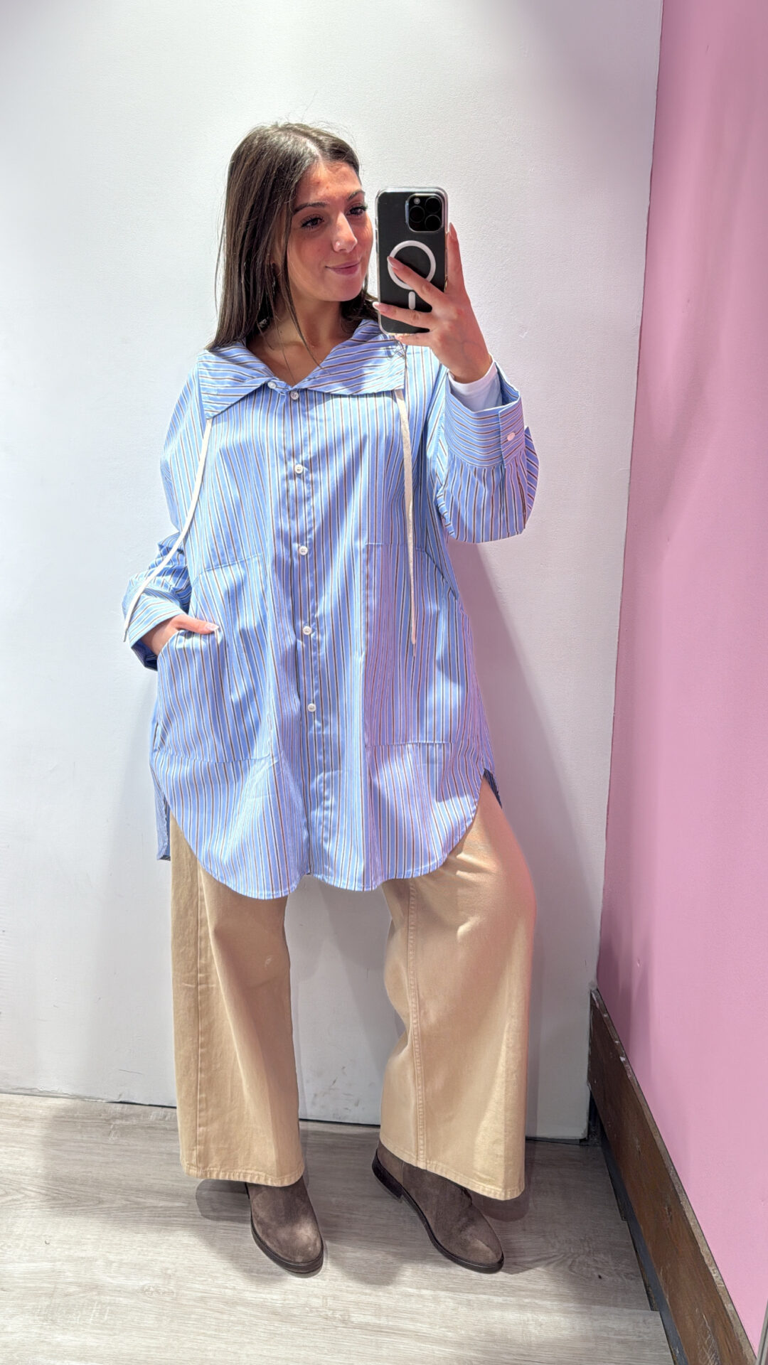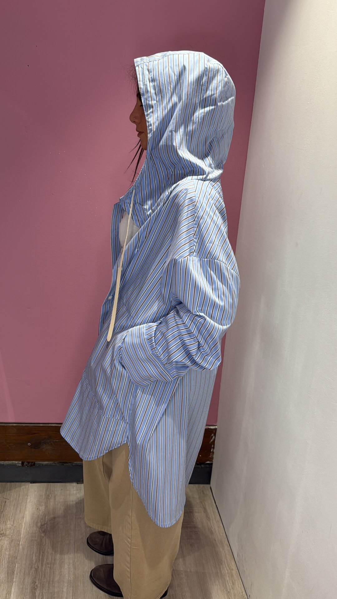 Camicia Over VICOLO con cappuccio a righe