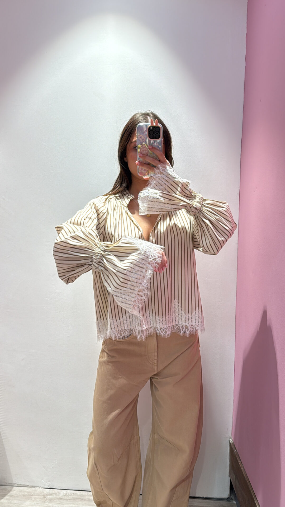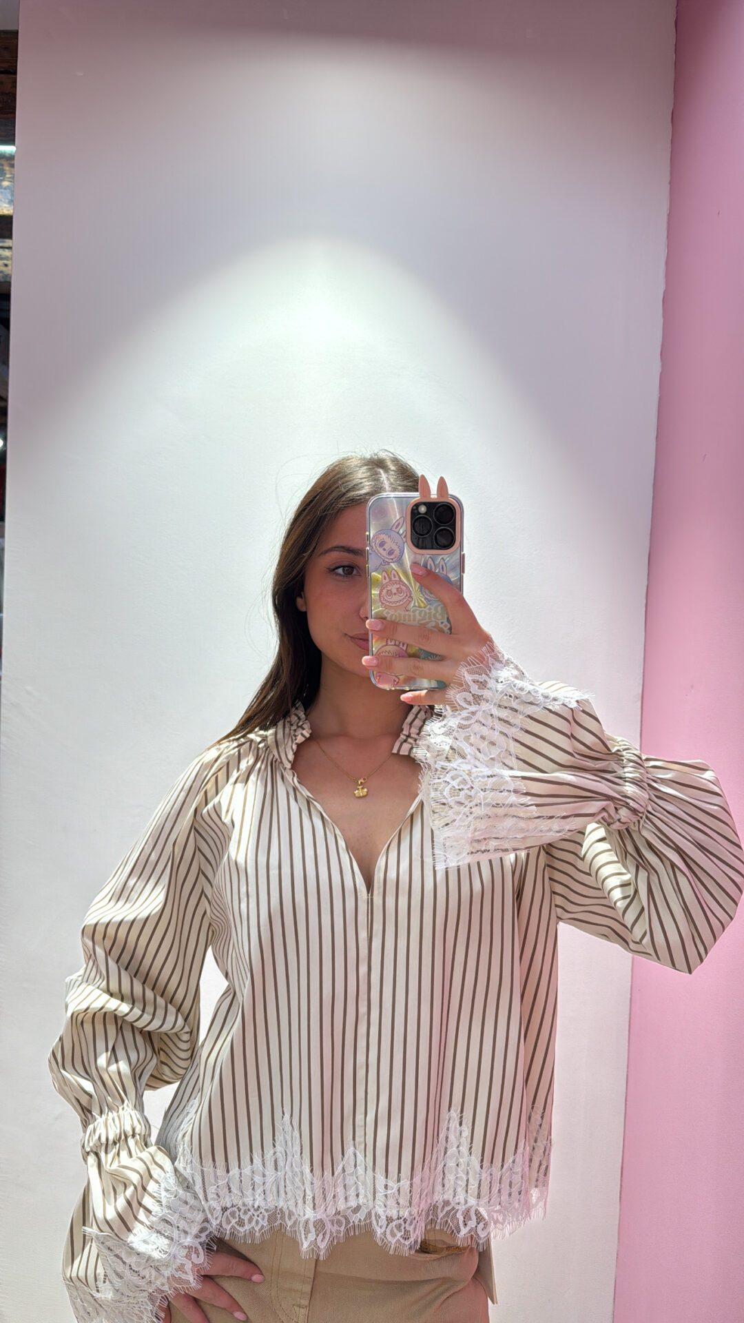 Camicia VICOLO a righe con dettaglio in pizzo