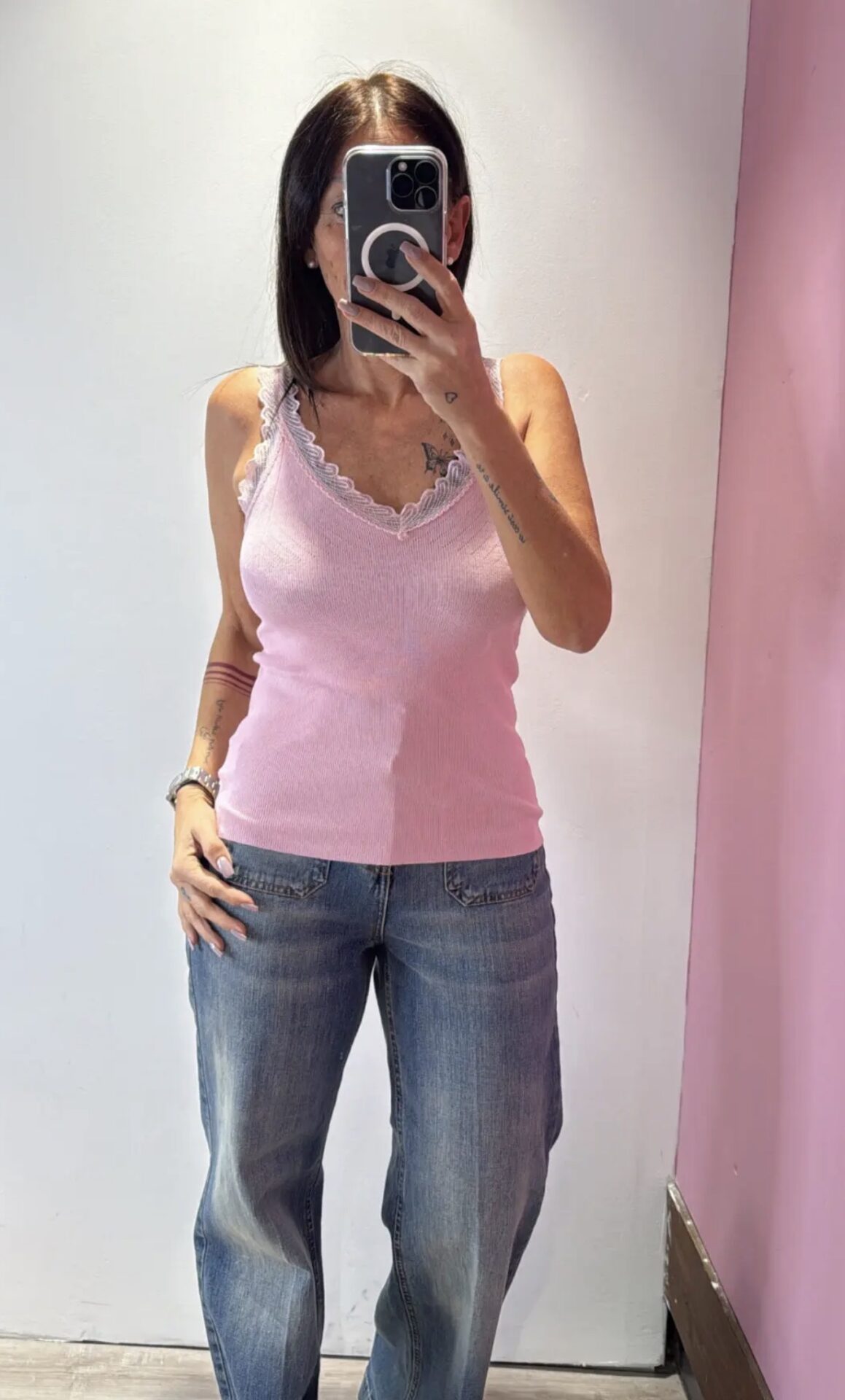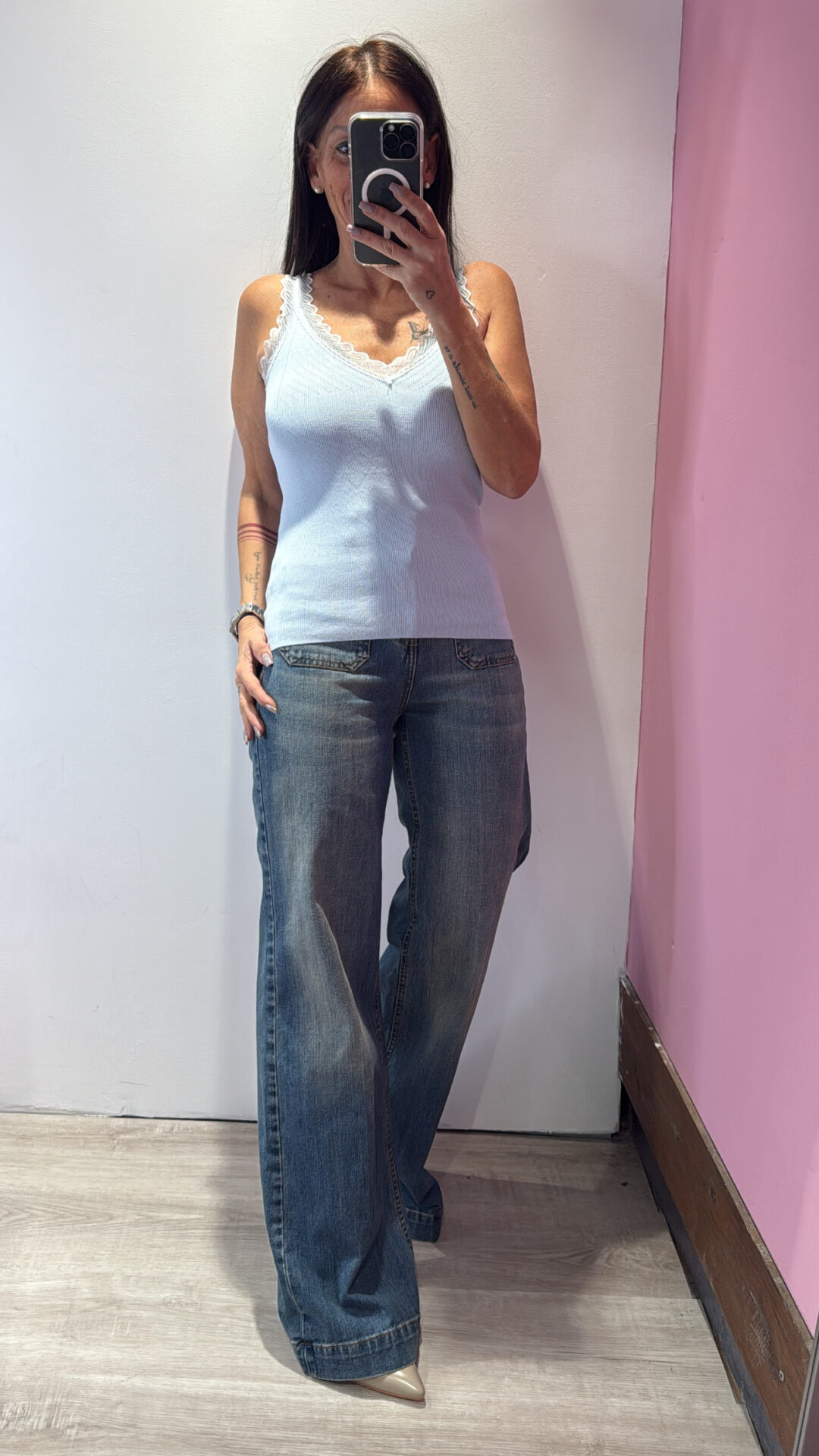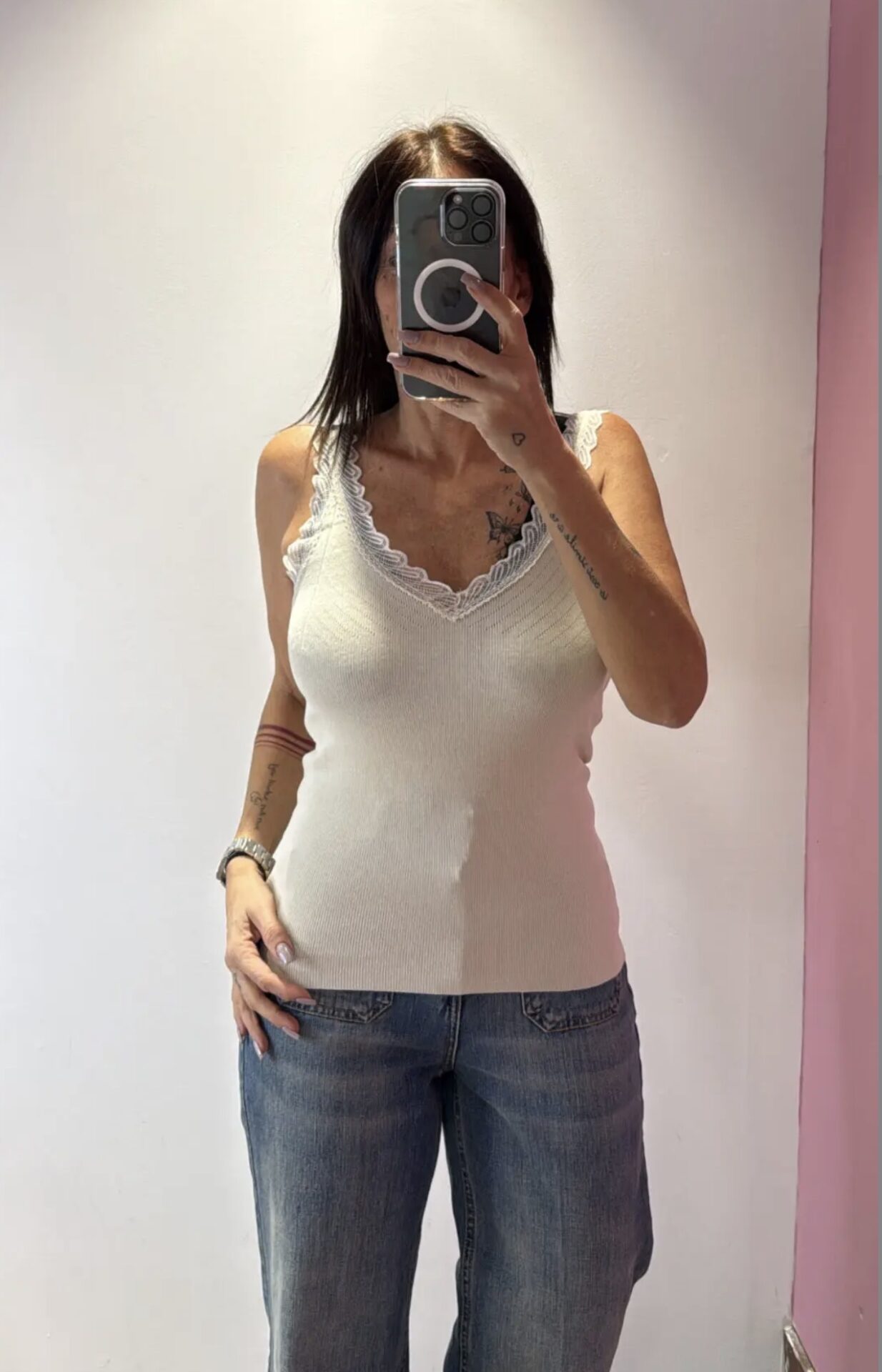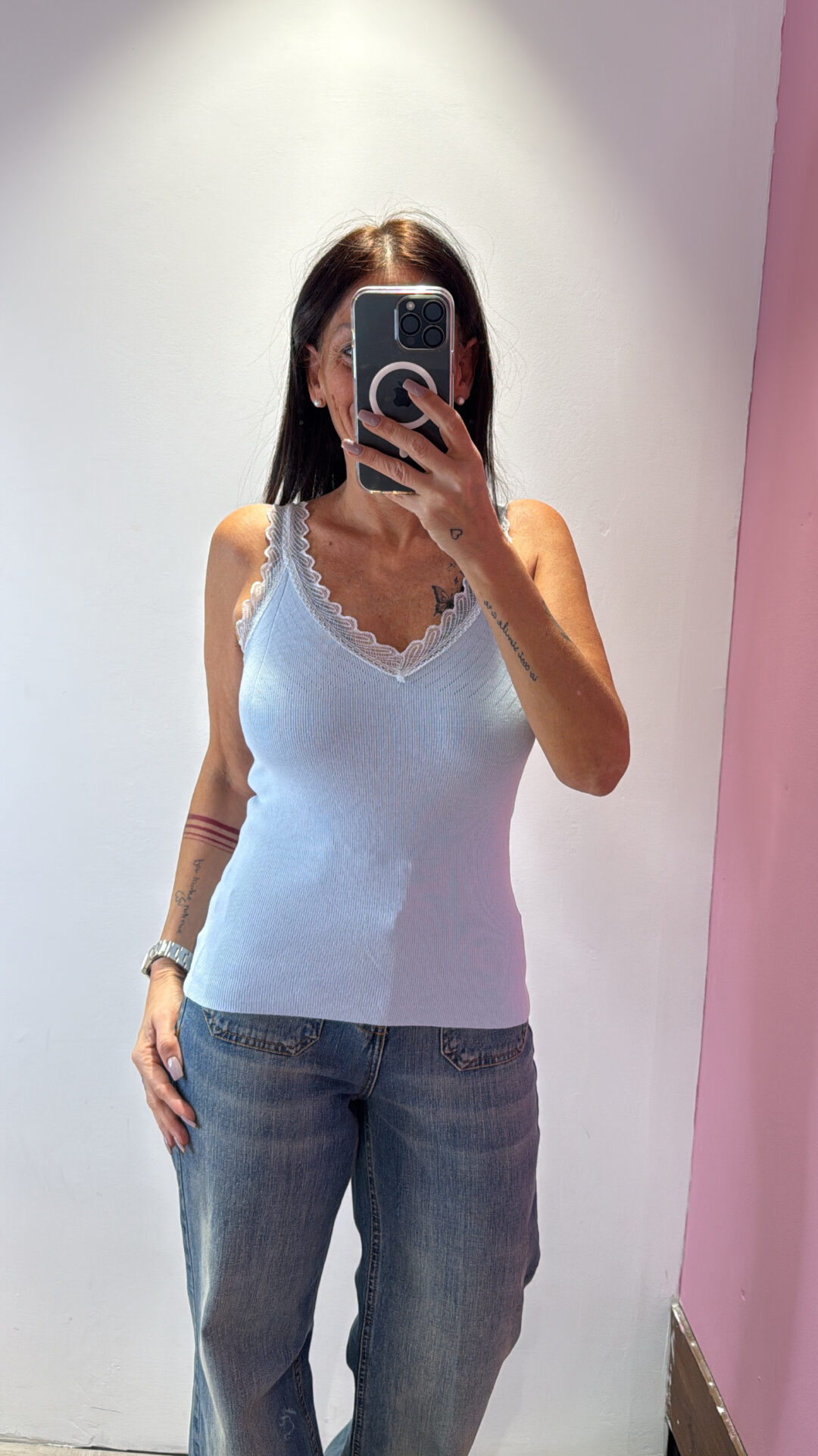 Canotta SUSYMIX a V con dettagli in pizzo a costine