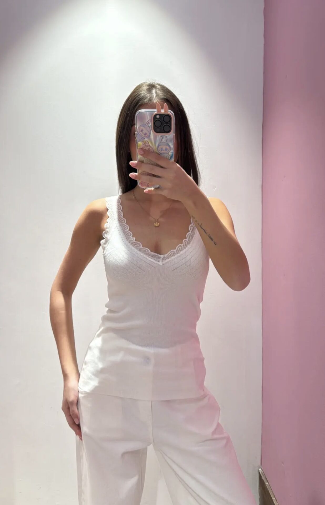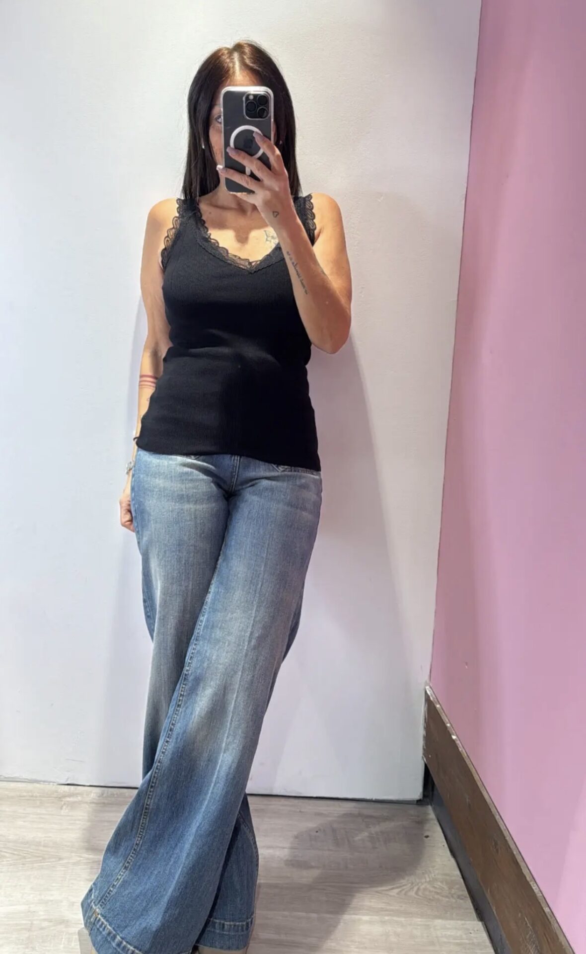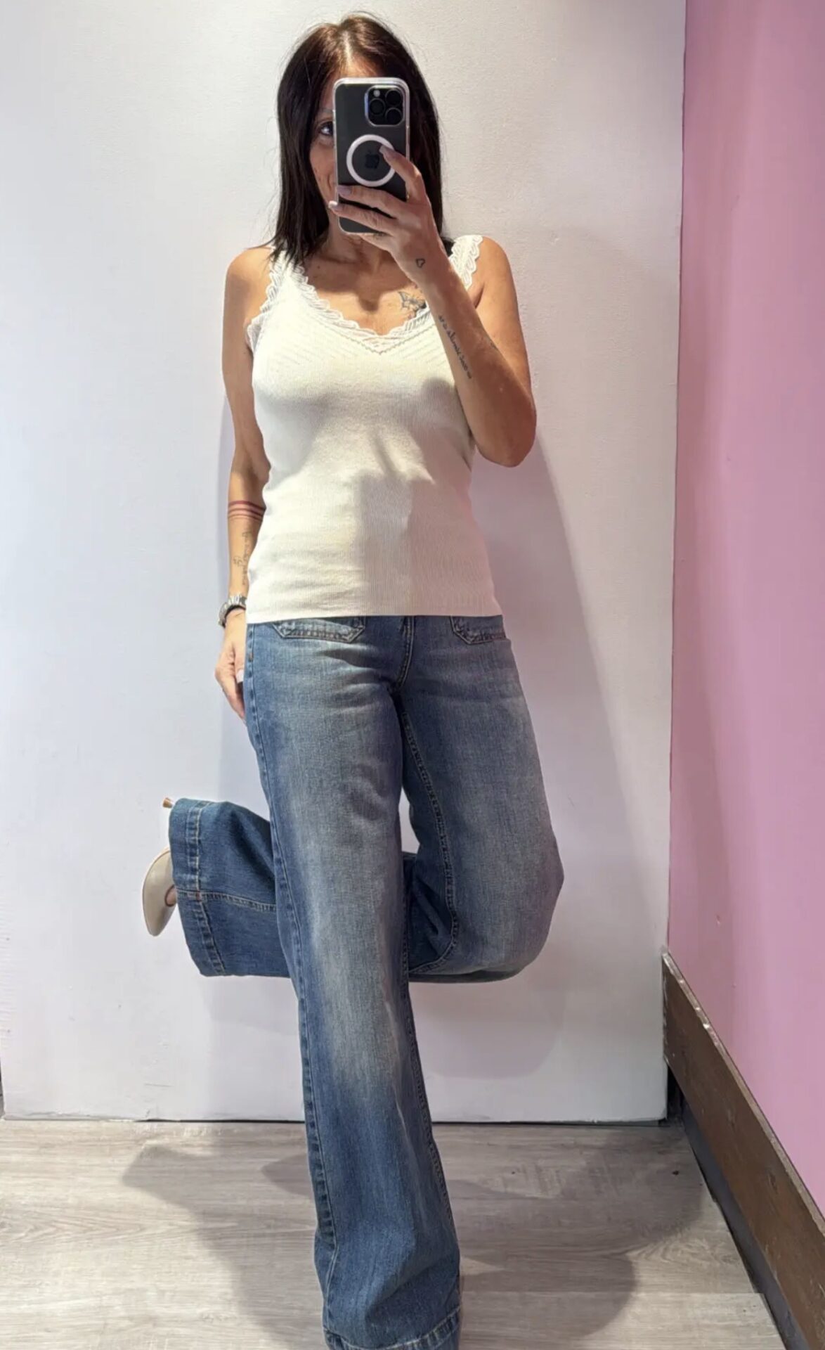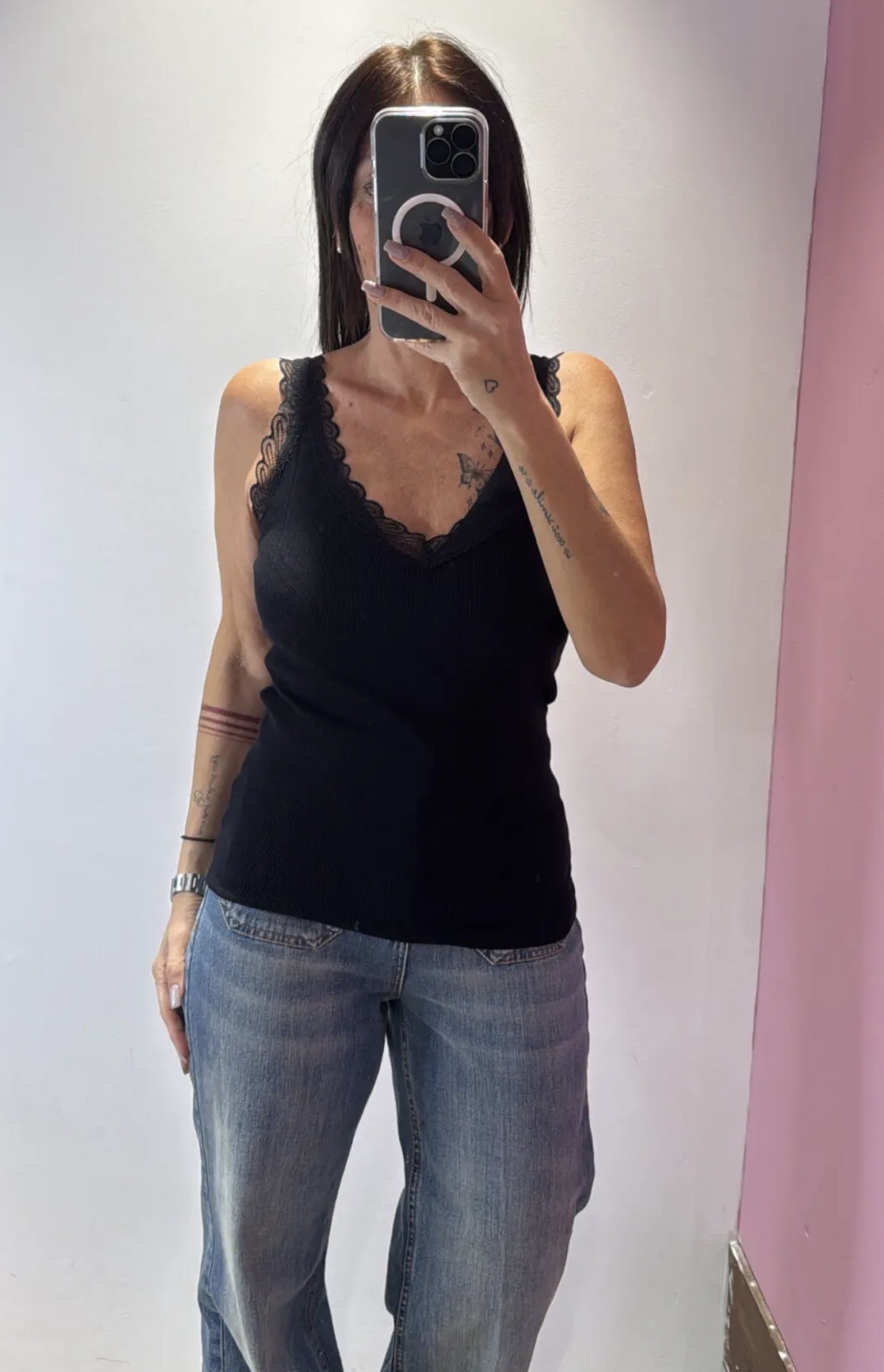 Canotta SUSYMIX a V con dettagli in pizzo a costine