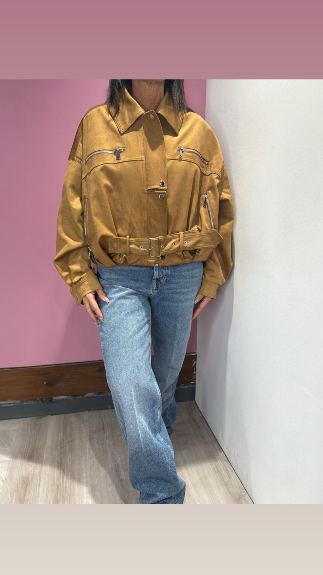 Chiodo/Bomber VICOLO con collo a rever in ecopelle scamosciata