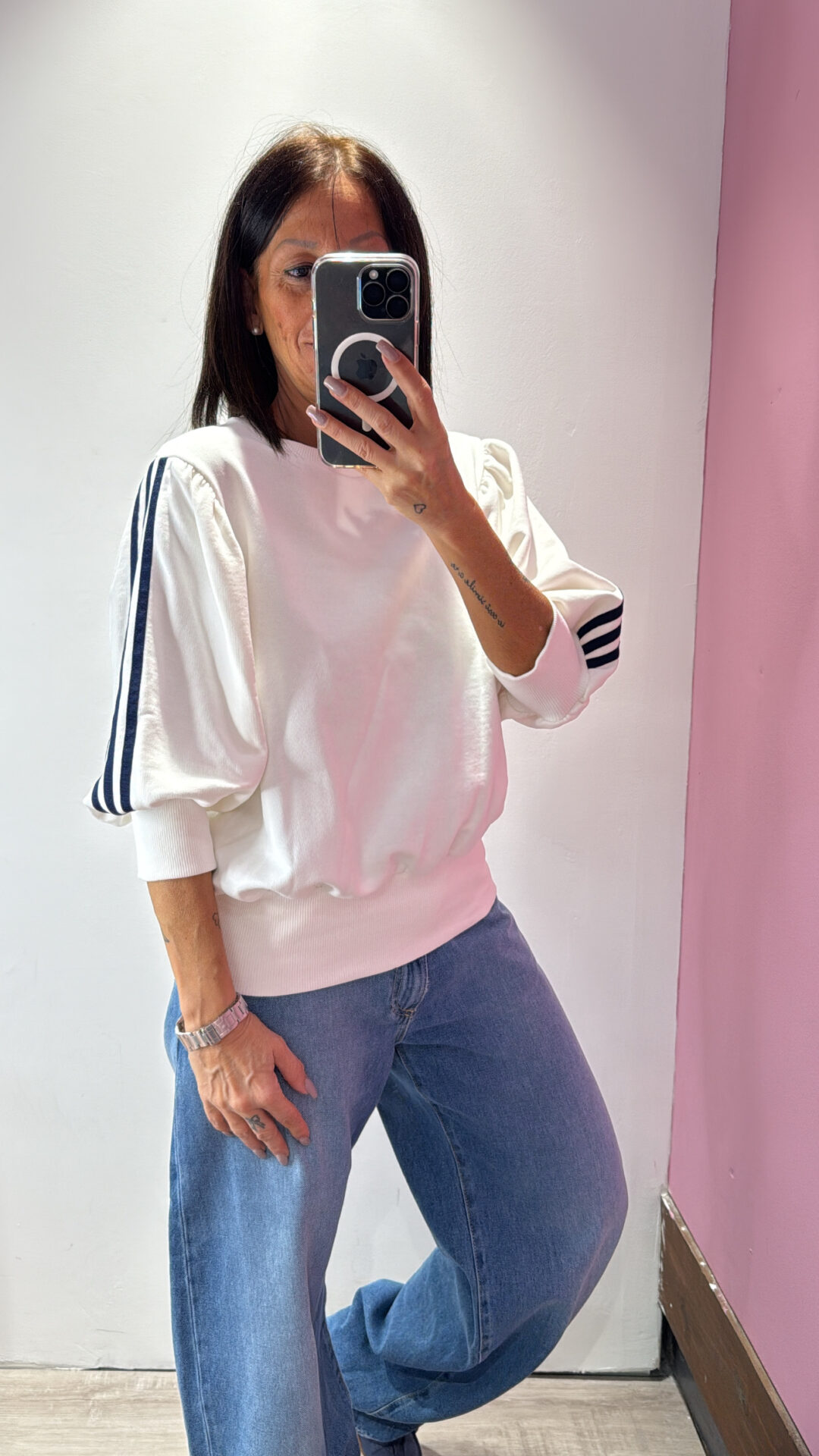 Felpa MOTEL in cotone garzato con bande laterali & maniche a 3/4