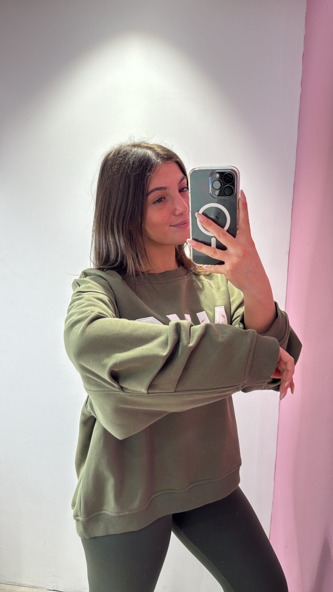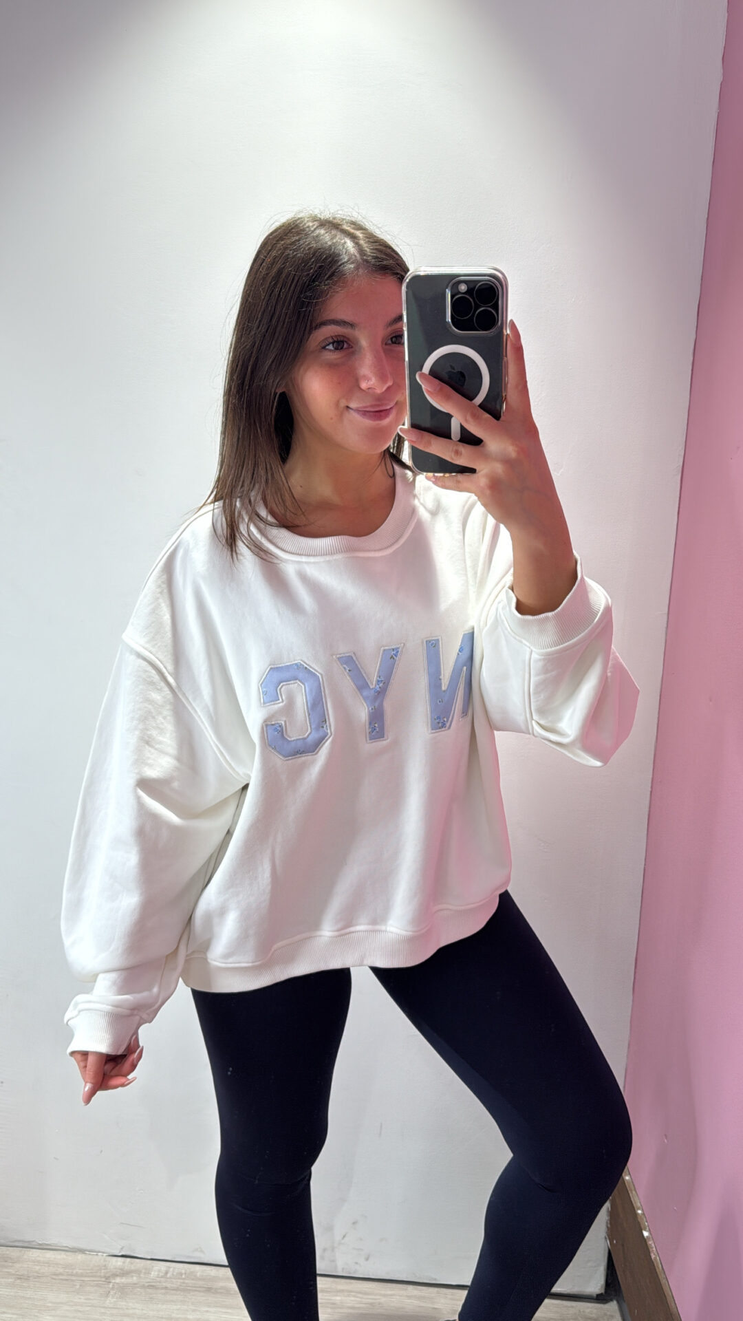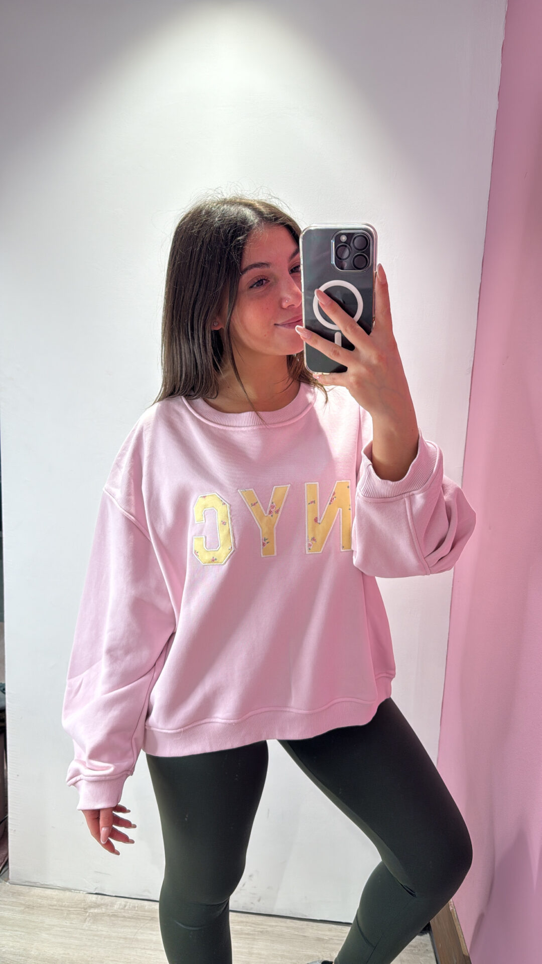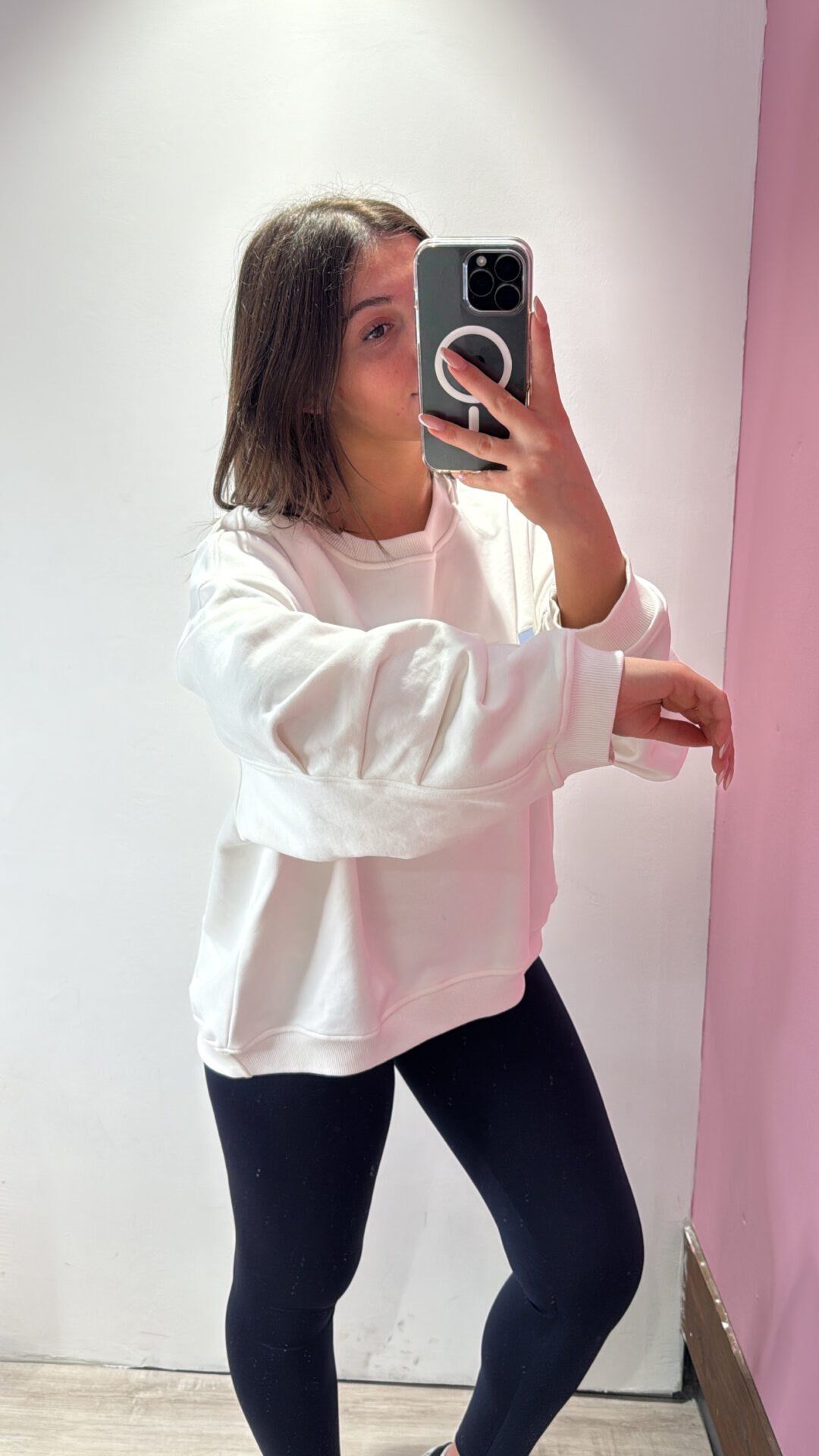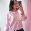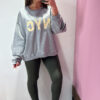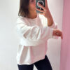 Felpa Over VICOLO girocollo in cotone garzato con arricciatura sulla manica, spalla scesa.