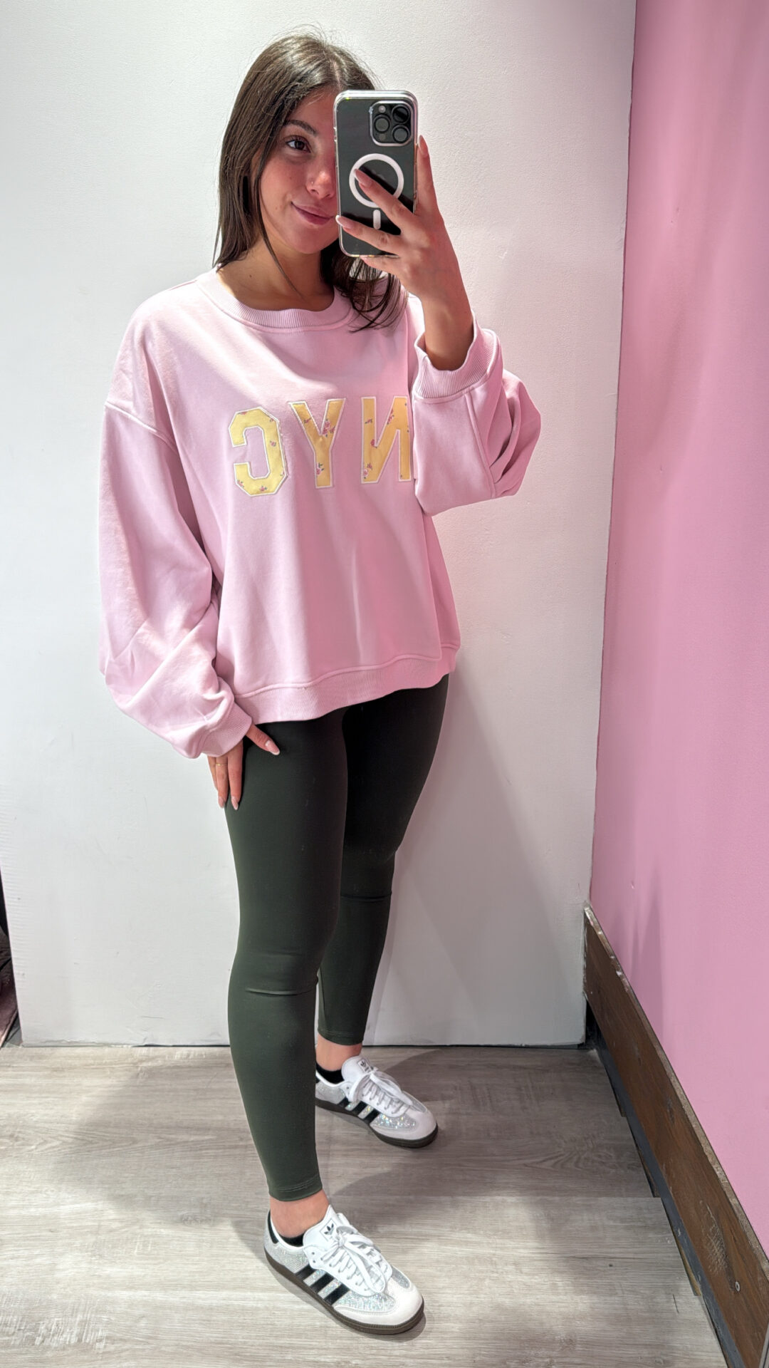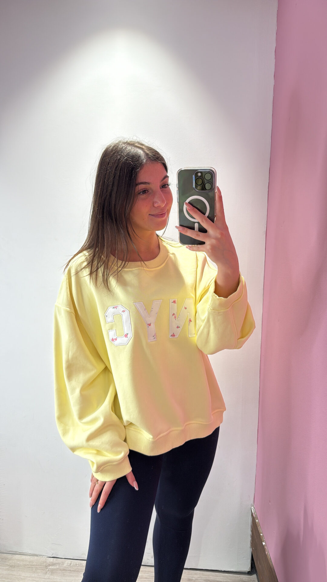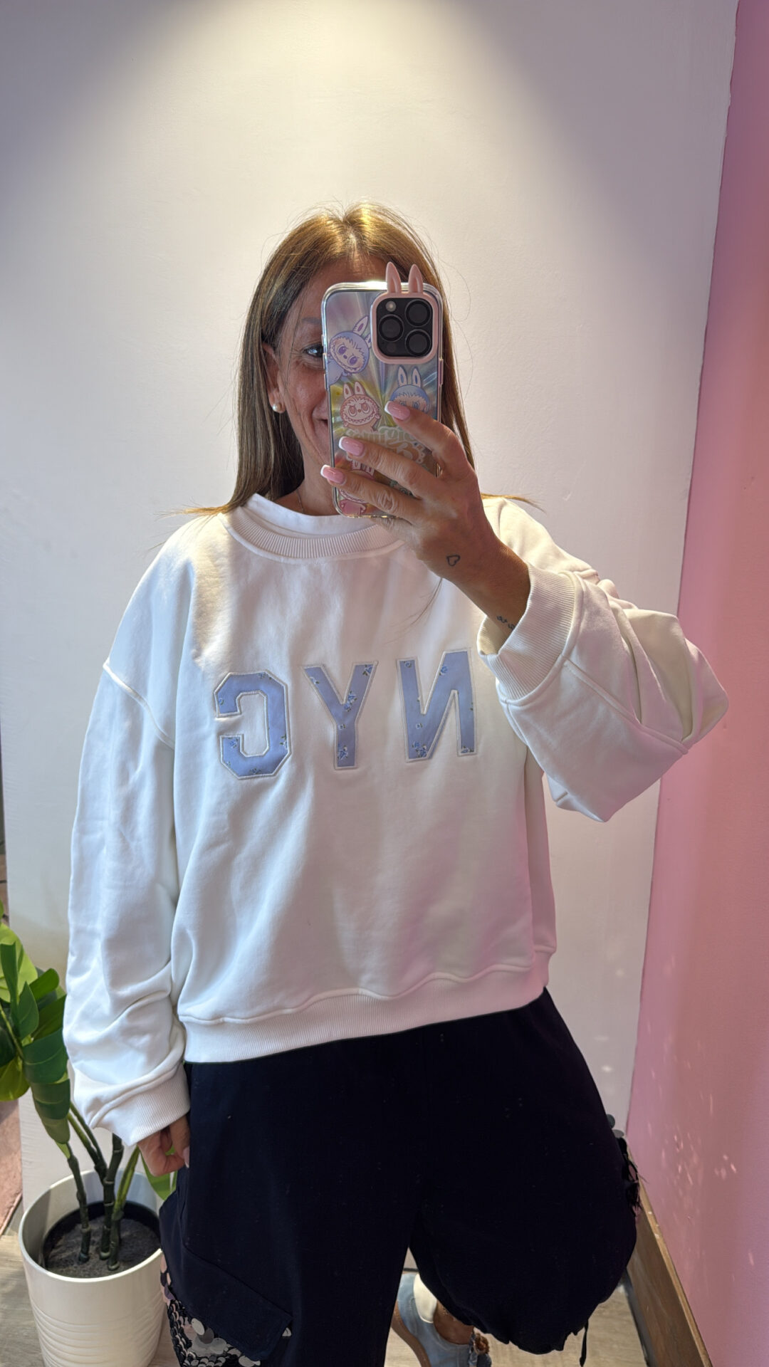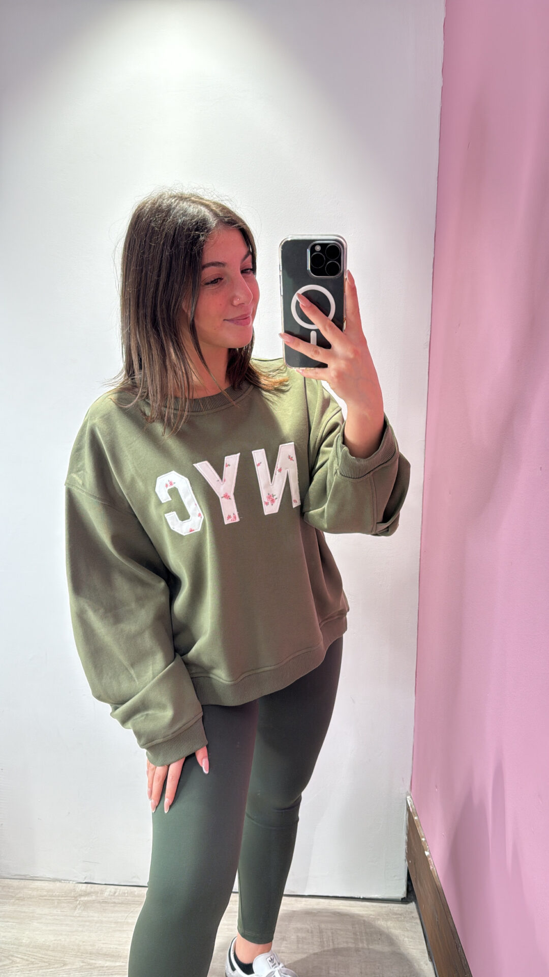 Felpa Over VICOLO girocollo in cotone garzato con arricciatura sulla manica, spalla scesa.
