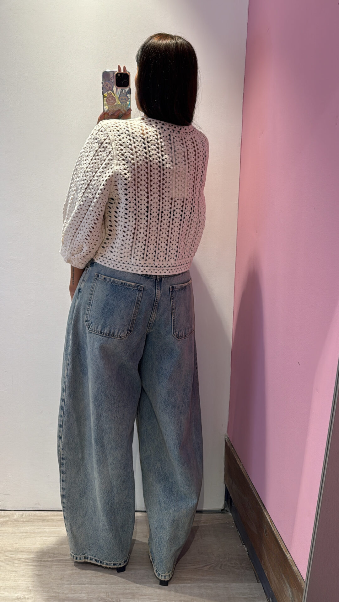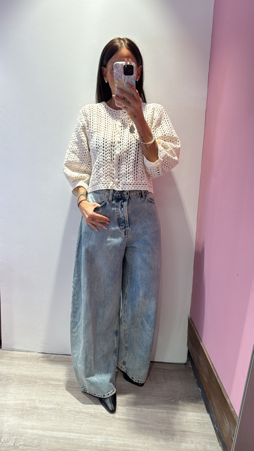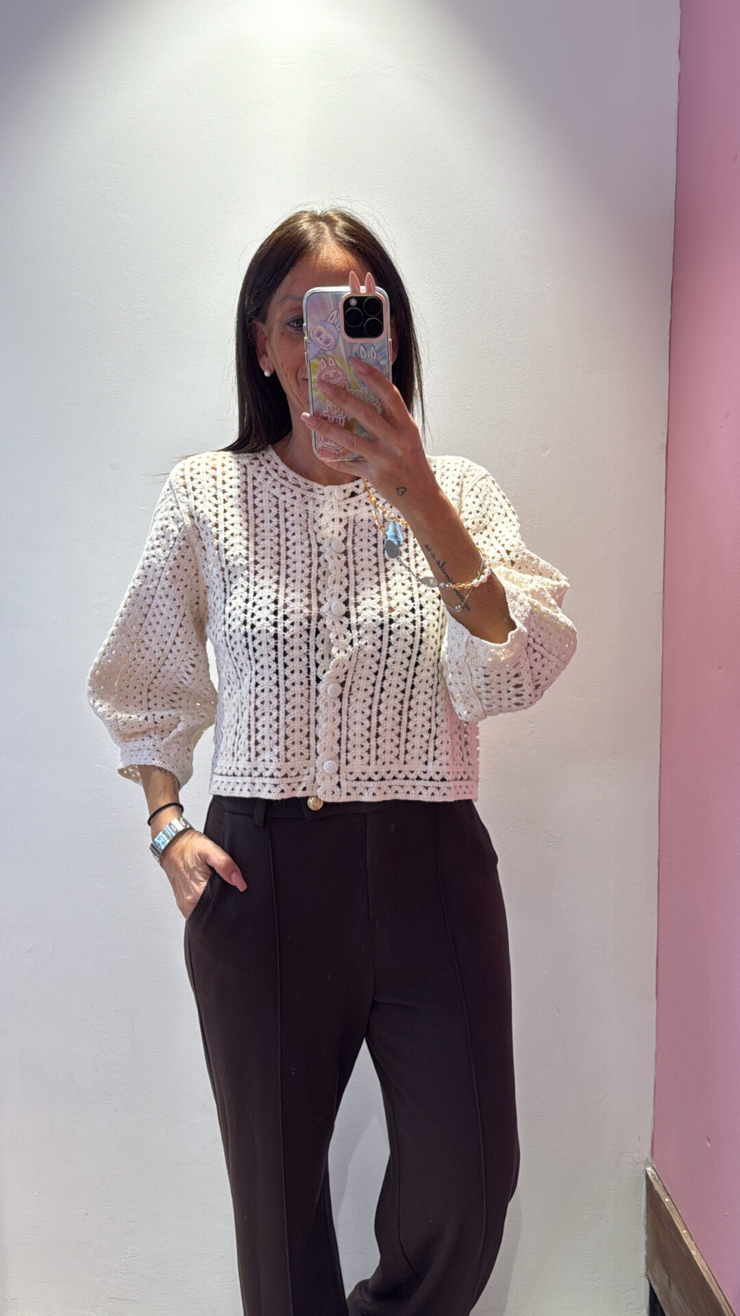 Giacchina MOTEL girocollo in macramè con manica al gomito