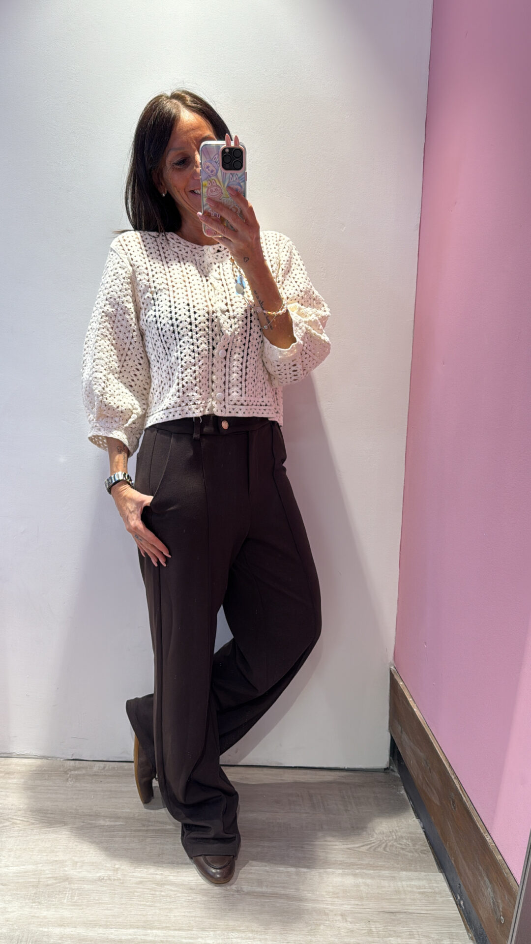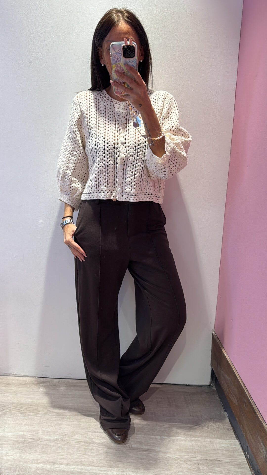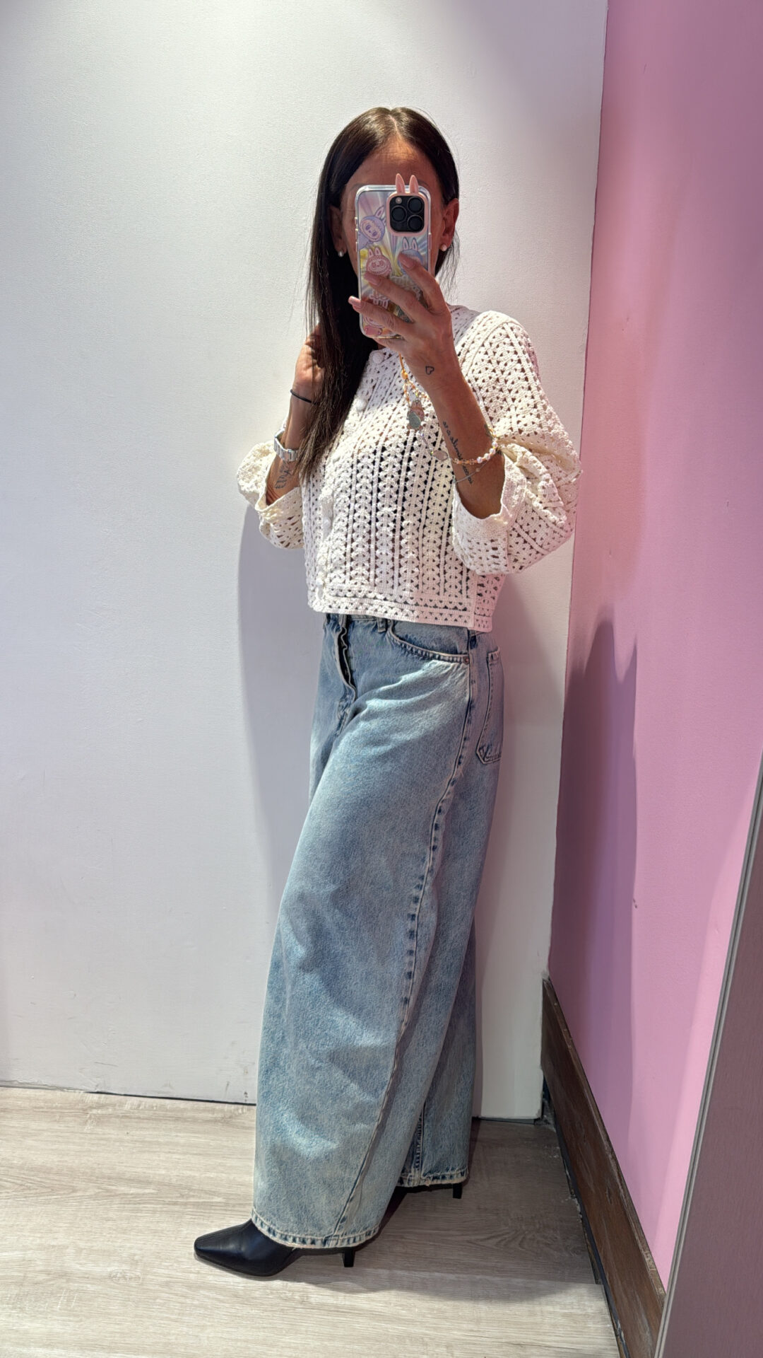 Giacchina MOTEL girocollo in macramè con manica al gomito