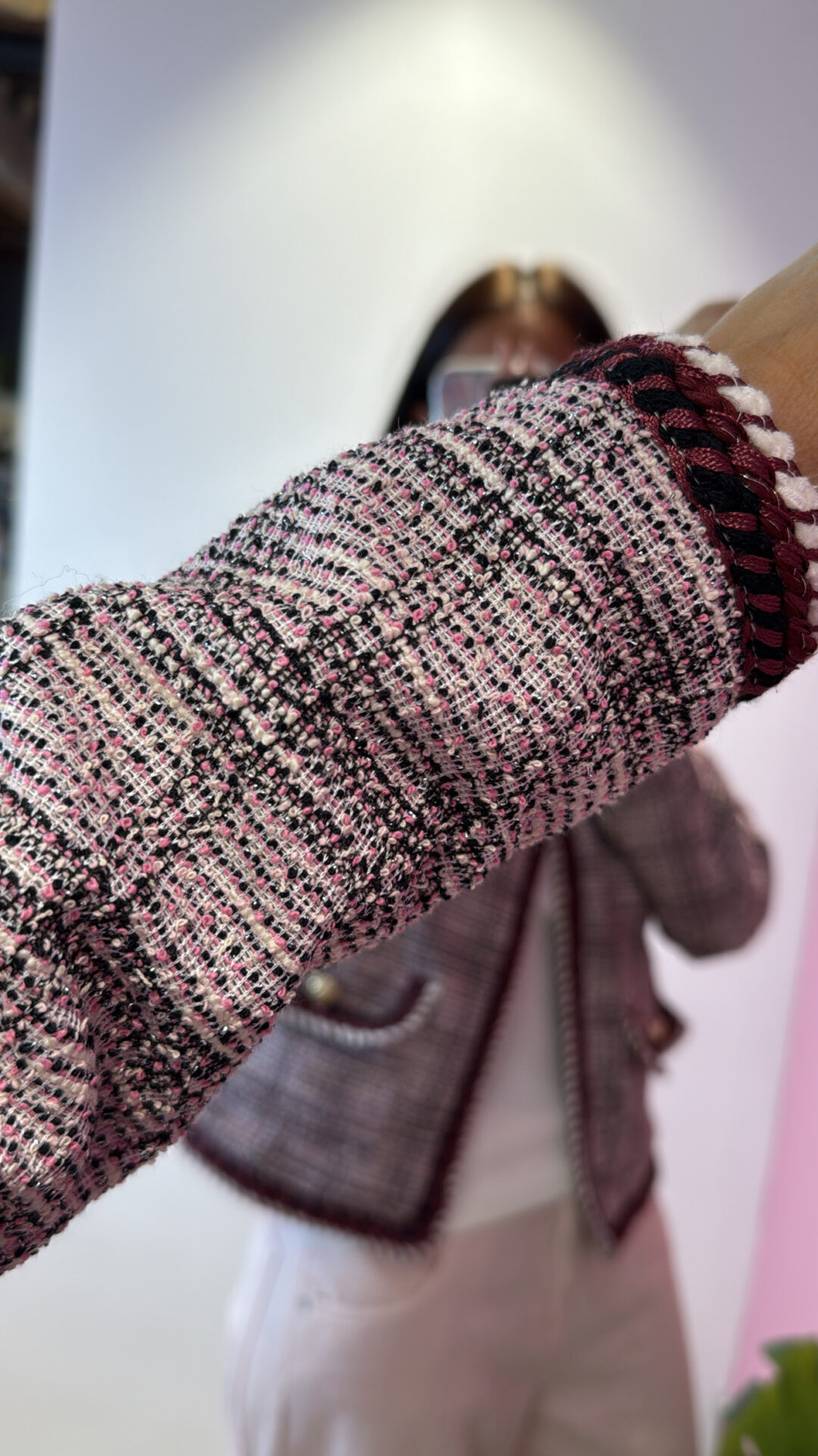 Giacchina VICOLO girocollo aperta con tasche frontali & bottoni gioiello dorati, con dettagli in lurex
