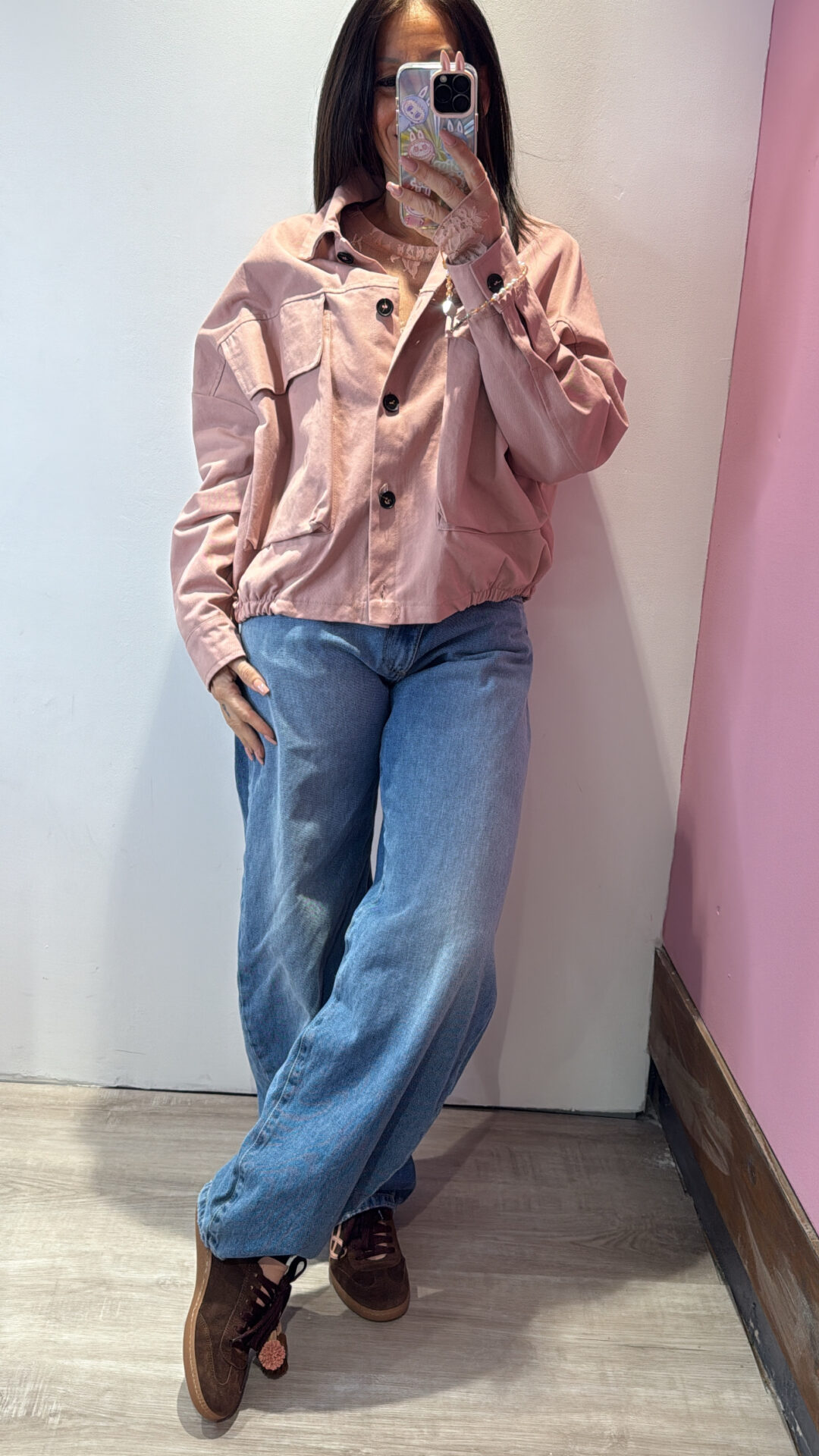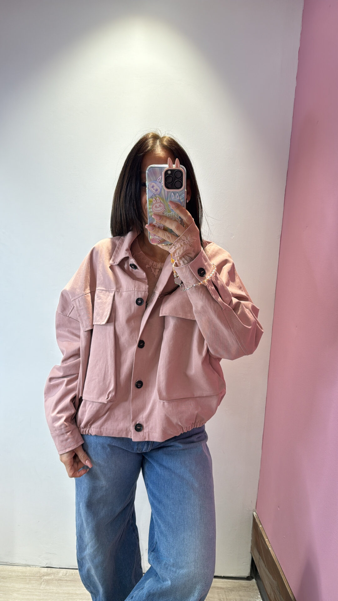 Giubbino MOTEL con collo a rever & tasconi frontali, elasticizzato sul bordo