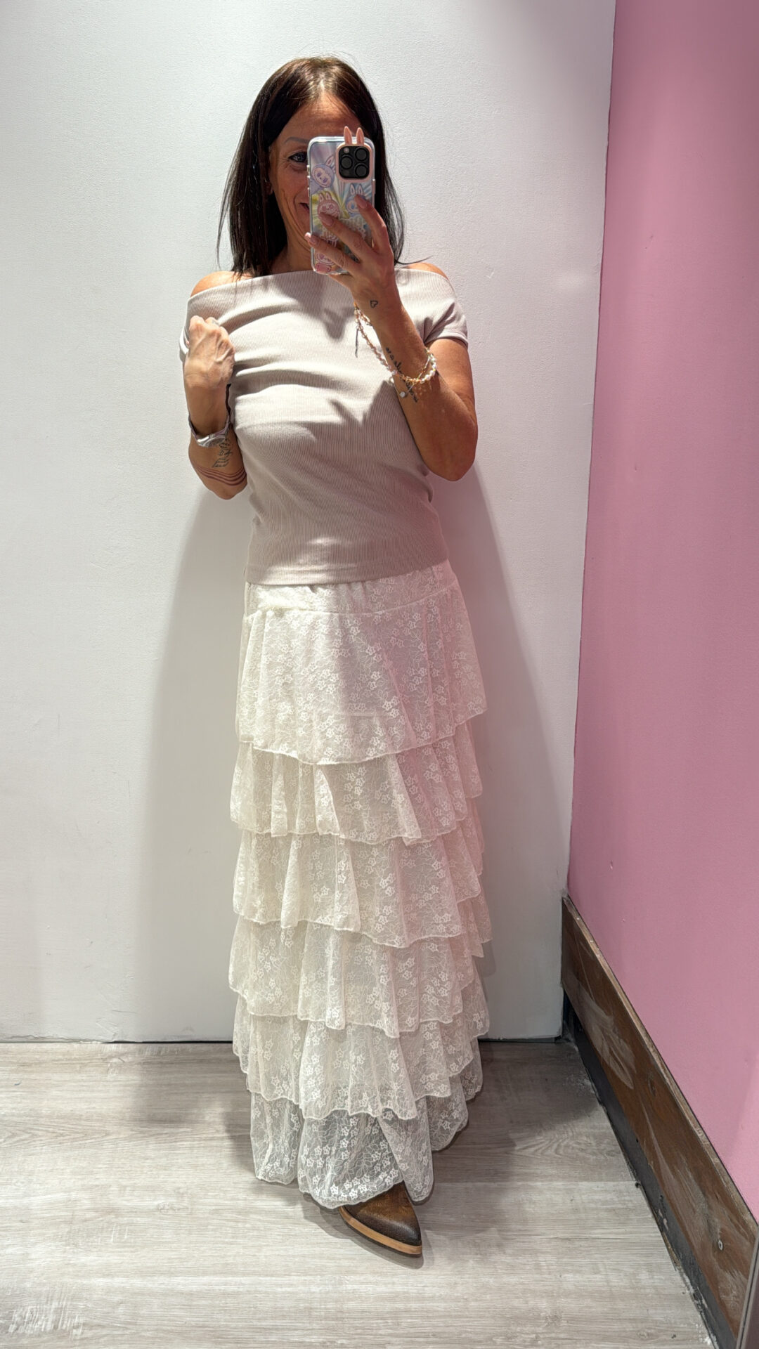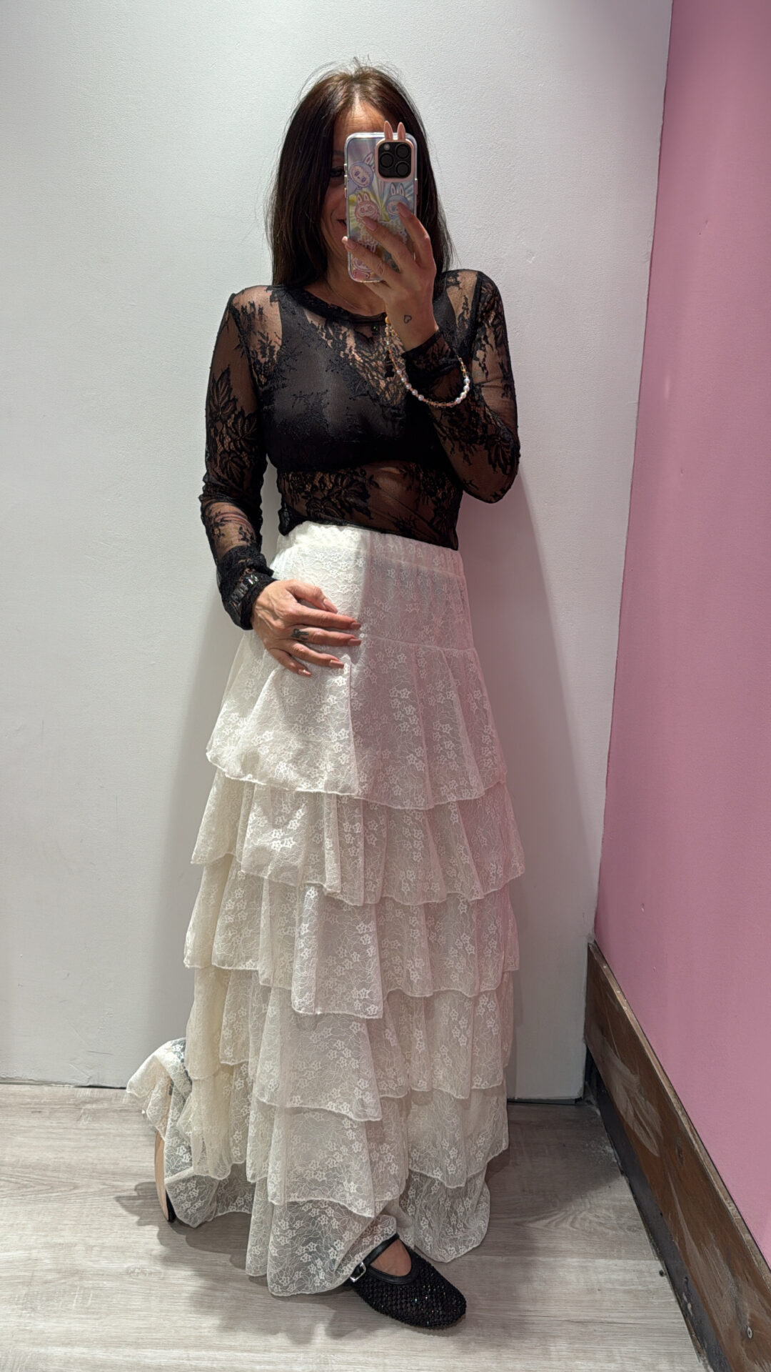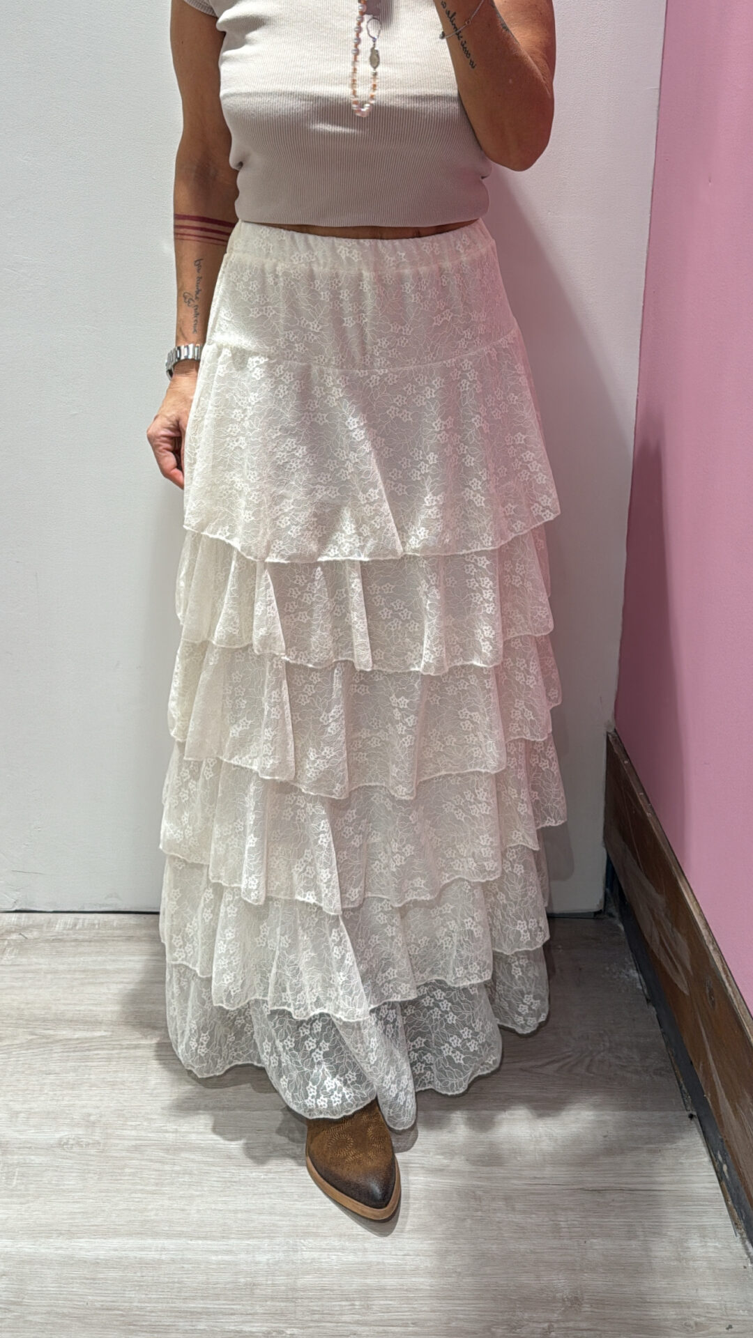Gonna Lunga VICOLO elasticizzata in vita , in pizzo a balze