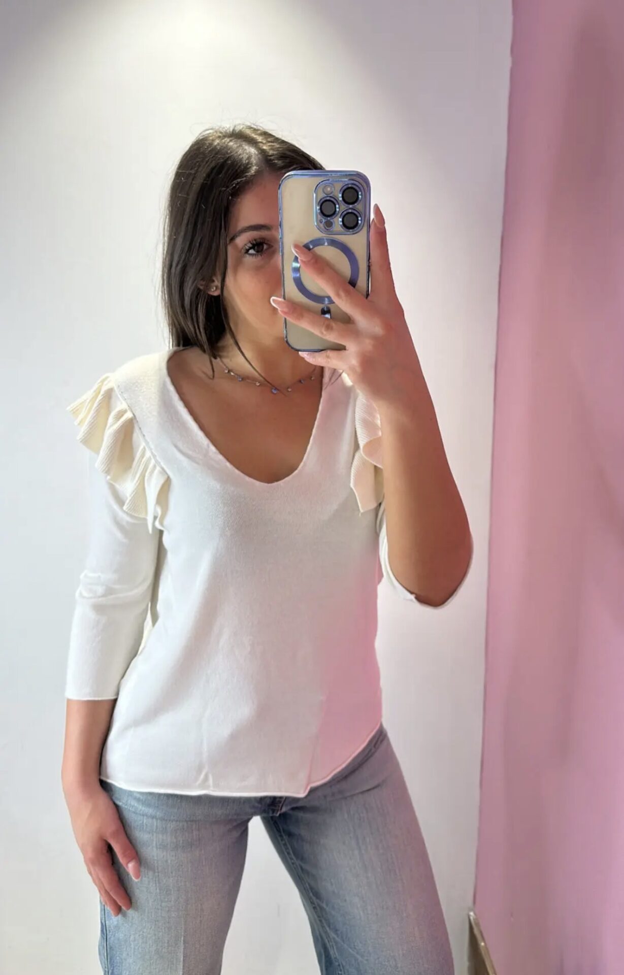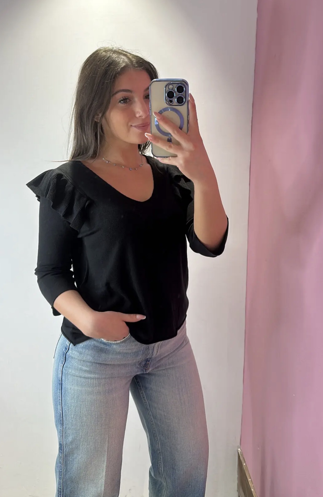 Maglia VICOLO con balze sulle spalle & scollo a V