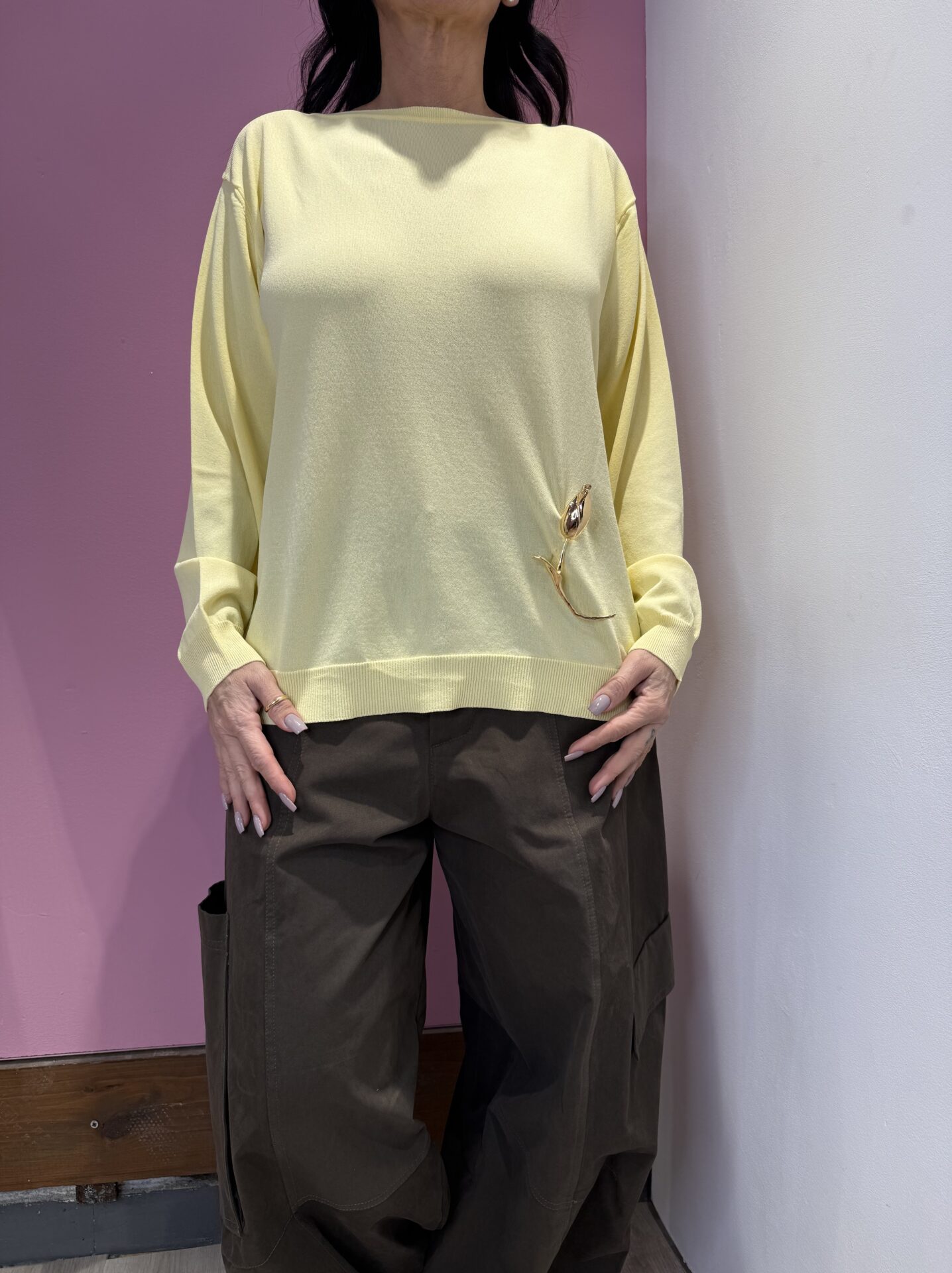 Maglia VICOLO girocollo con spilla dorata a tulipano