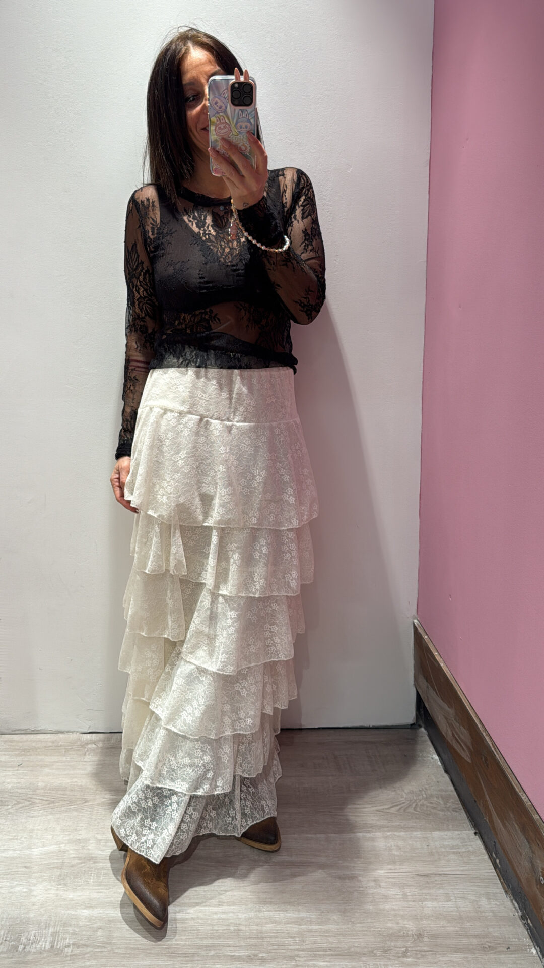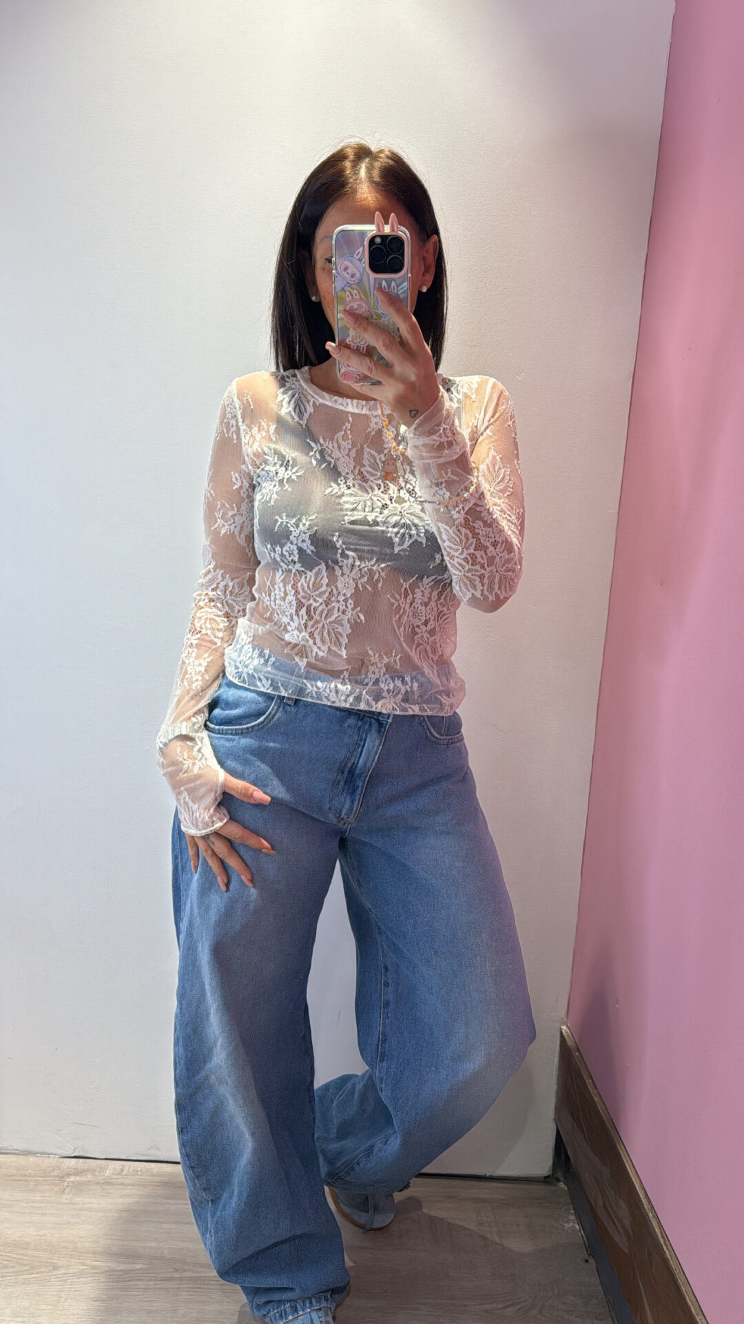 Maglia VICOLO girocollo in pizzo a manicotto