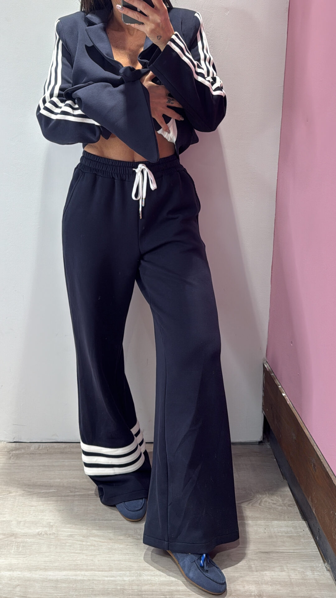 Pantalone MOTEL con coulisse in vita & bande laterali in cotone garzato elasticizzato