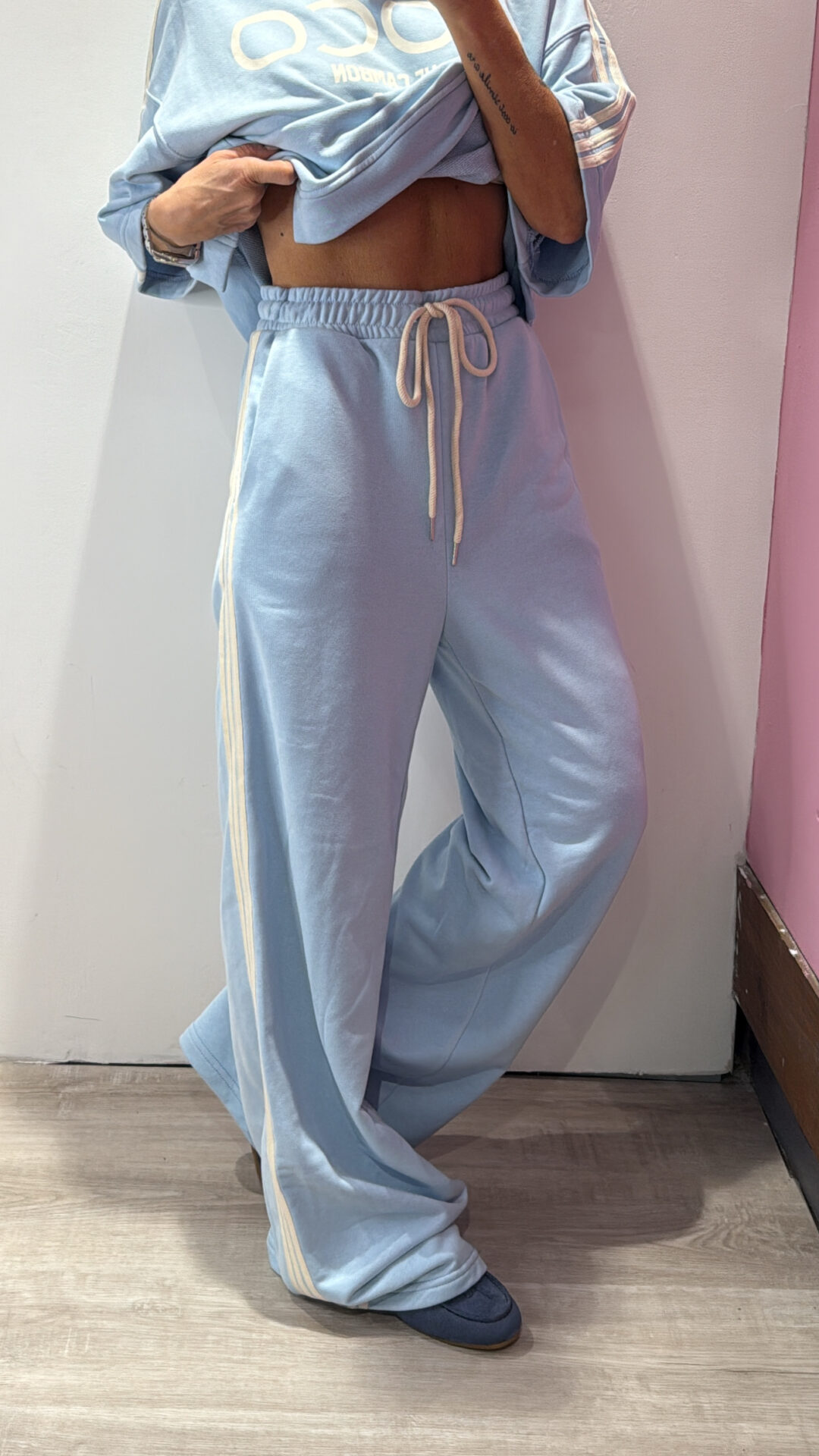 Pantalone MOTEL con culisse & bande laterali, CELESTE