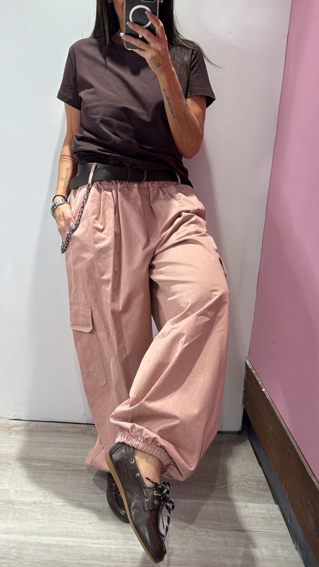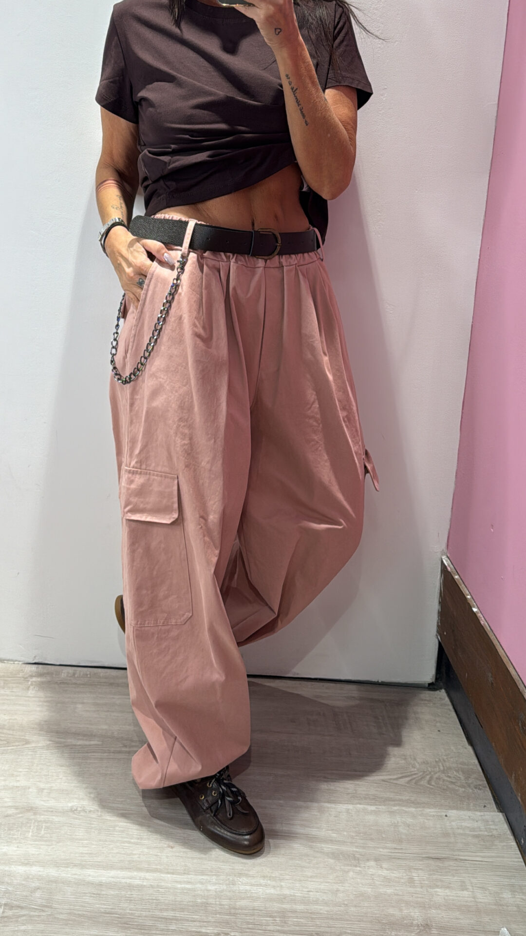 Pantalone MOTEL elasticizzato in vita, barrel & cargo