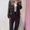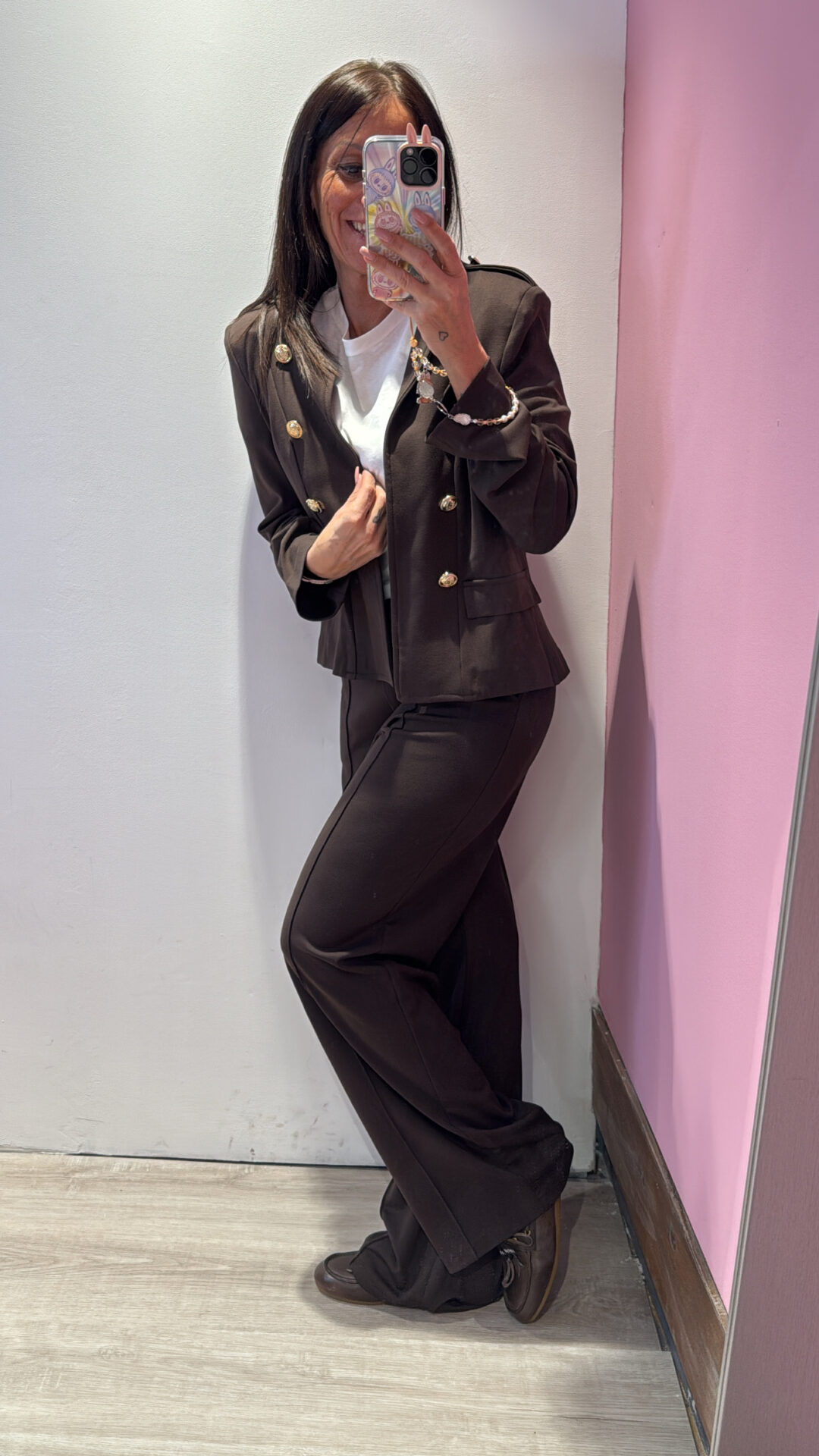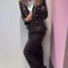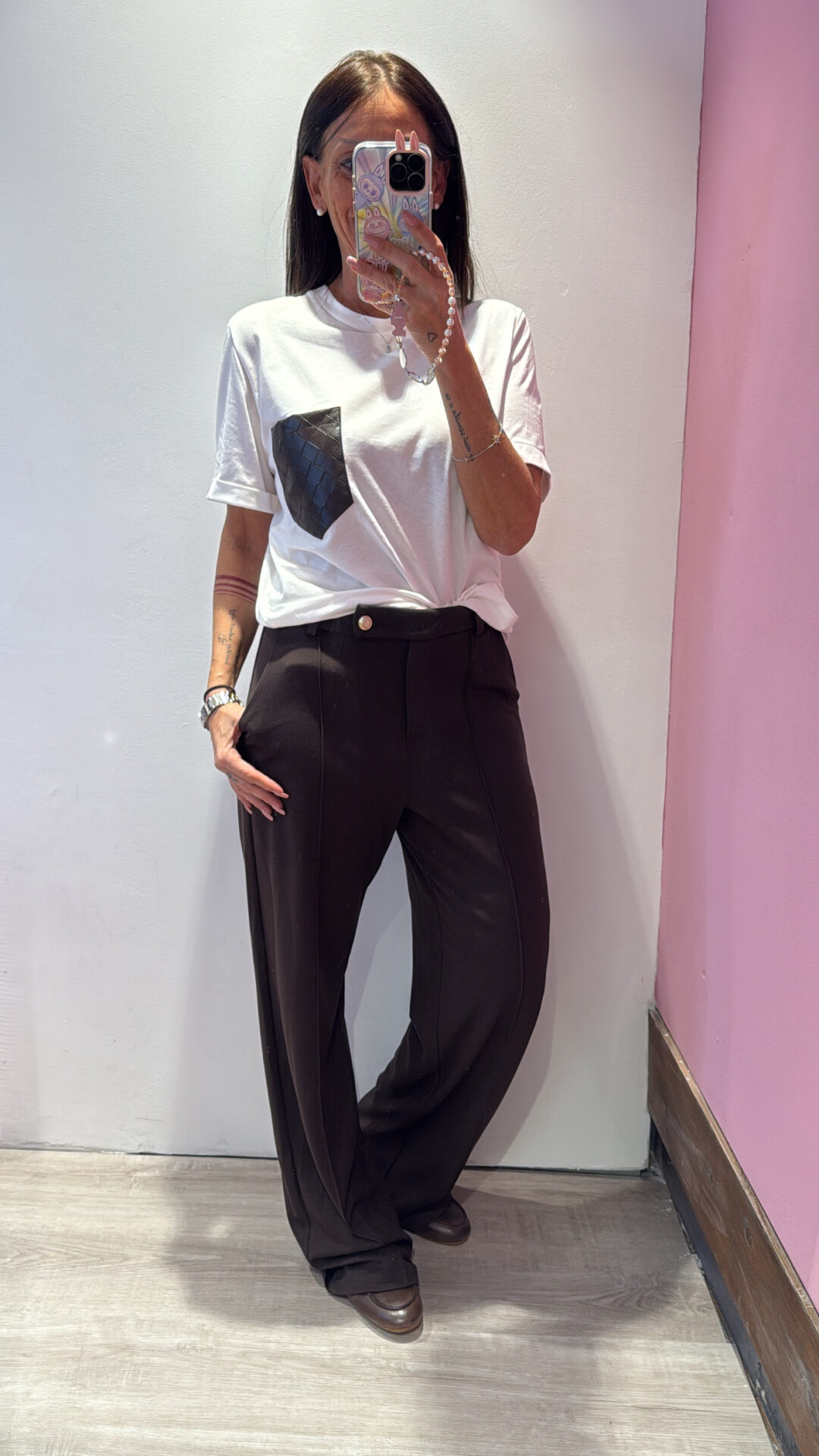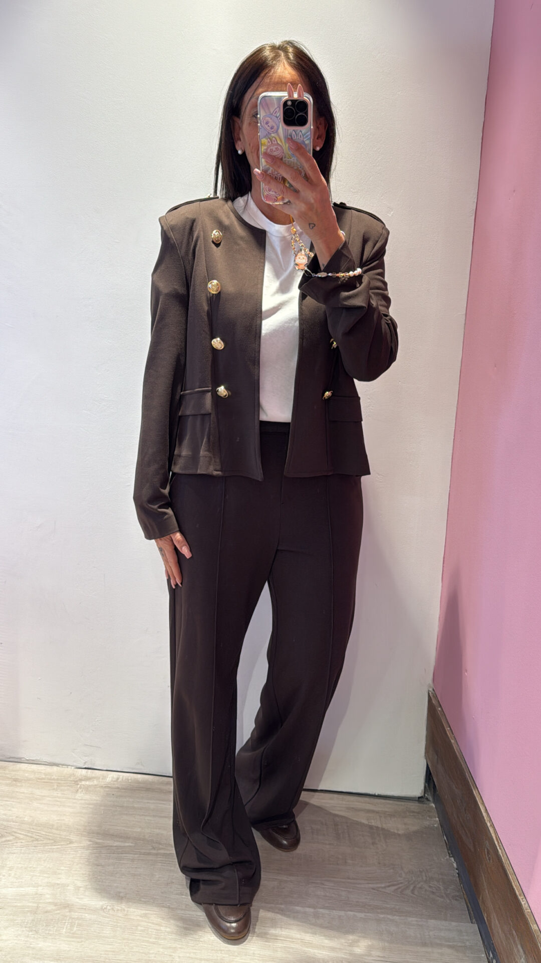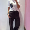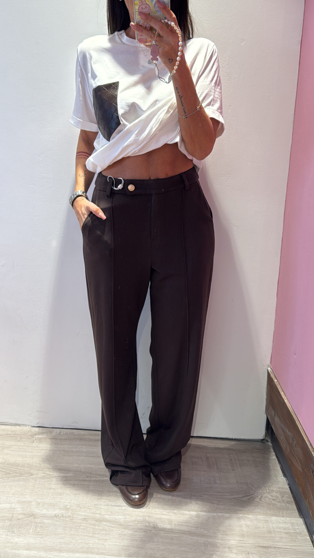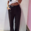 Pantalone MOTEL elasticizzato con gamba dritta , impuntura frontale & con bottone gioiello