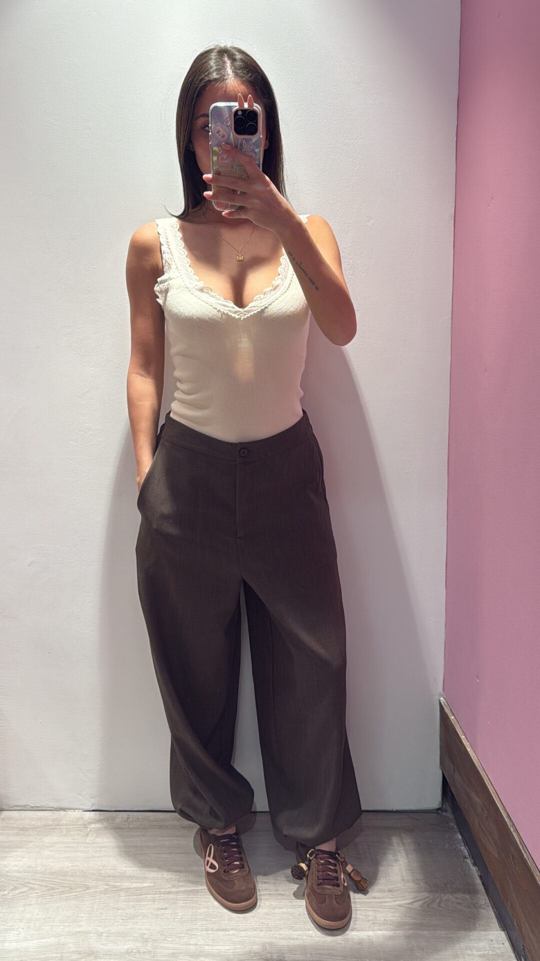 Pantalone VICOLO con polsino leggermente elasticizzato con coulisse sul retro