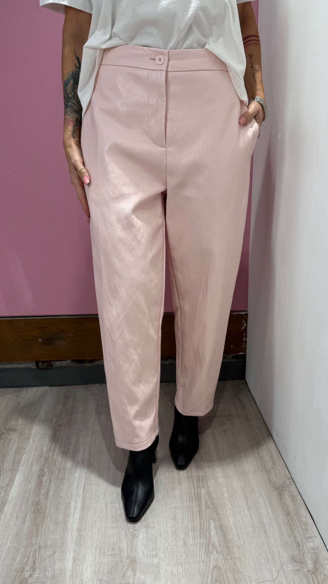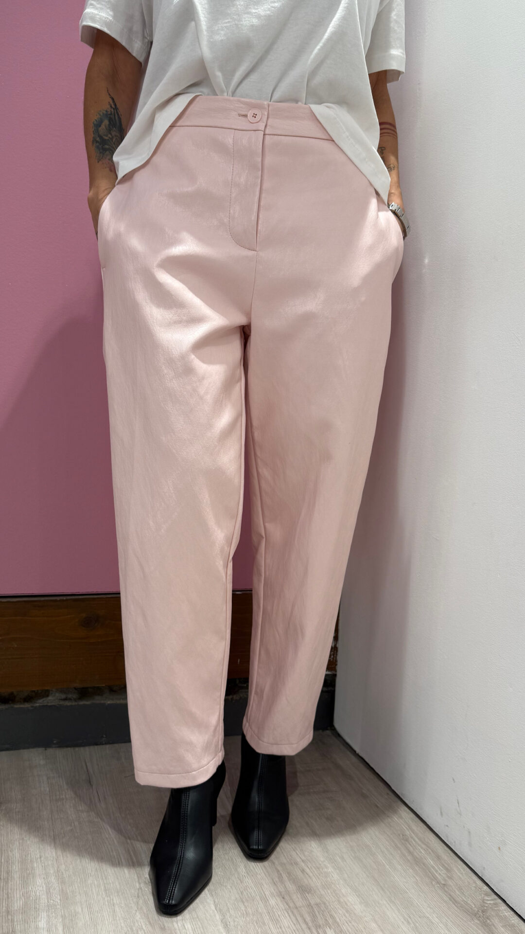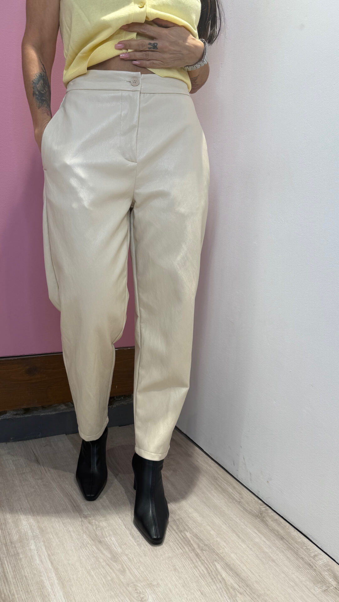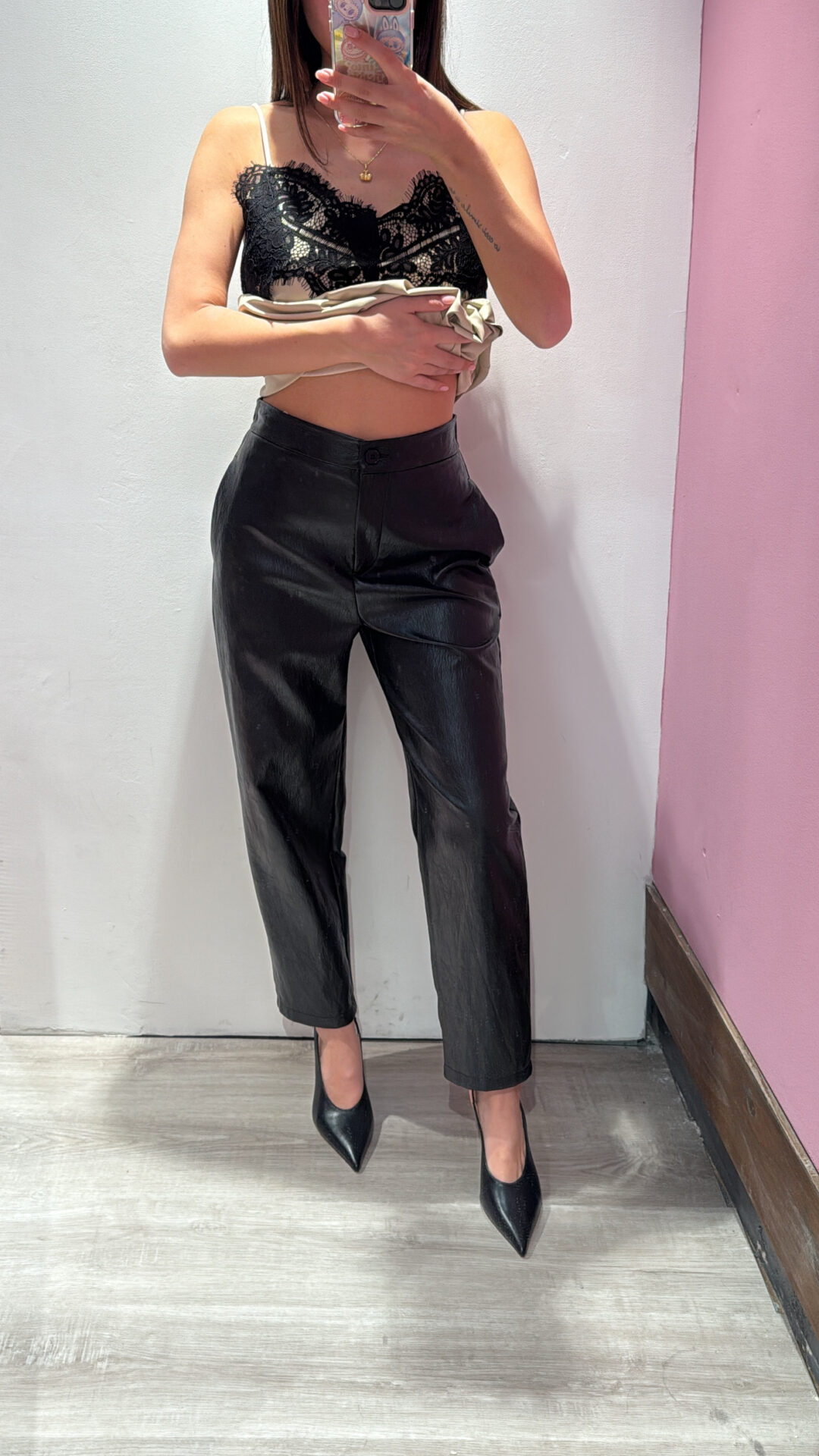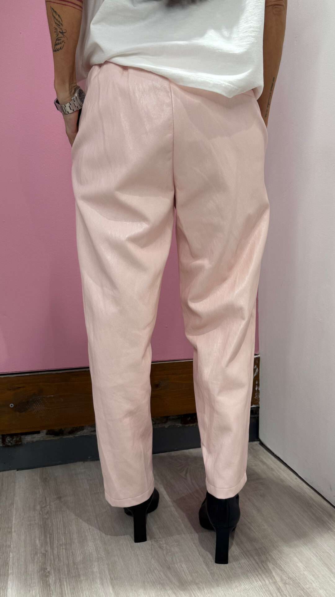 Pantalone VICOLO in ecopelle con effetto “graffiato” , carrot fit & elasticizzato sul retro