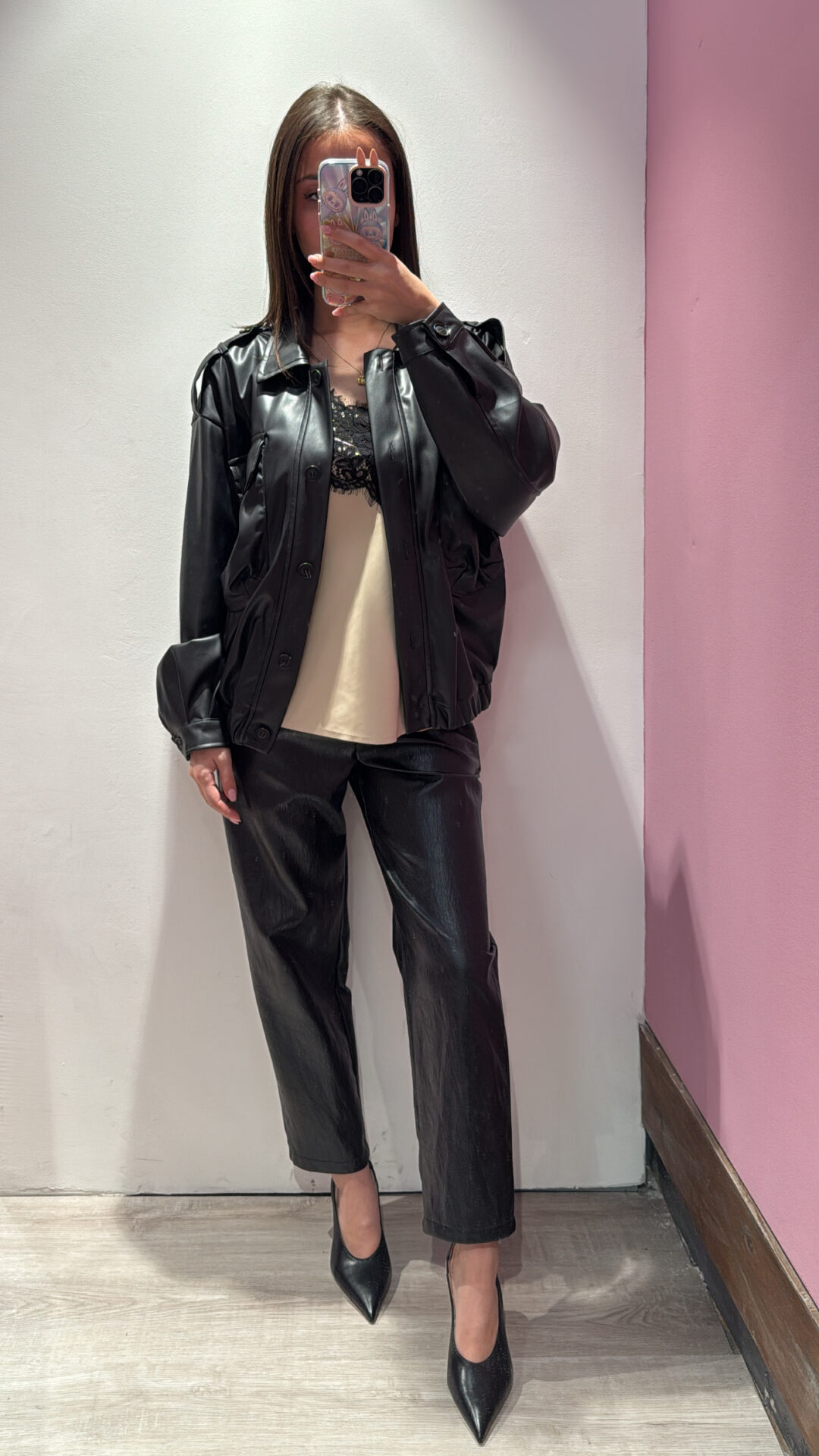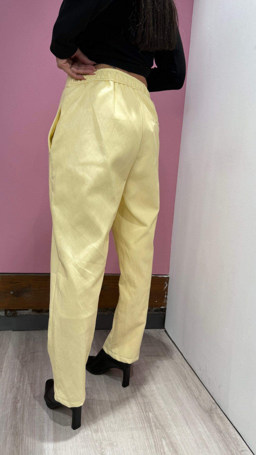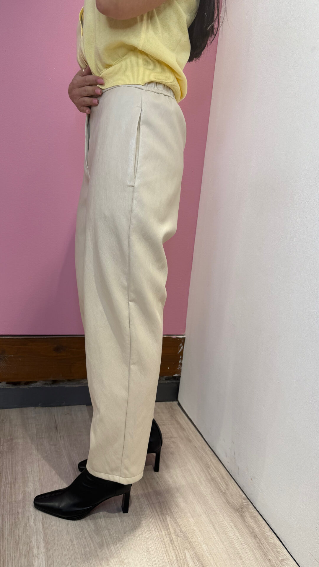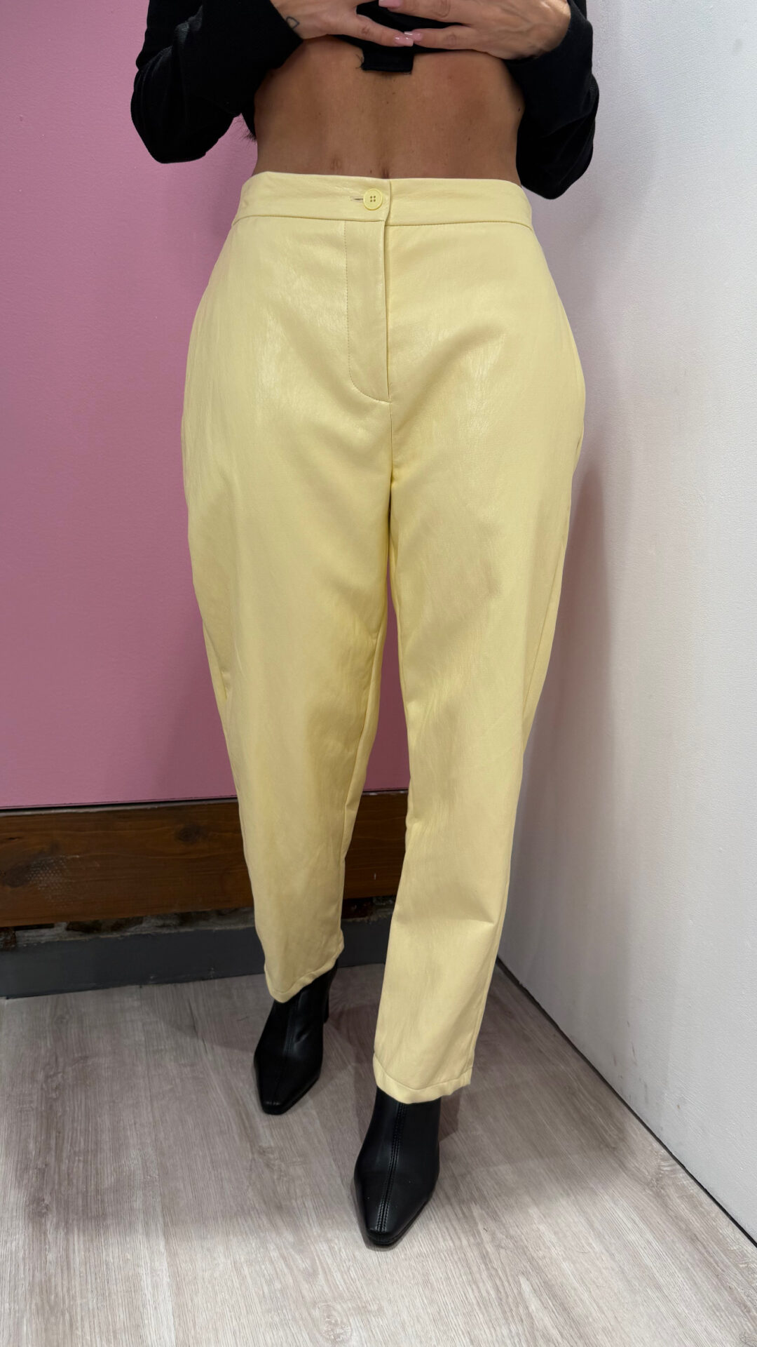 Pantalone VICOLO in ecopelle con effetto “graffiato” , carrot fit & elasticizzato sul retro