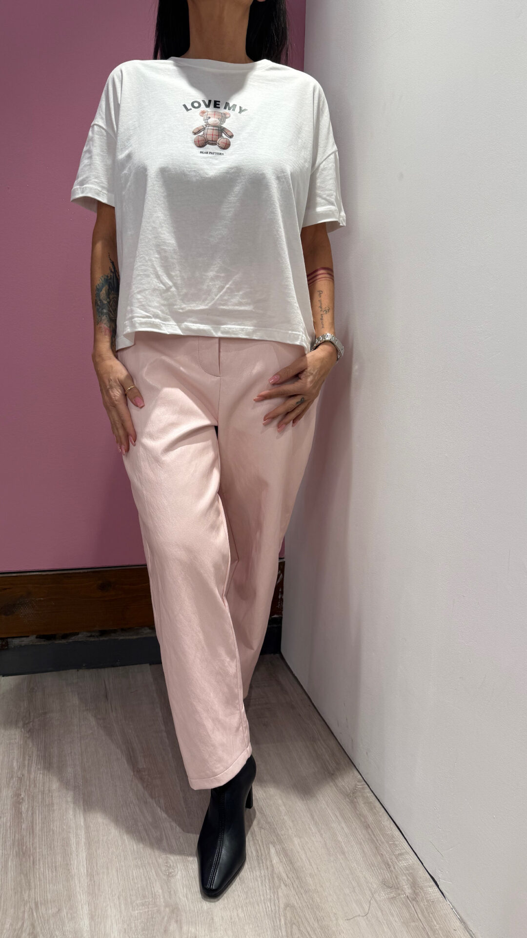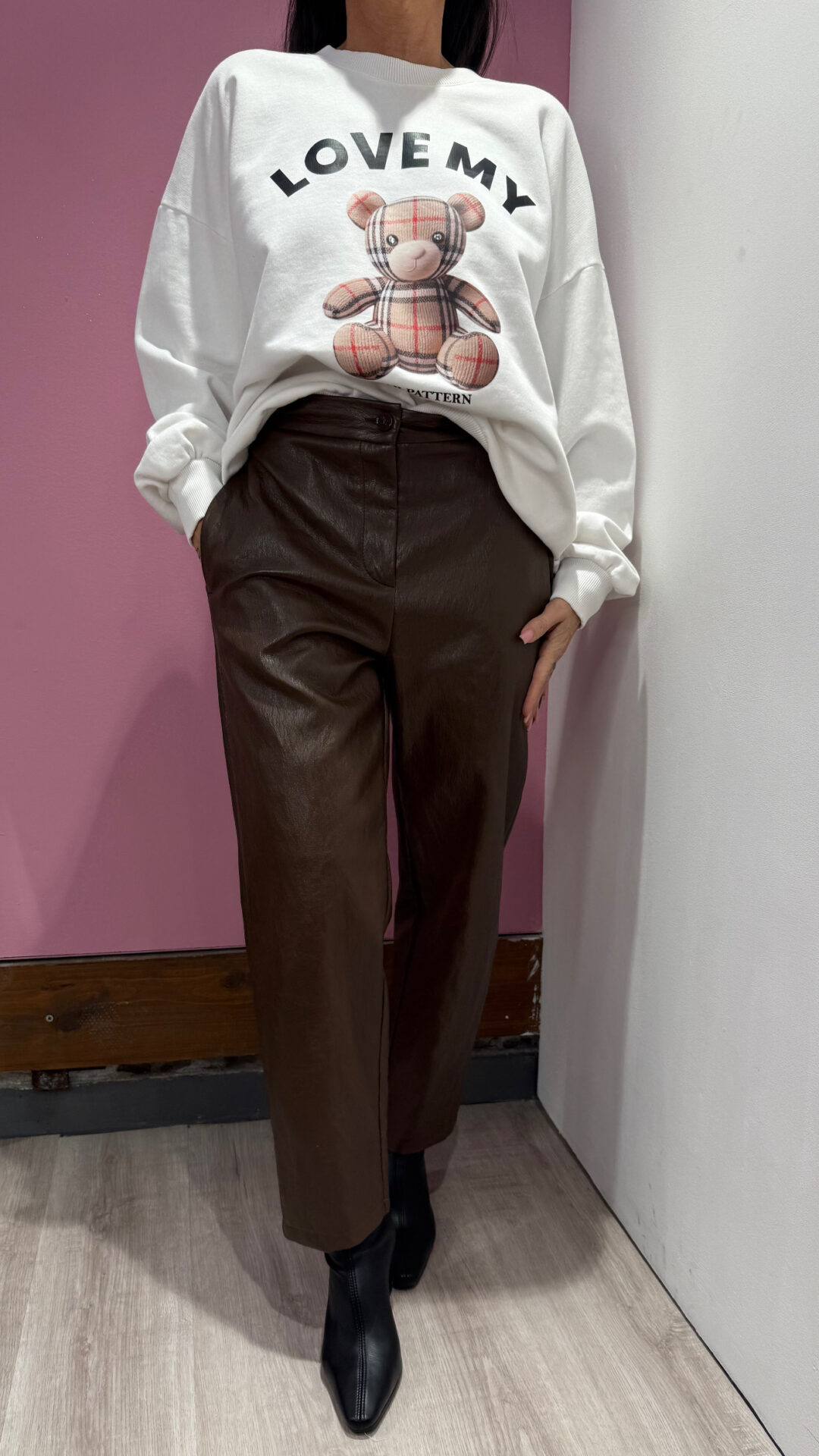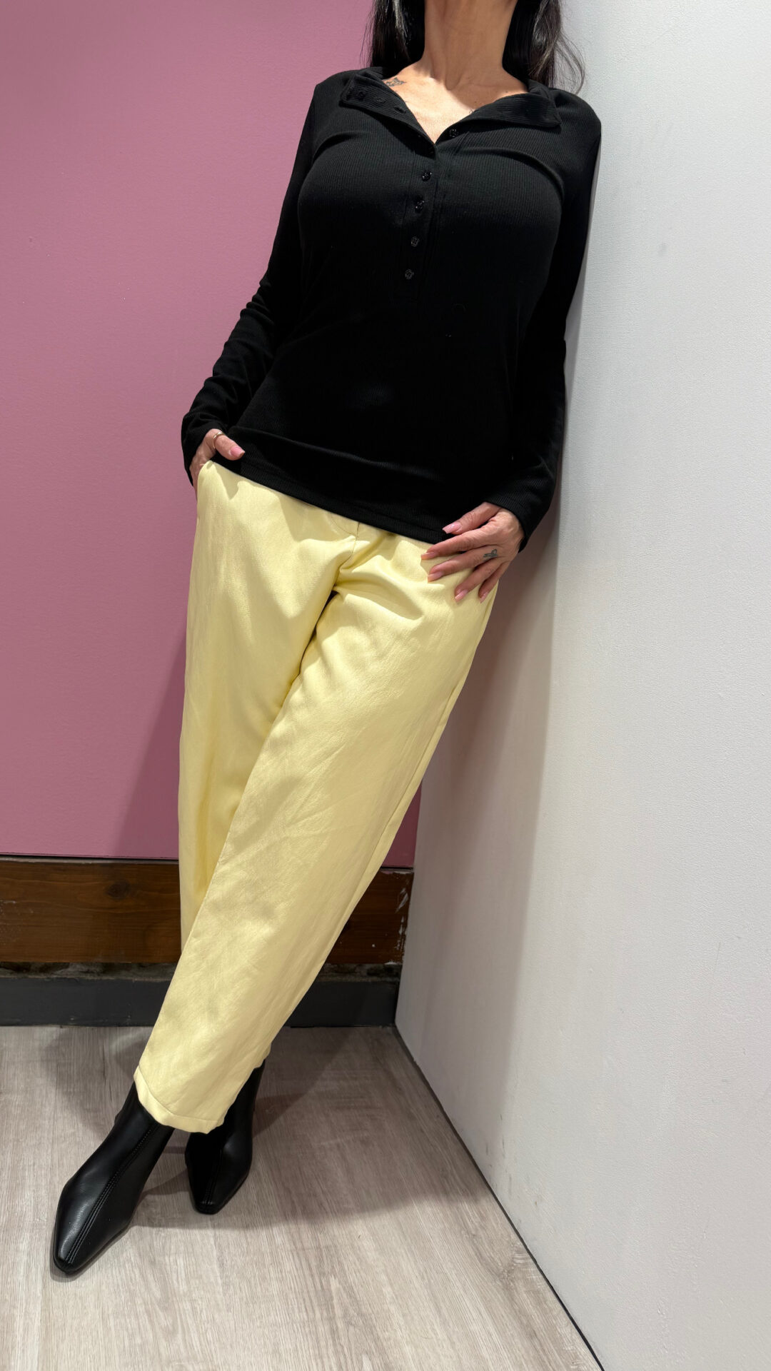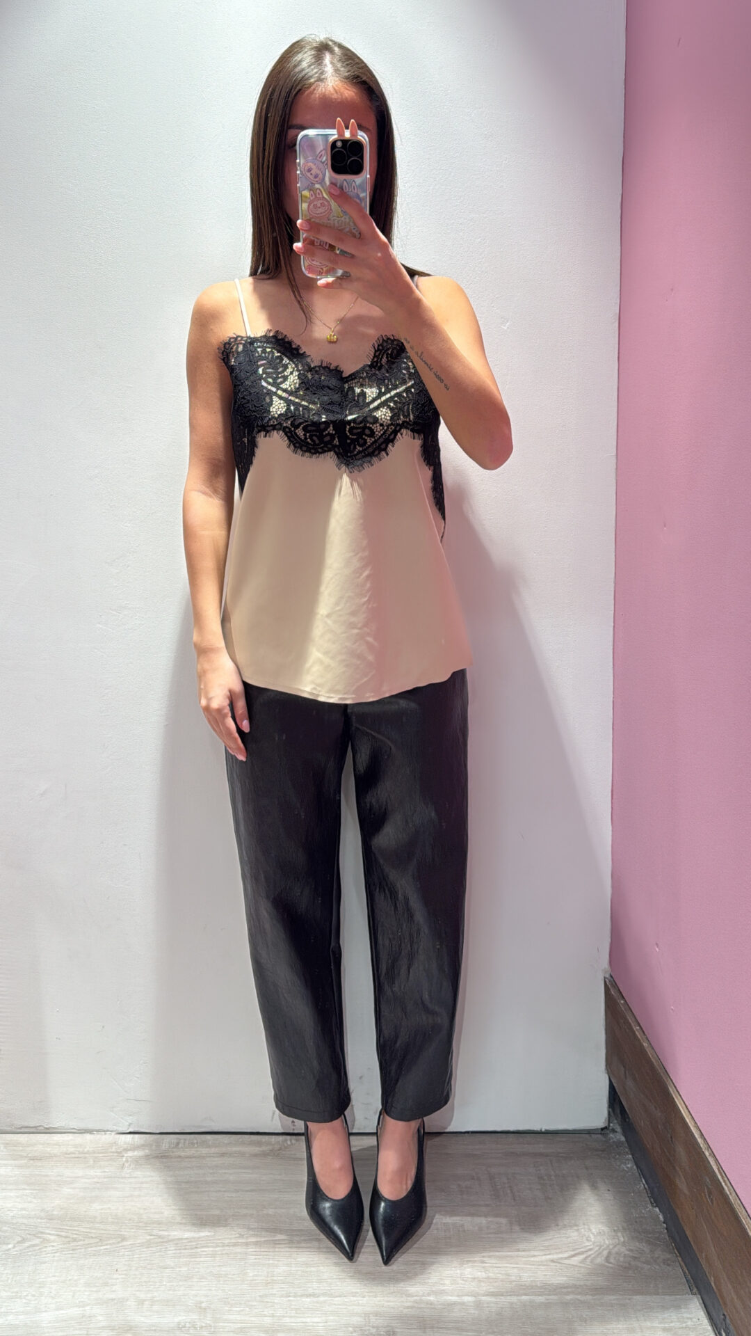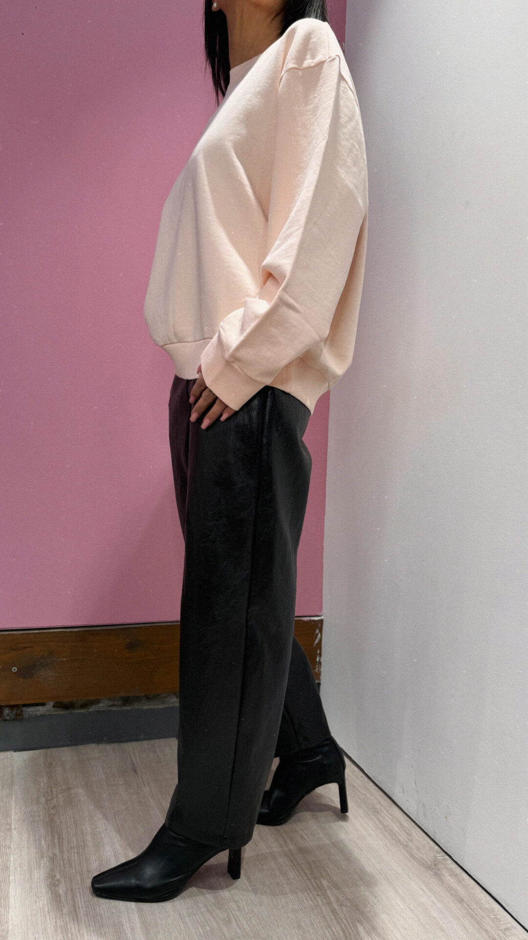 Pantalone VICOLO in ecopelle con effetto “graffiato” , carrot fit & elasticizzato sul retro