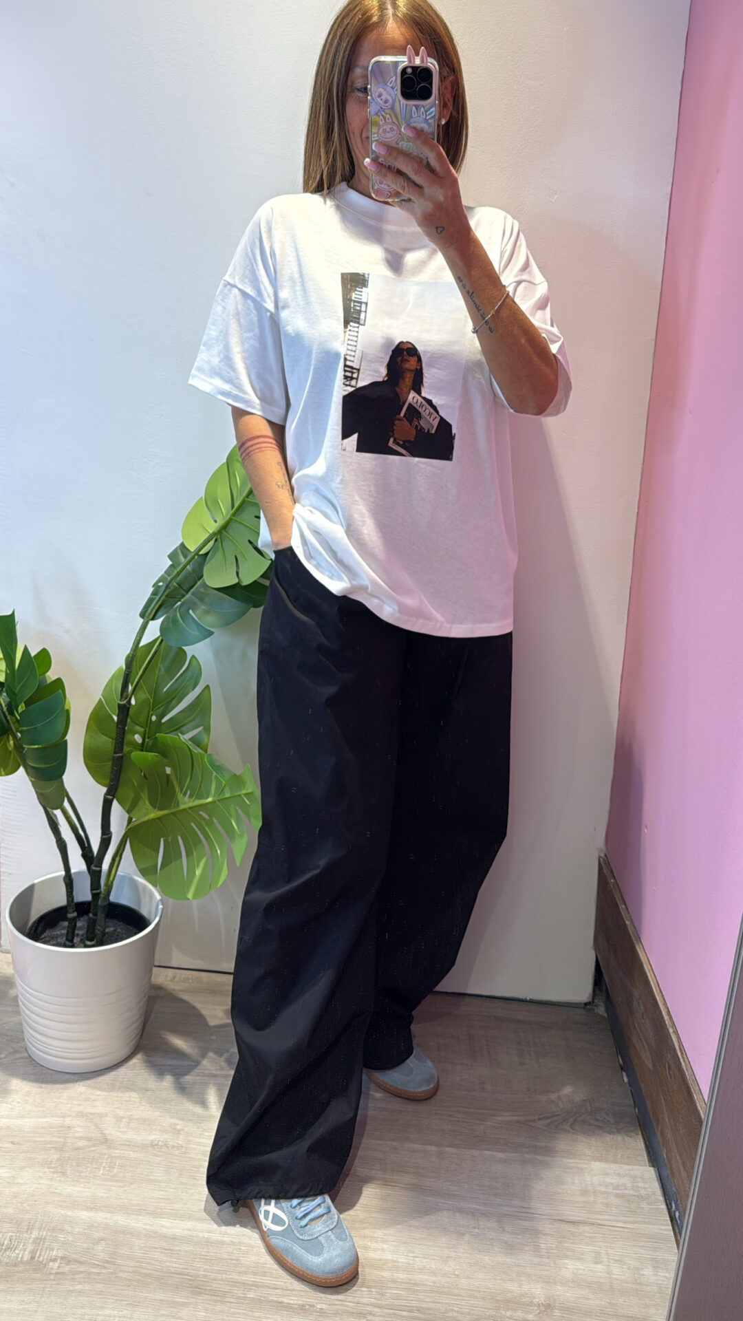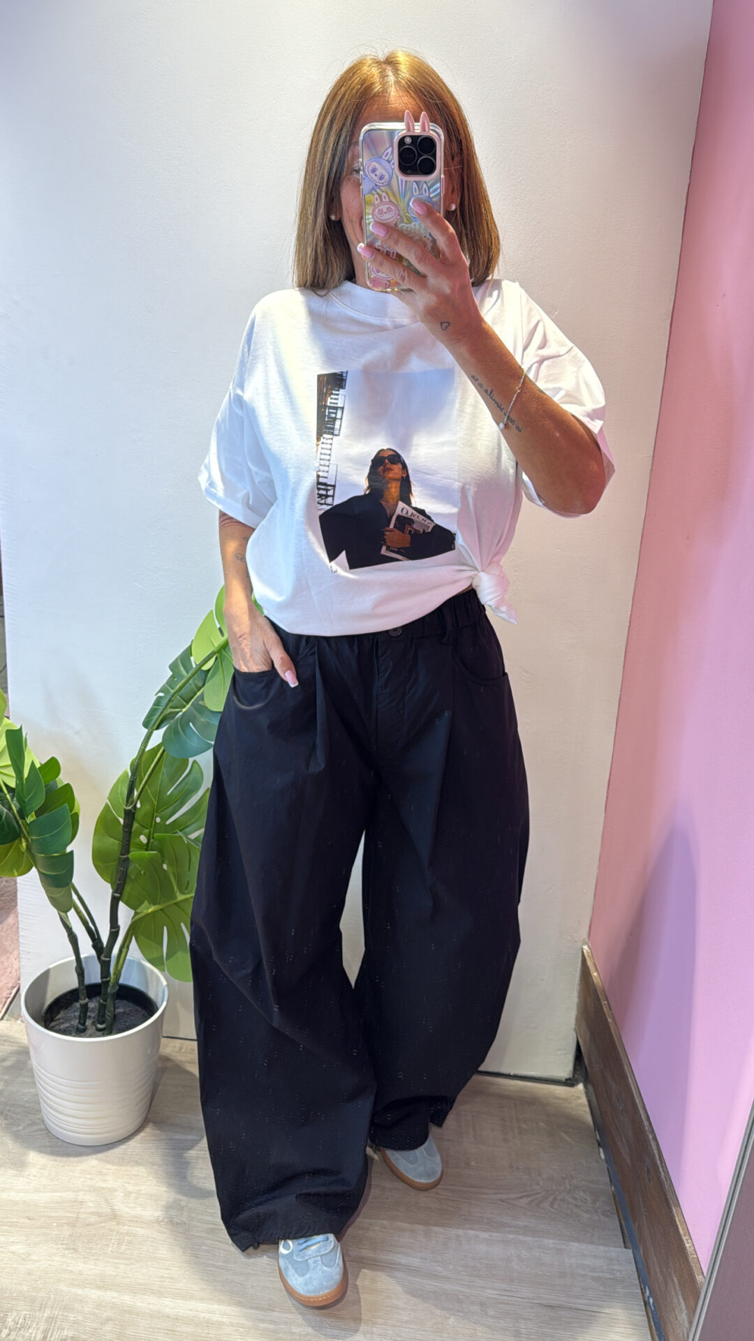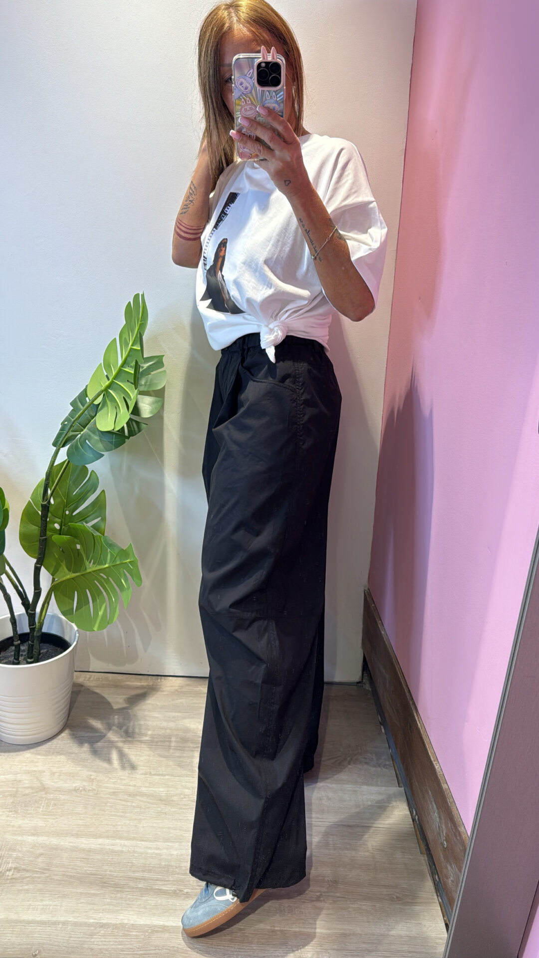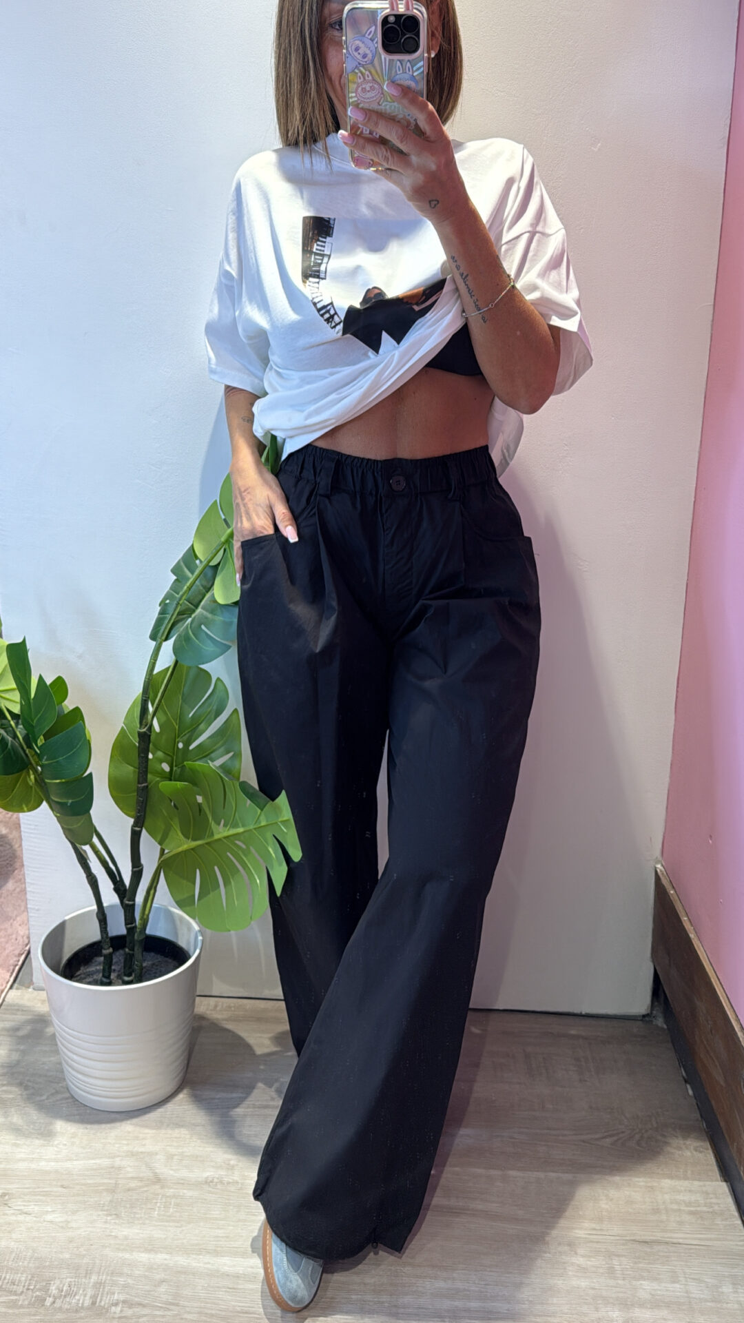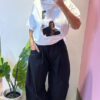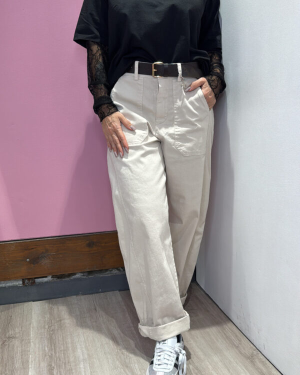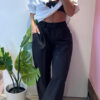 Pantalone VICOLO elasticizzato in vita con coulisse sul fondo, gamba larga