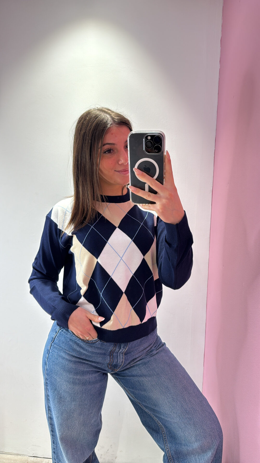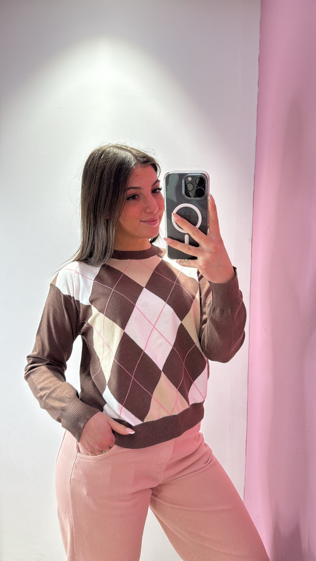 Pull MOTEL girocollo a LOSANGHE con profili a costine