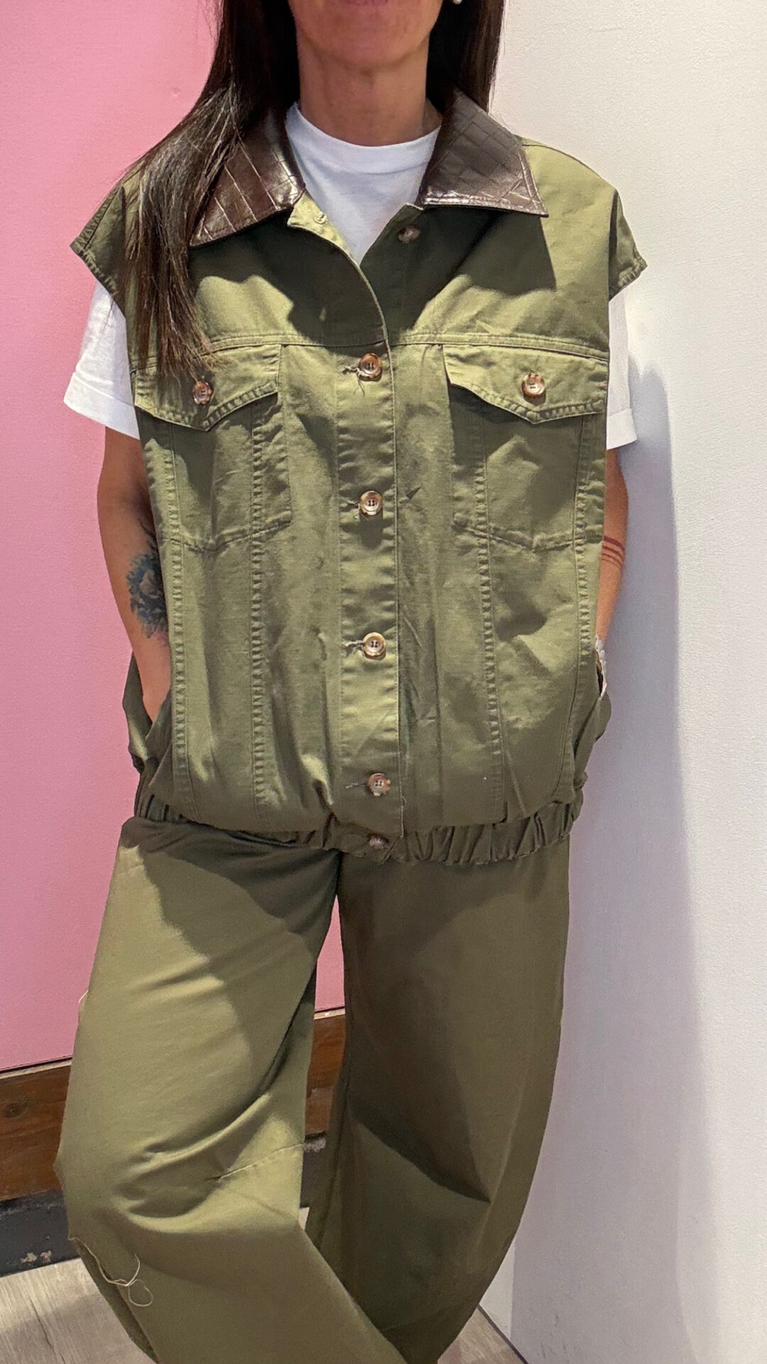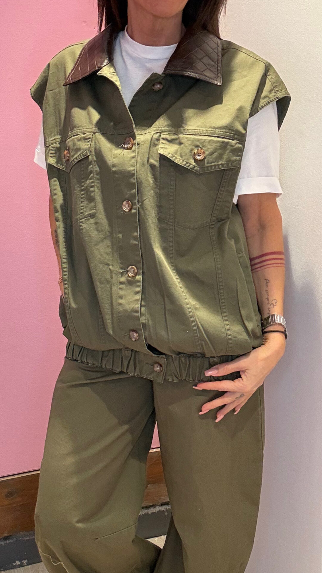 Smanicato MOTEL con collo a rever in ecopelle intrecciata