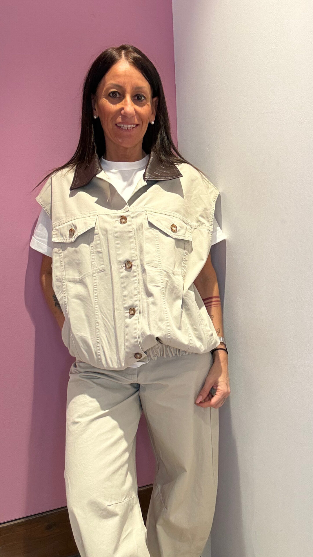 Smanicato MOTEL con collo a rever in ecopelle intrecciata