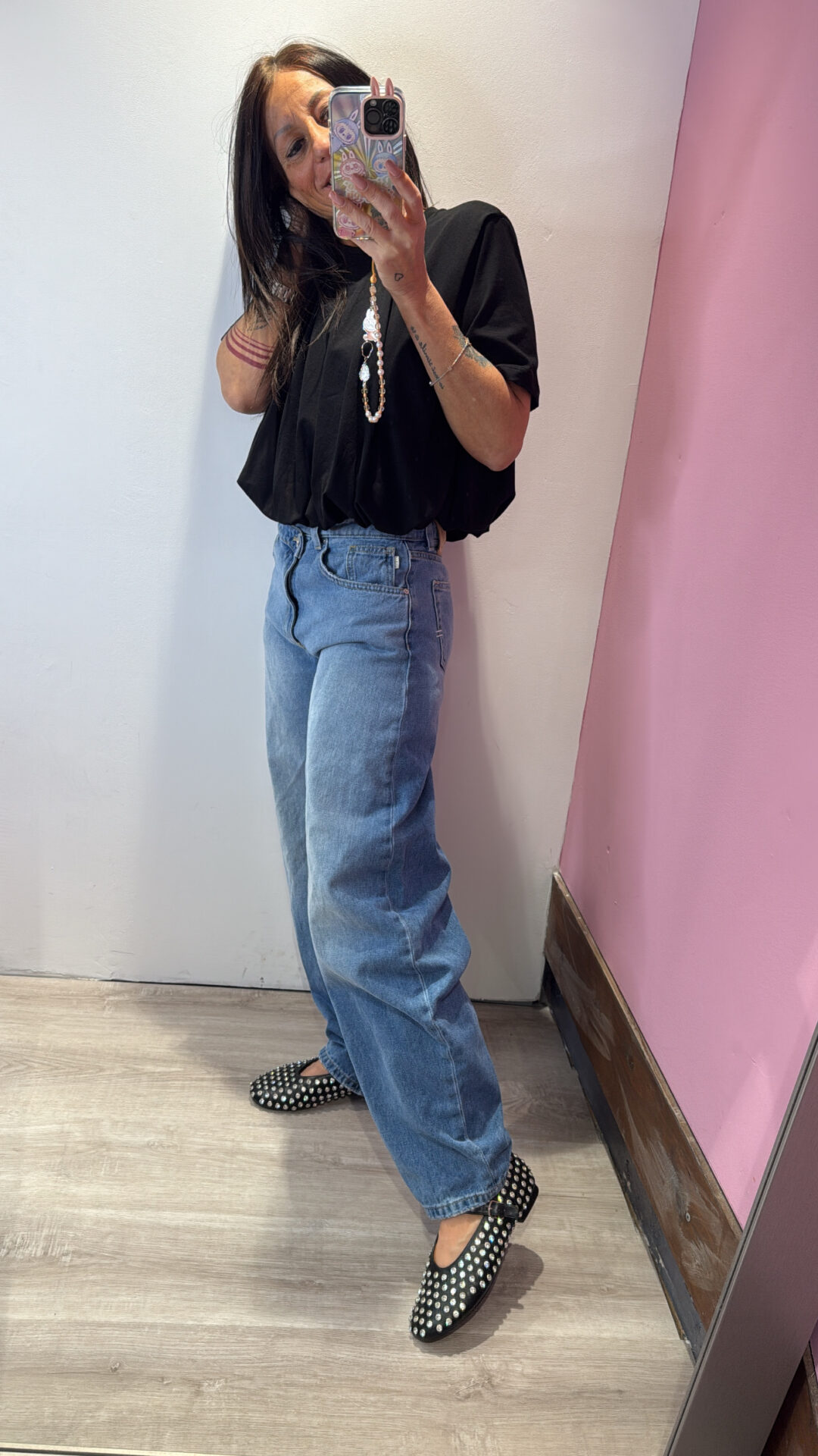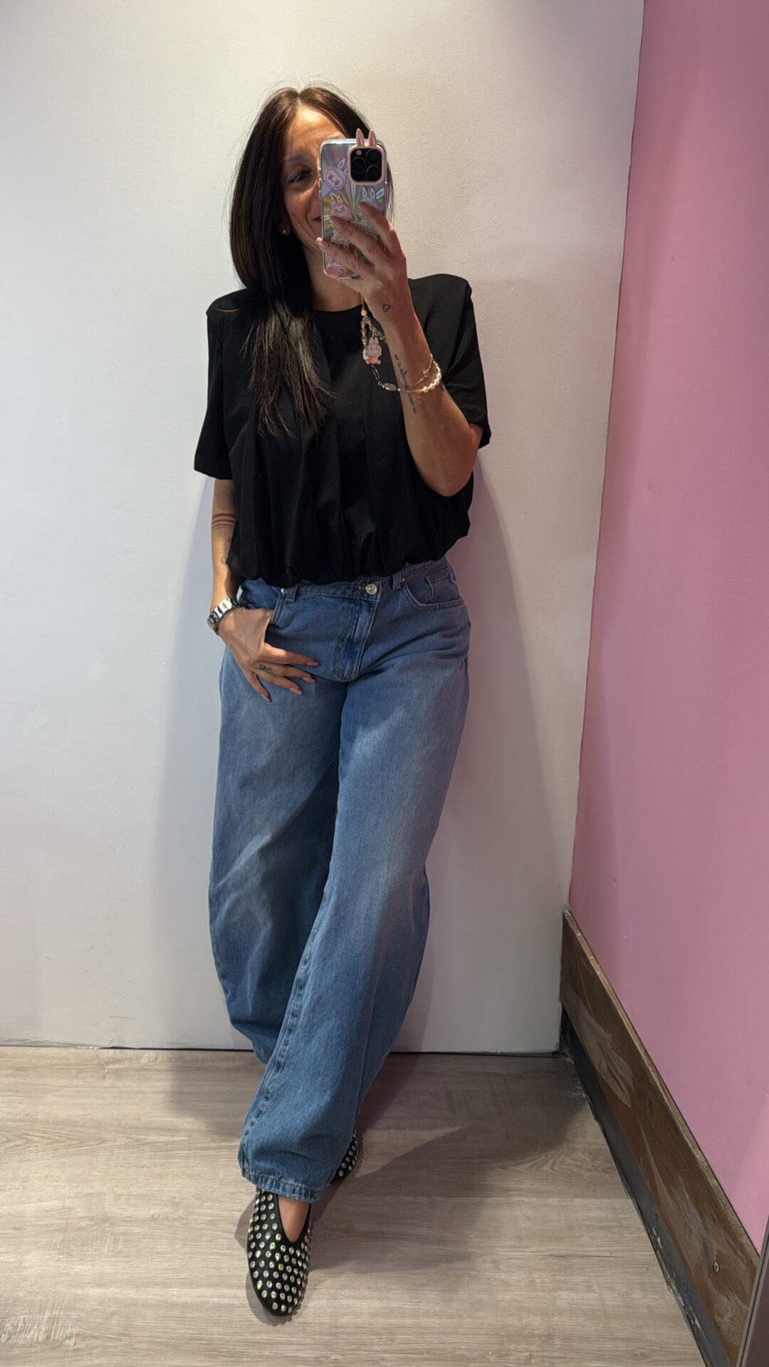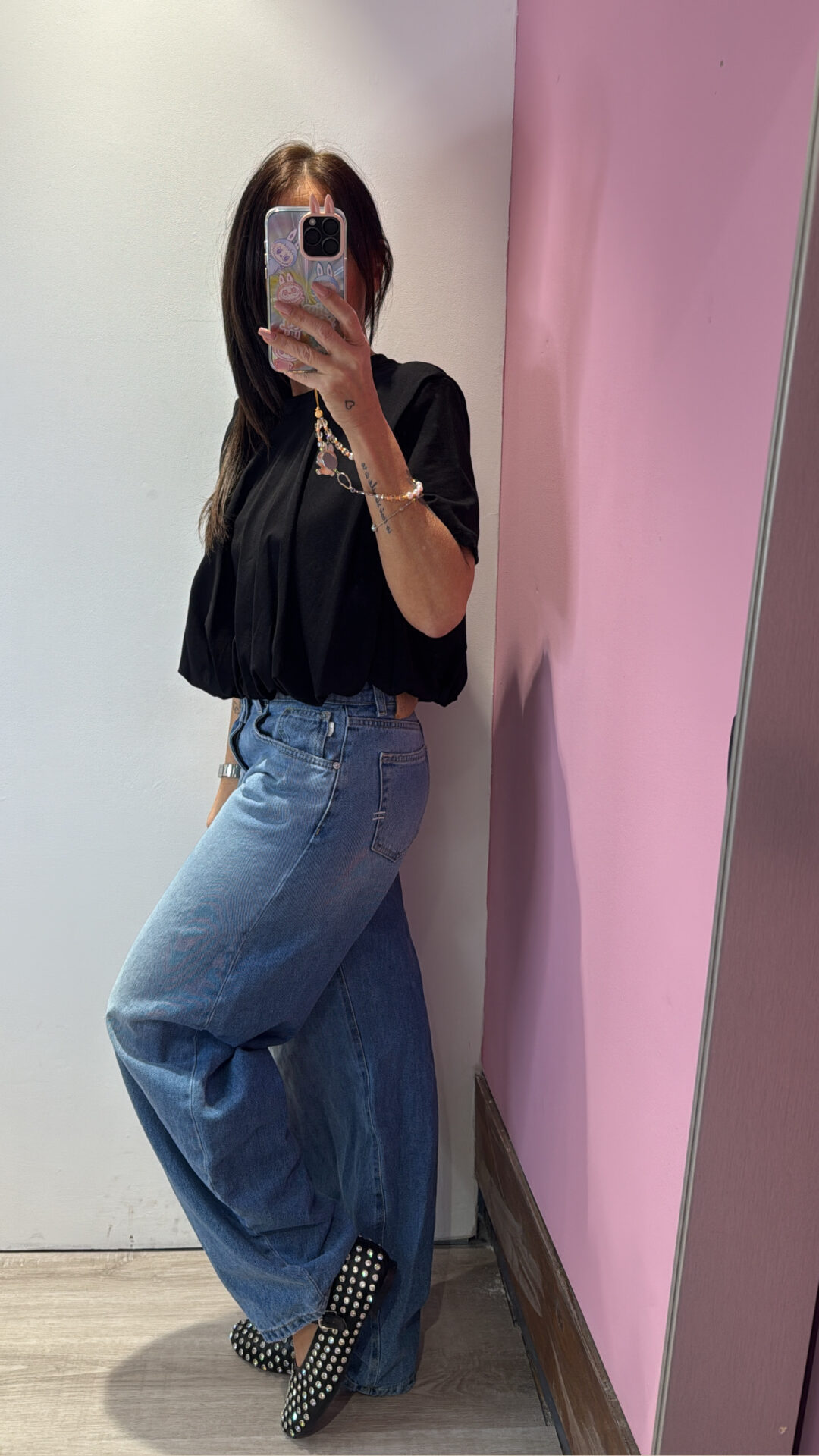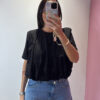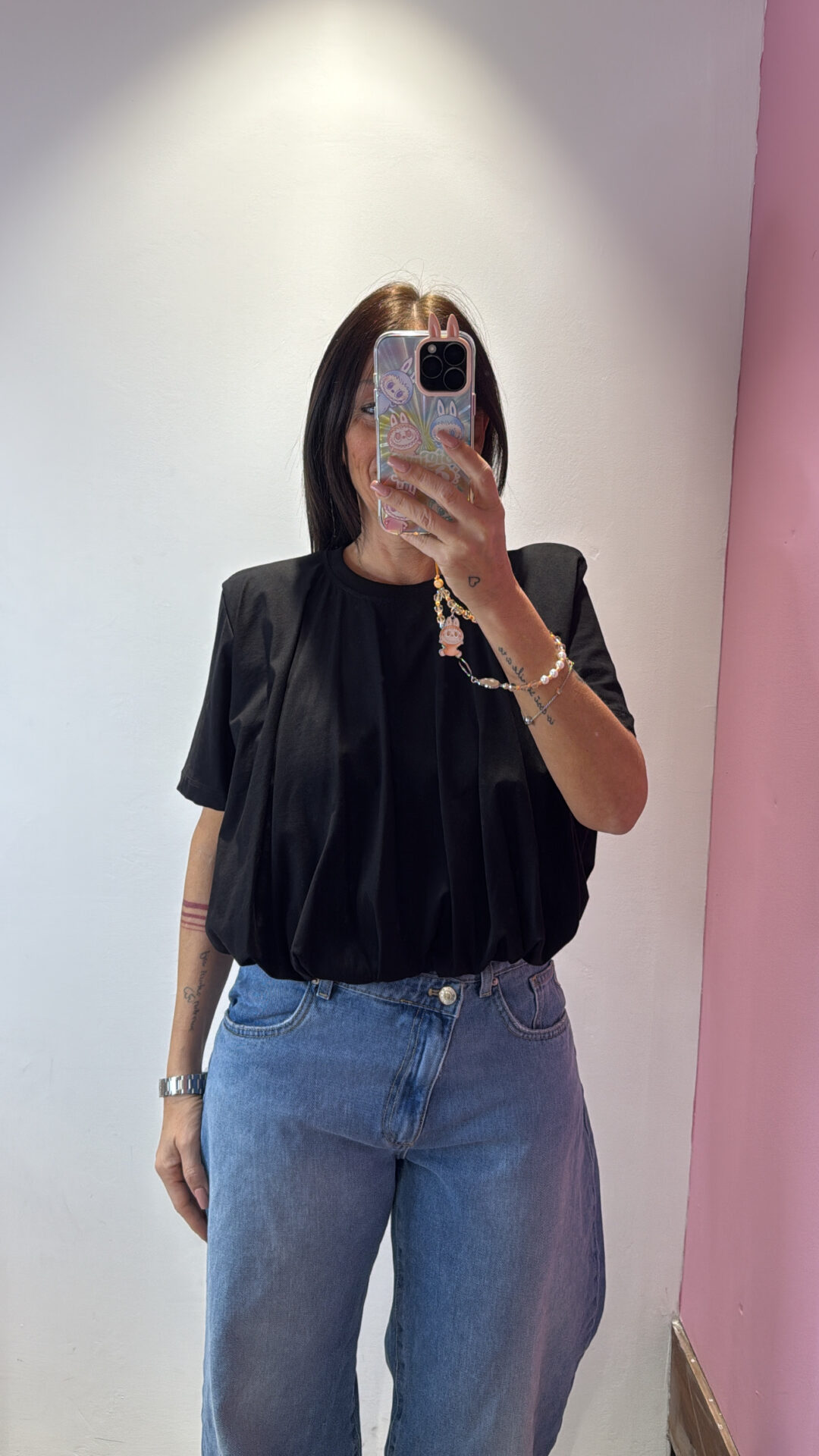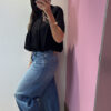 T-shirt Crop VICOLO girocollo con drappeggio in entrambi i lati, elasticizzata sul fondo