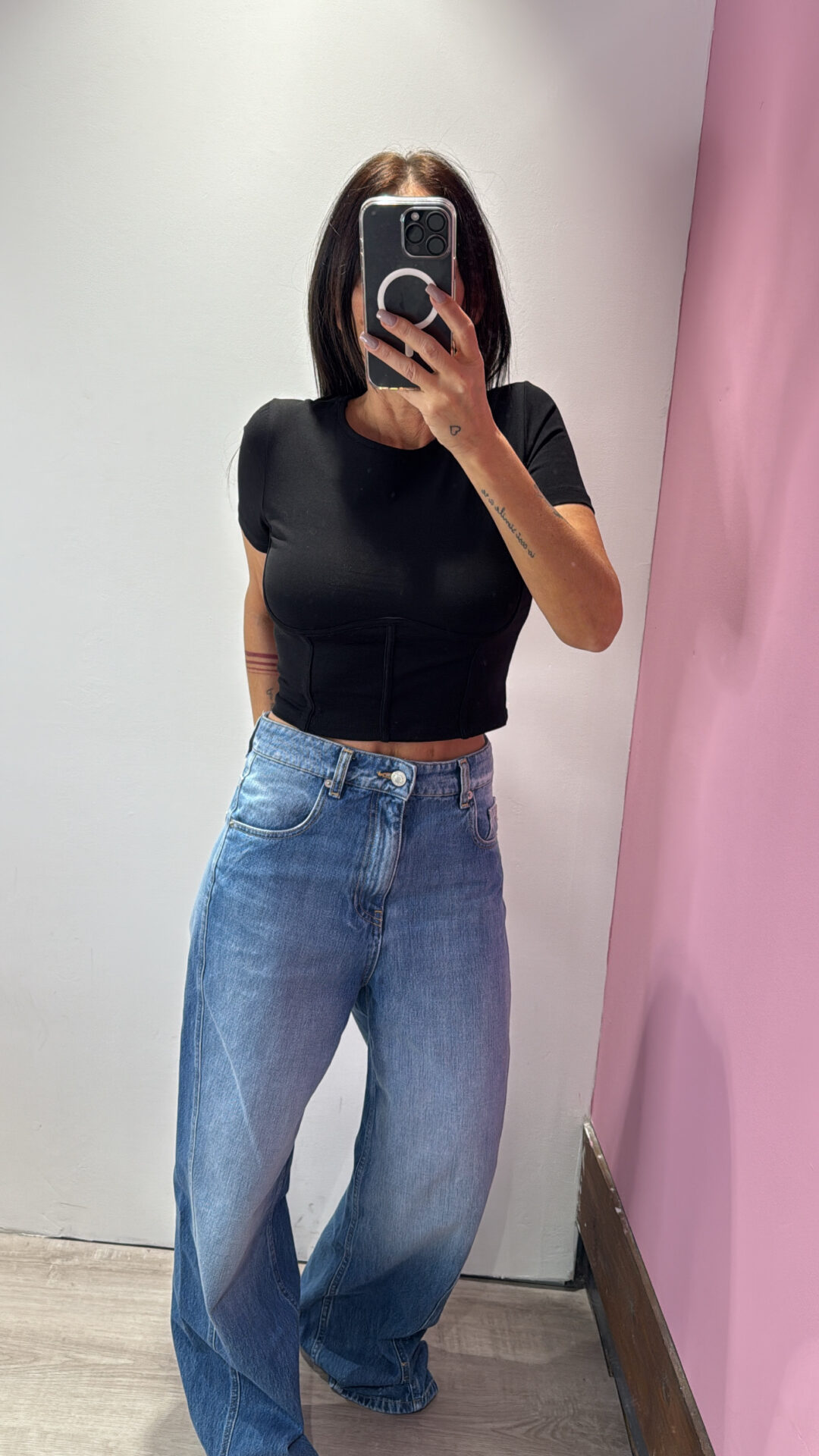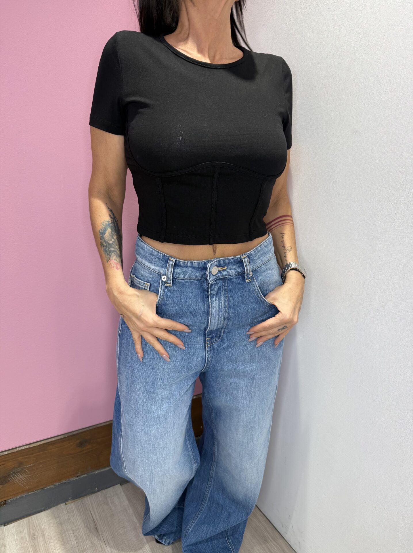 T-shirt Crop VICOLO girocollo effetto corsetto