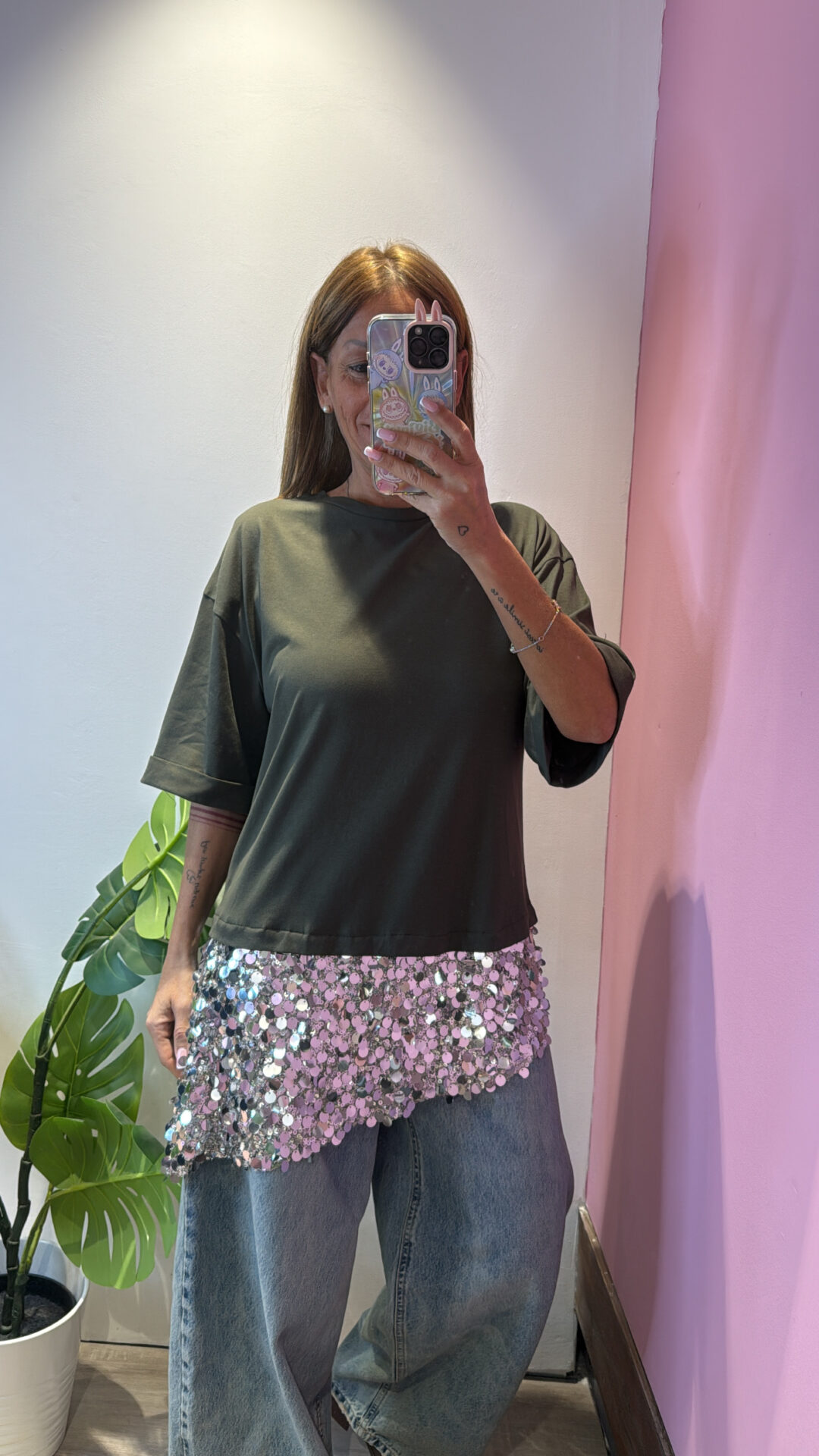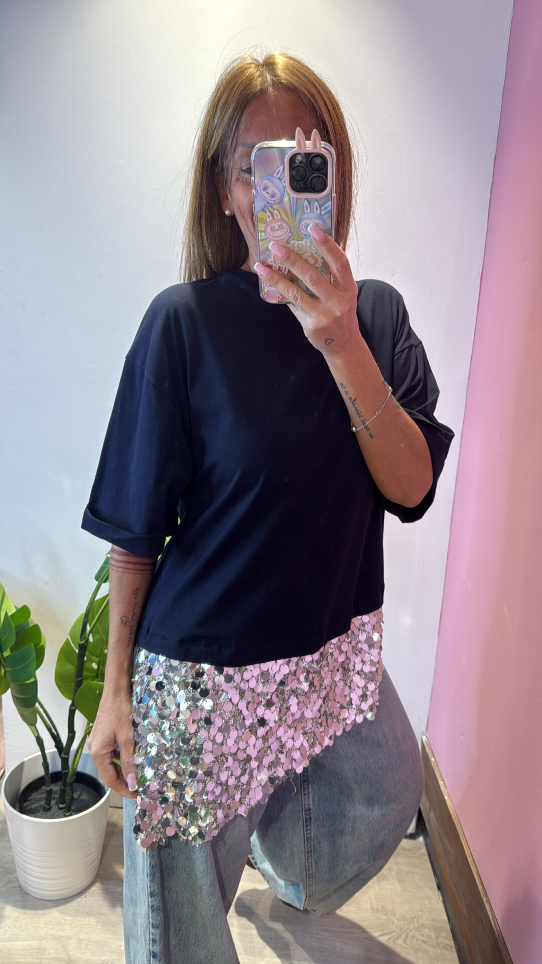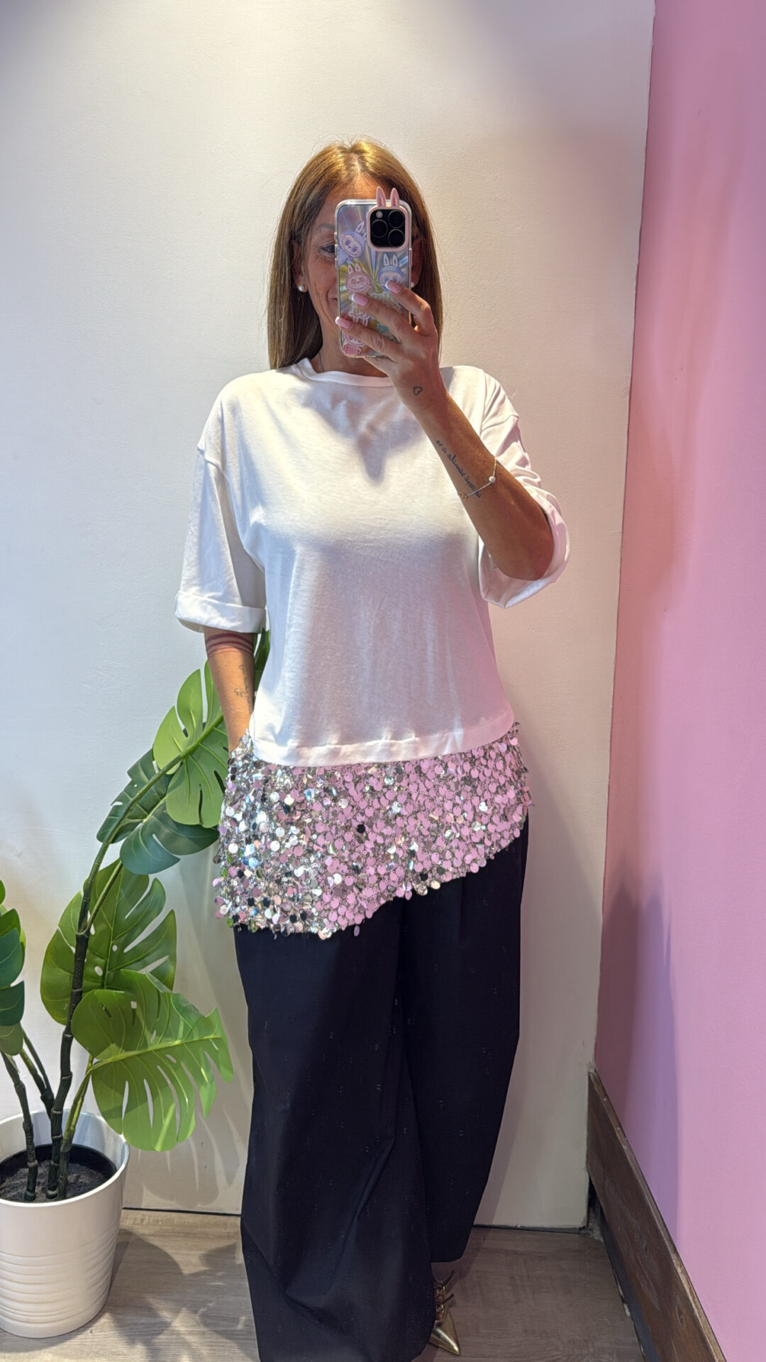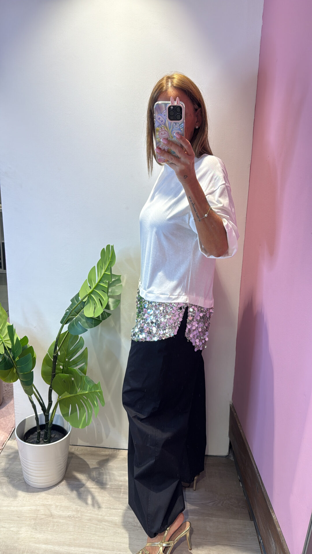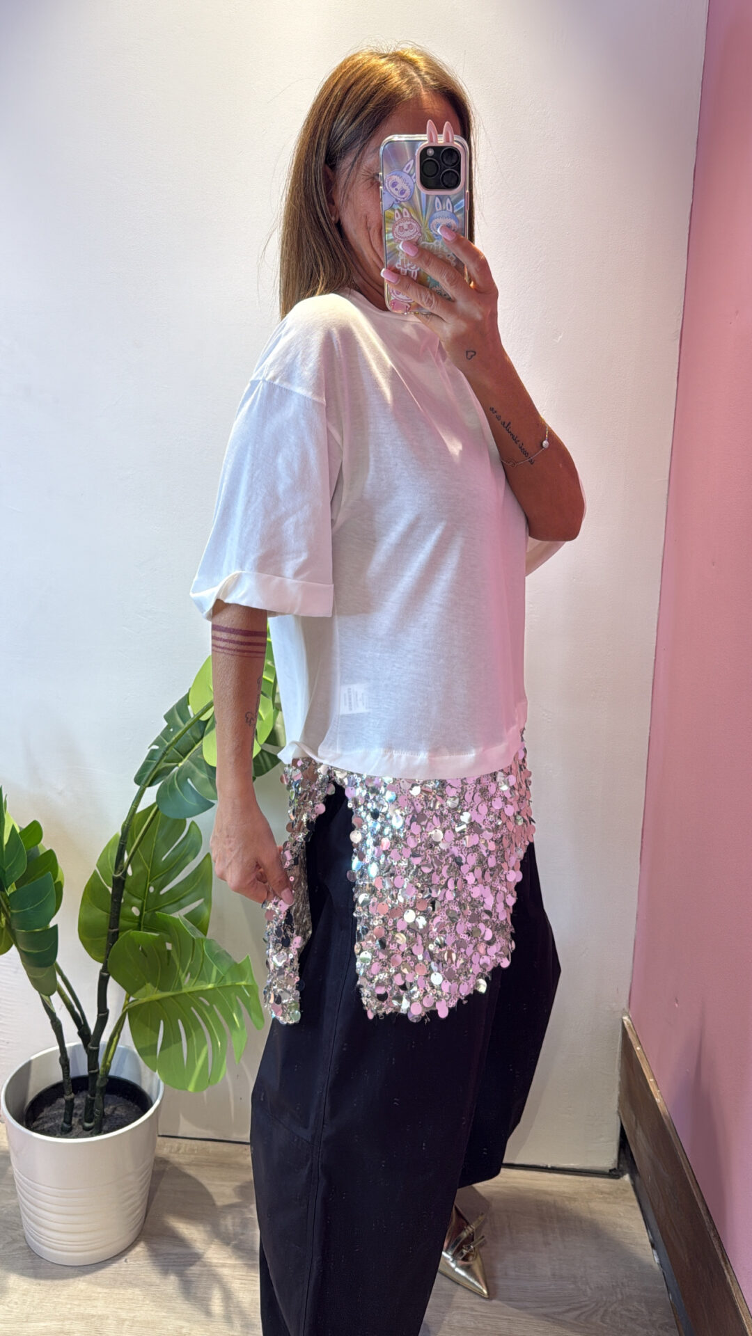 T-shirt MOTEL girocollo asimmetrica con pailettes , spacchi laterali