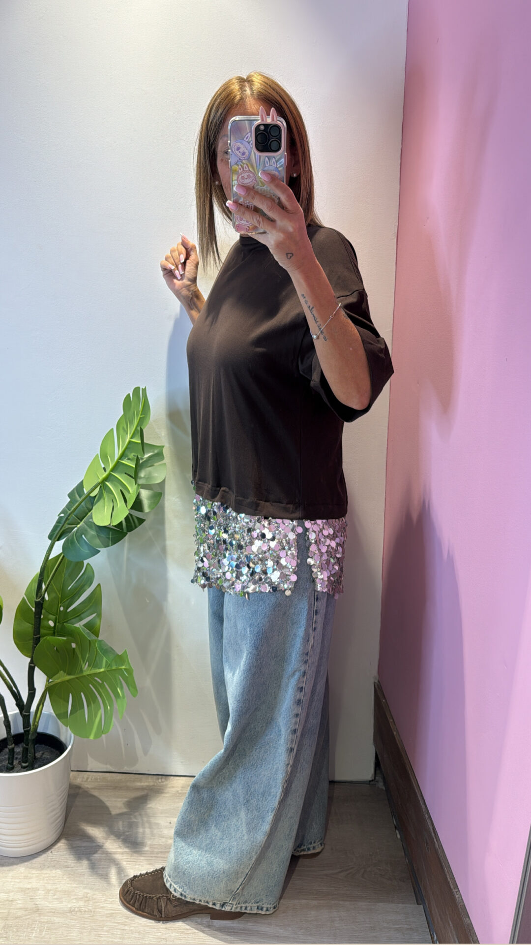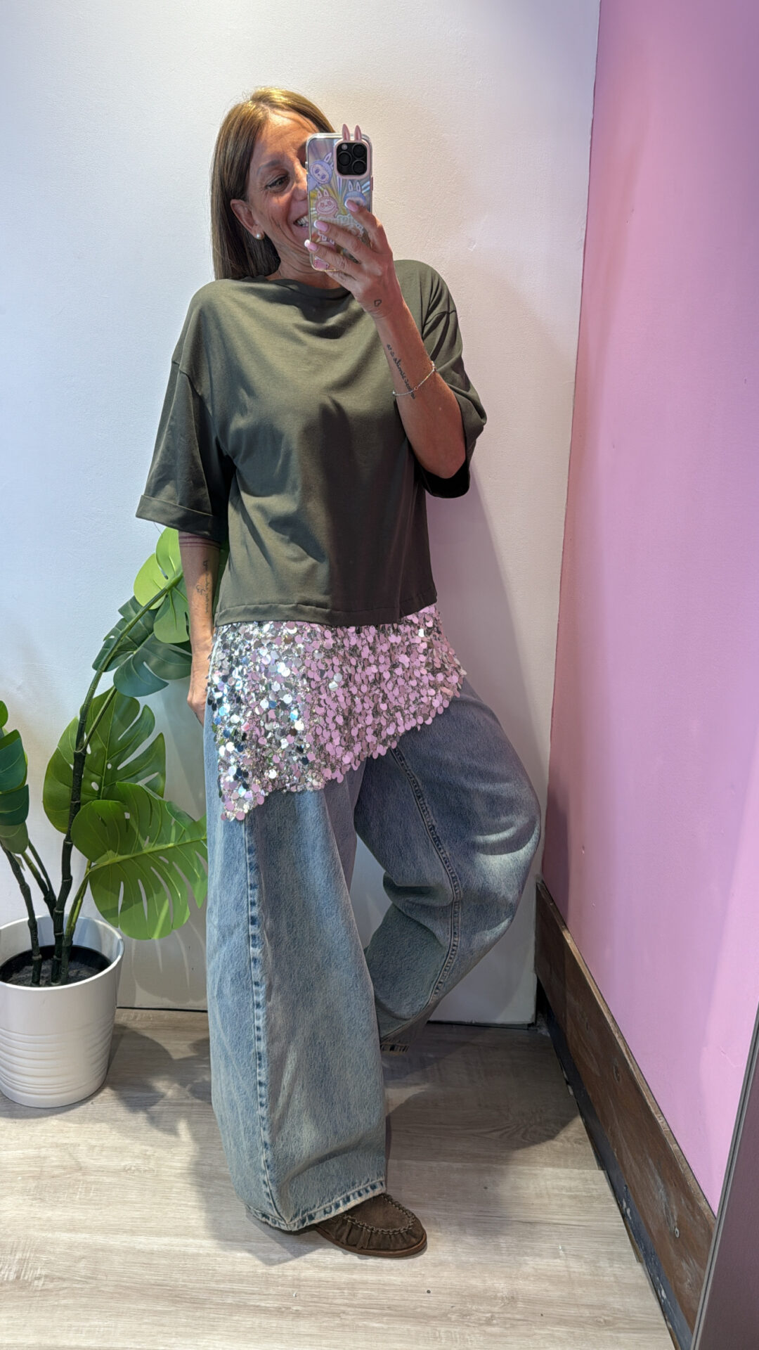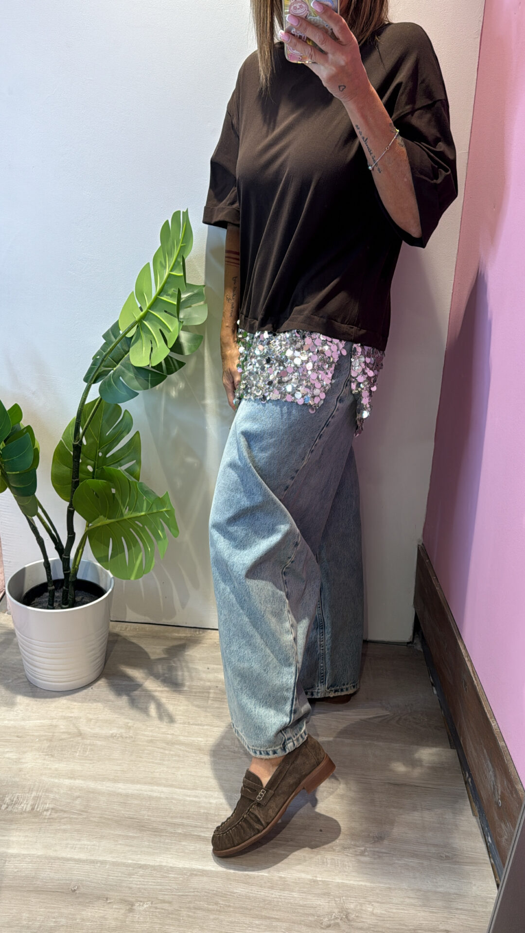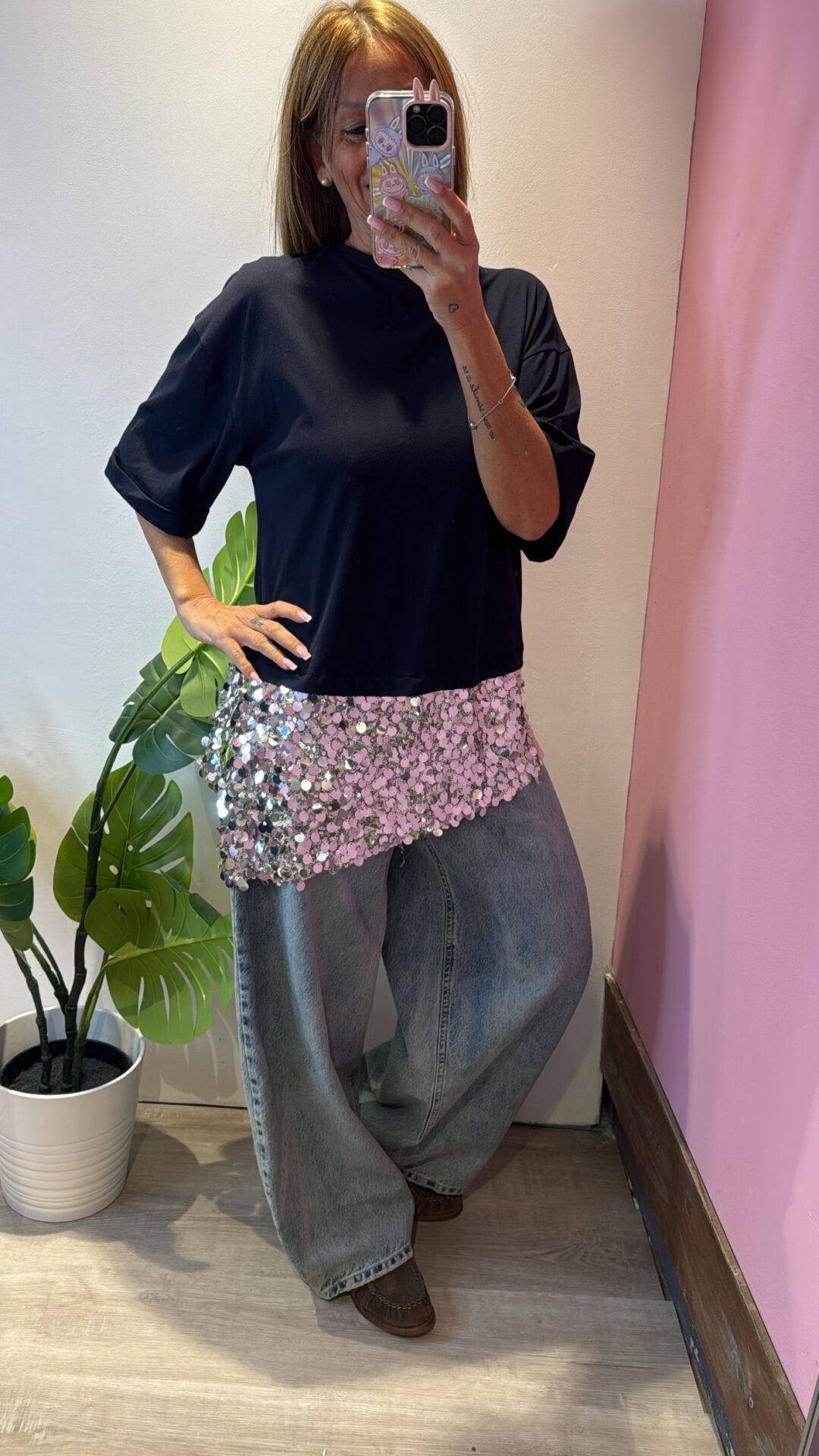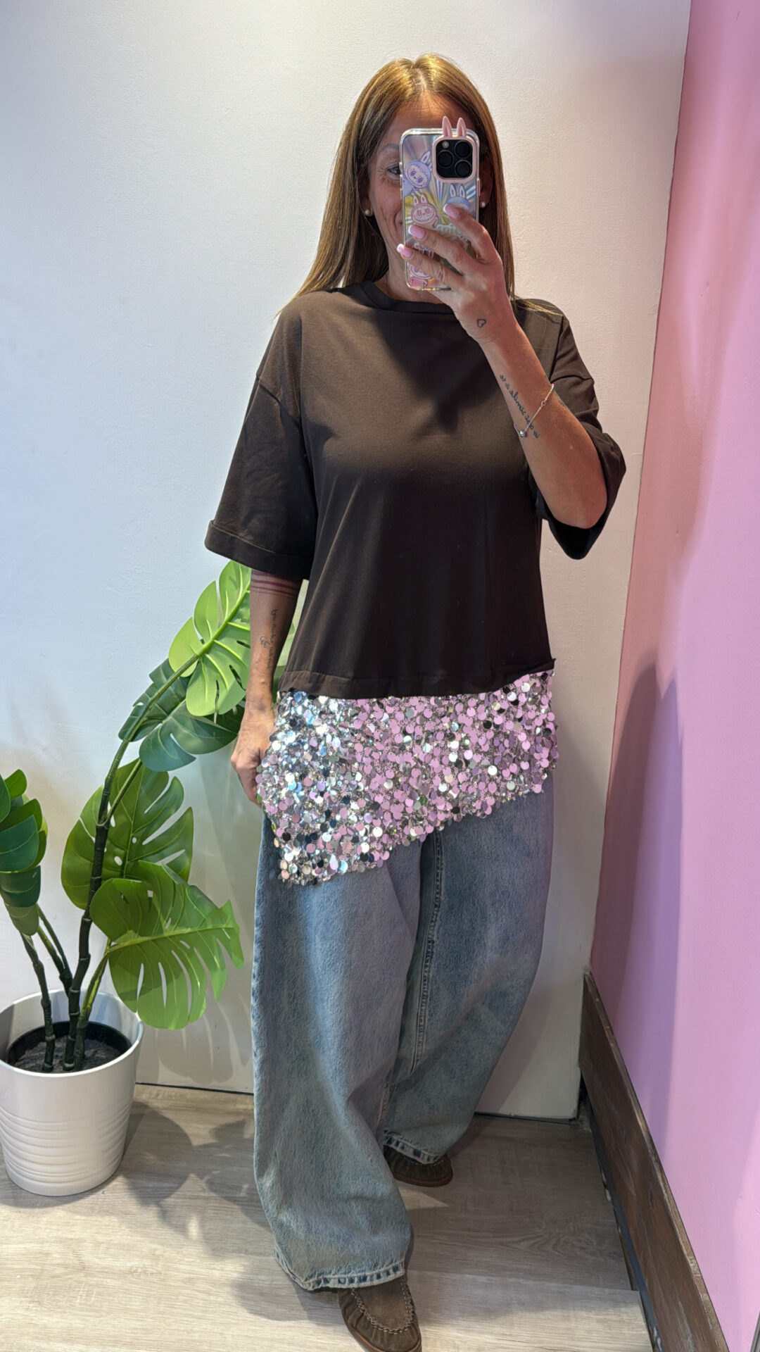 T-shirt MOTEL girocollo asimmetrica con pailettes , spacchi laterali