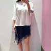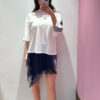 T-shirt MOTEL girocollo asimmetrica con raso & pizzo a contrasto, con bande laterali